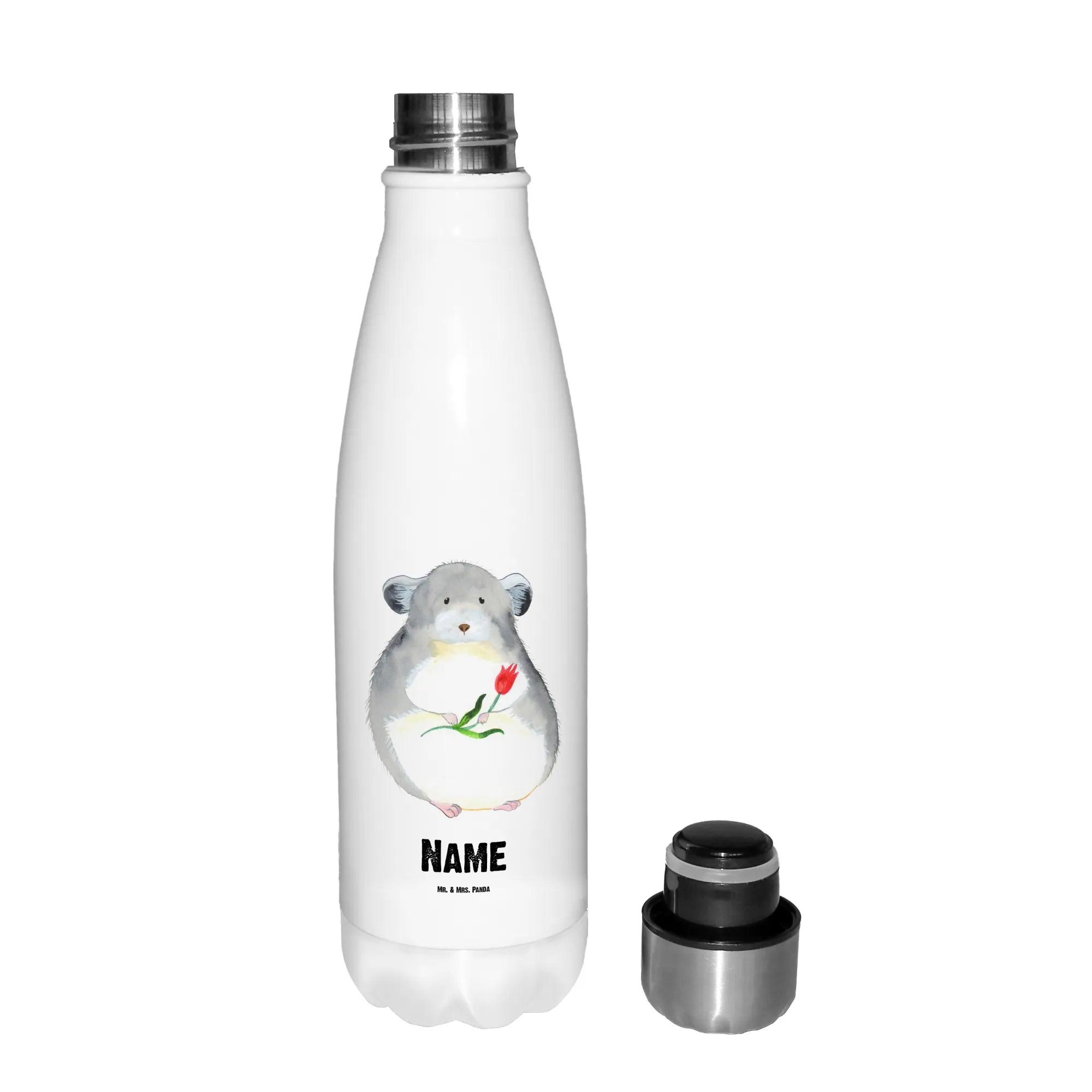 Personalised insulated bottle chinchilla flower