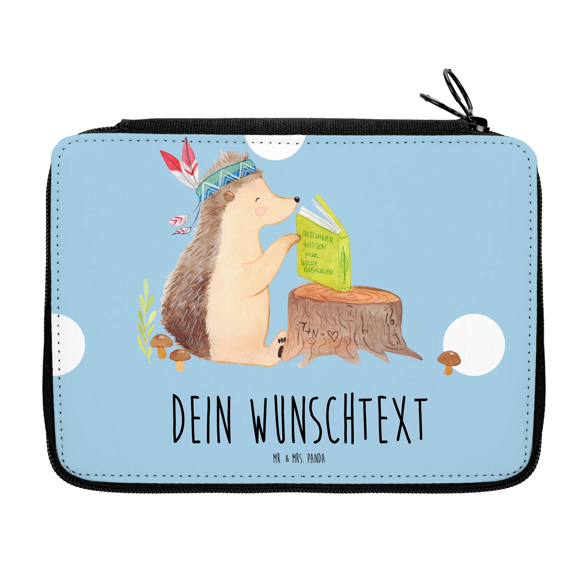 Personalised leather folder Hedgehog feather headdress - Blue Pastel