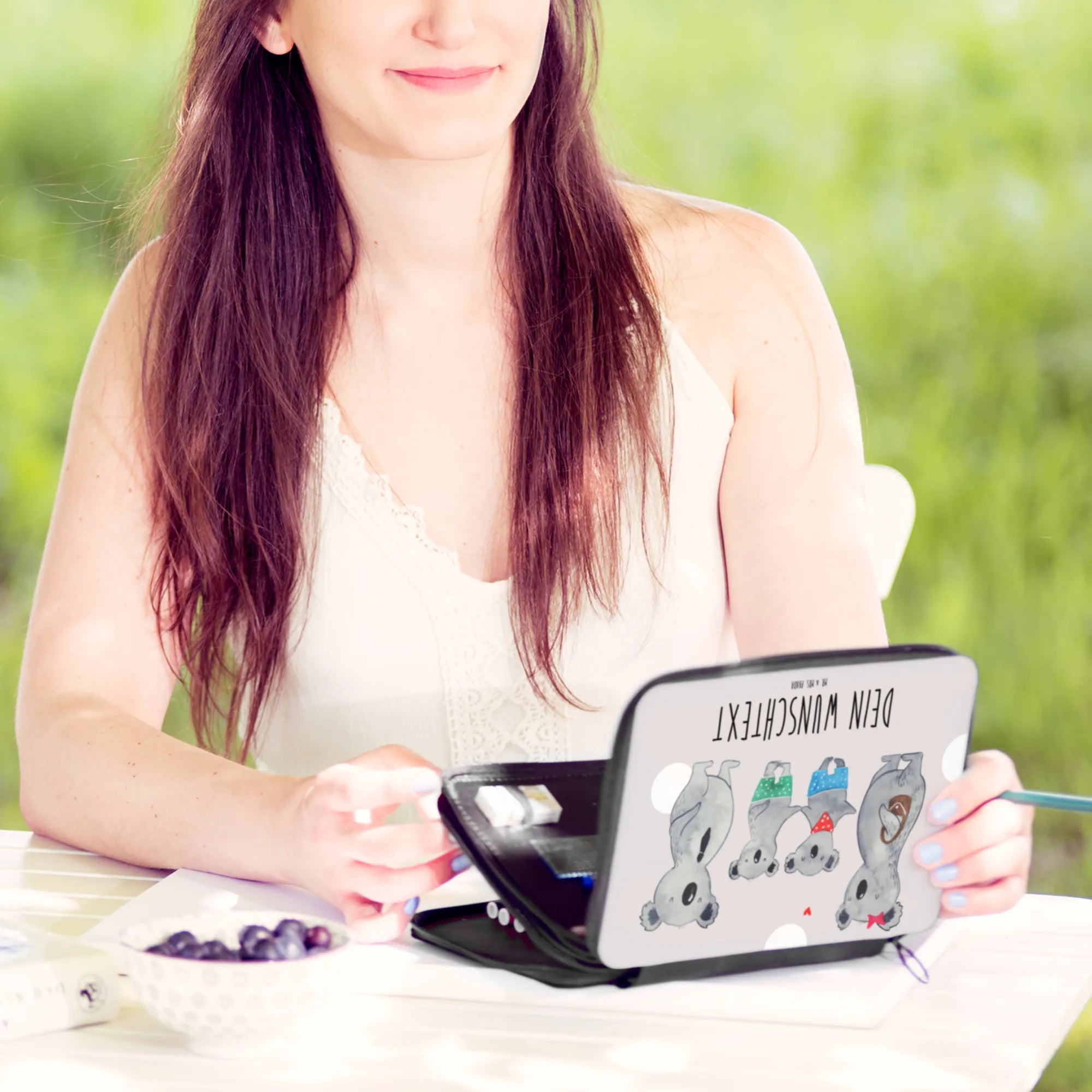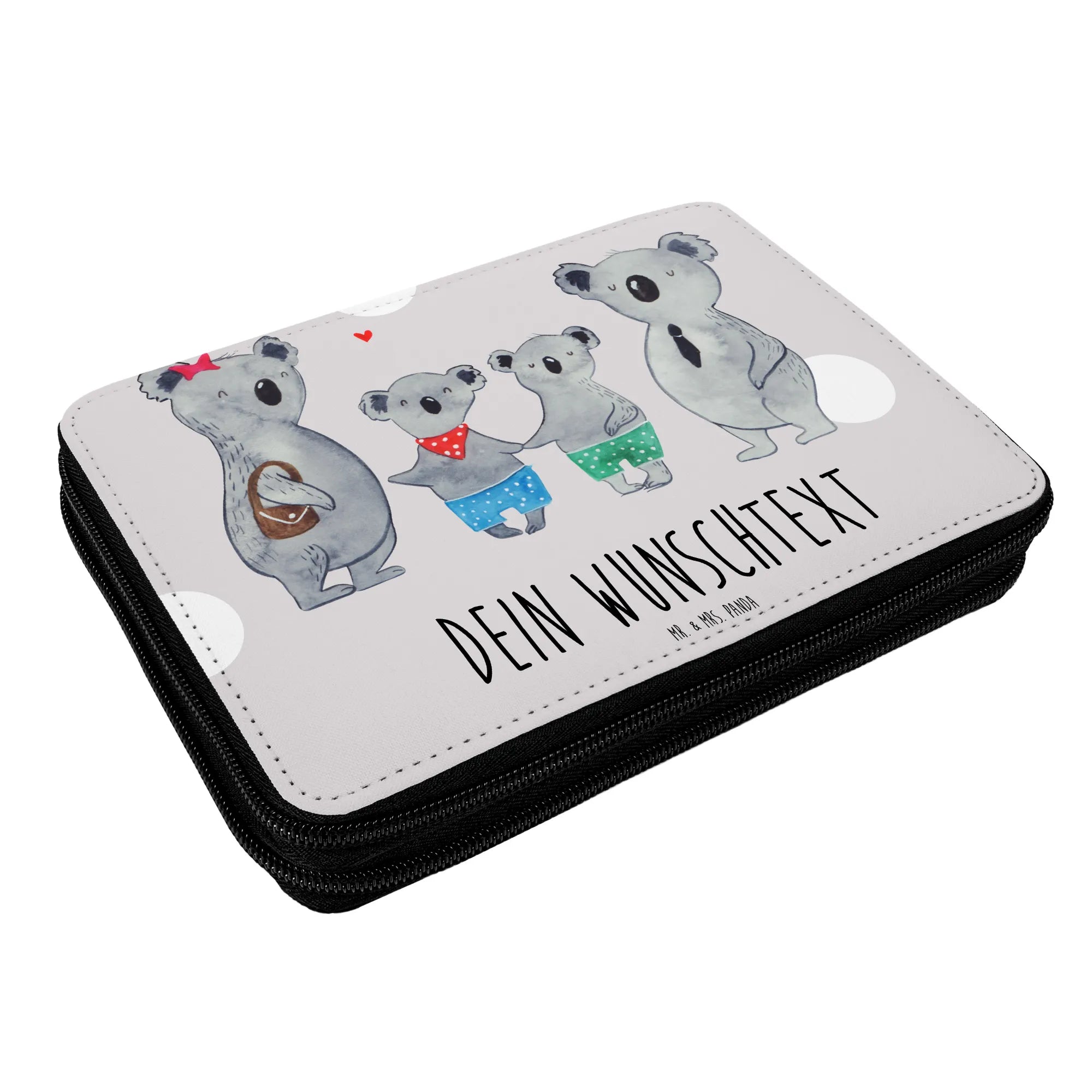 Personalised leather folder Koala family with two kids - Pastel Blue