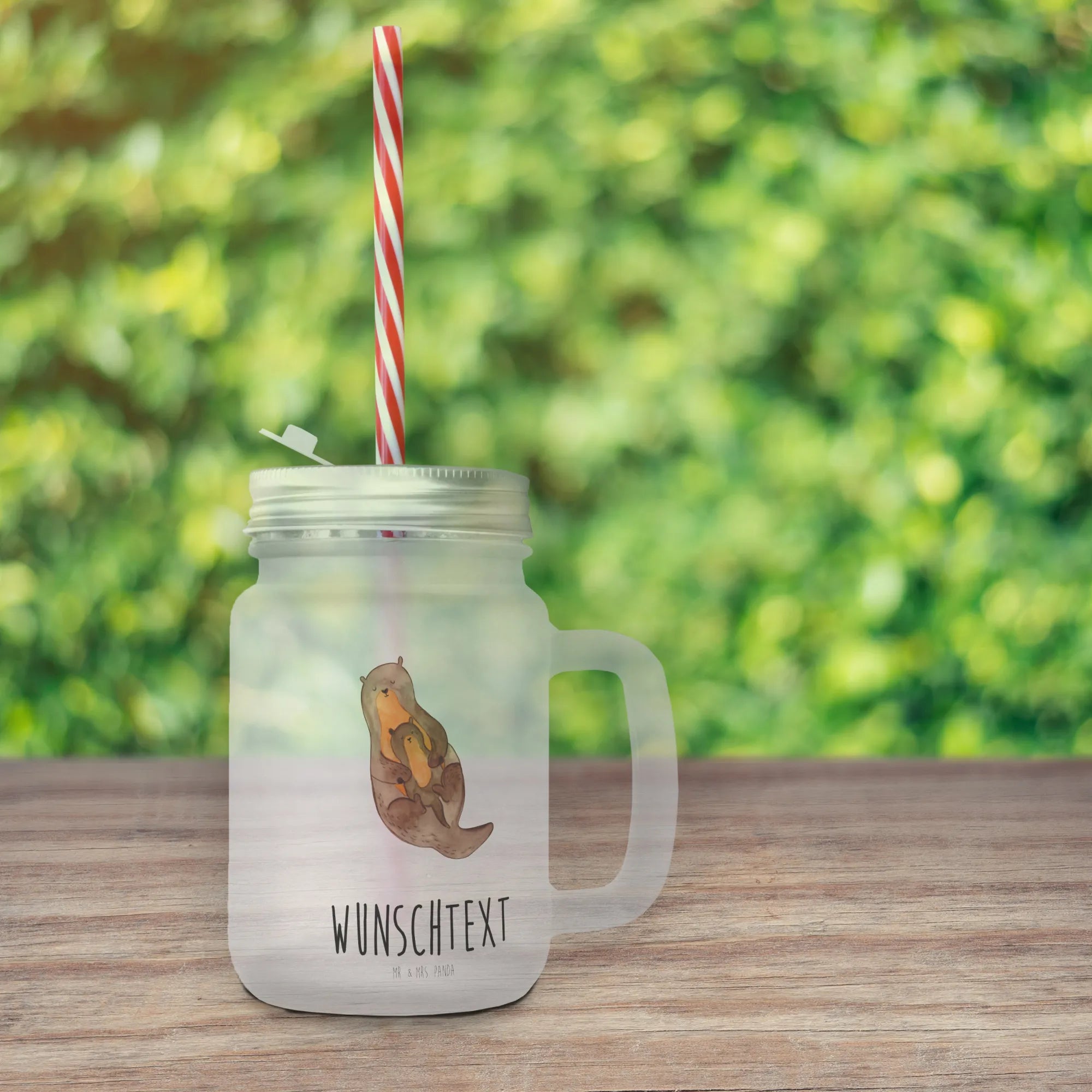 Personalised mason jar drinking glass otter child – Mr. & Mrs. Panda