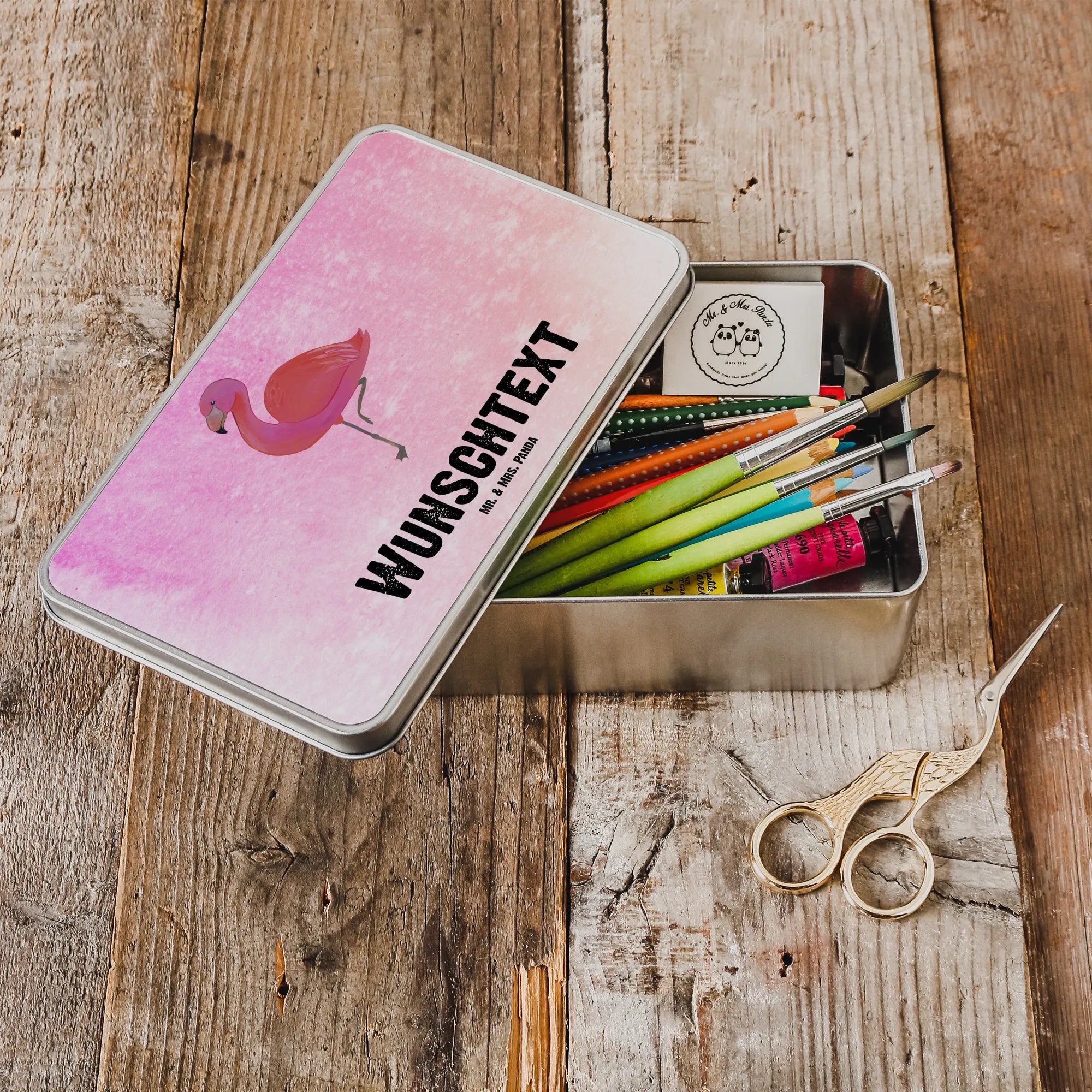 Personalised metal tin flamingo Classic – Mr. & Mrs. Panda