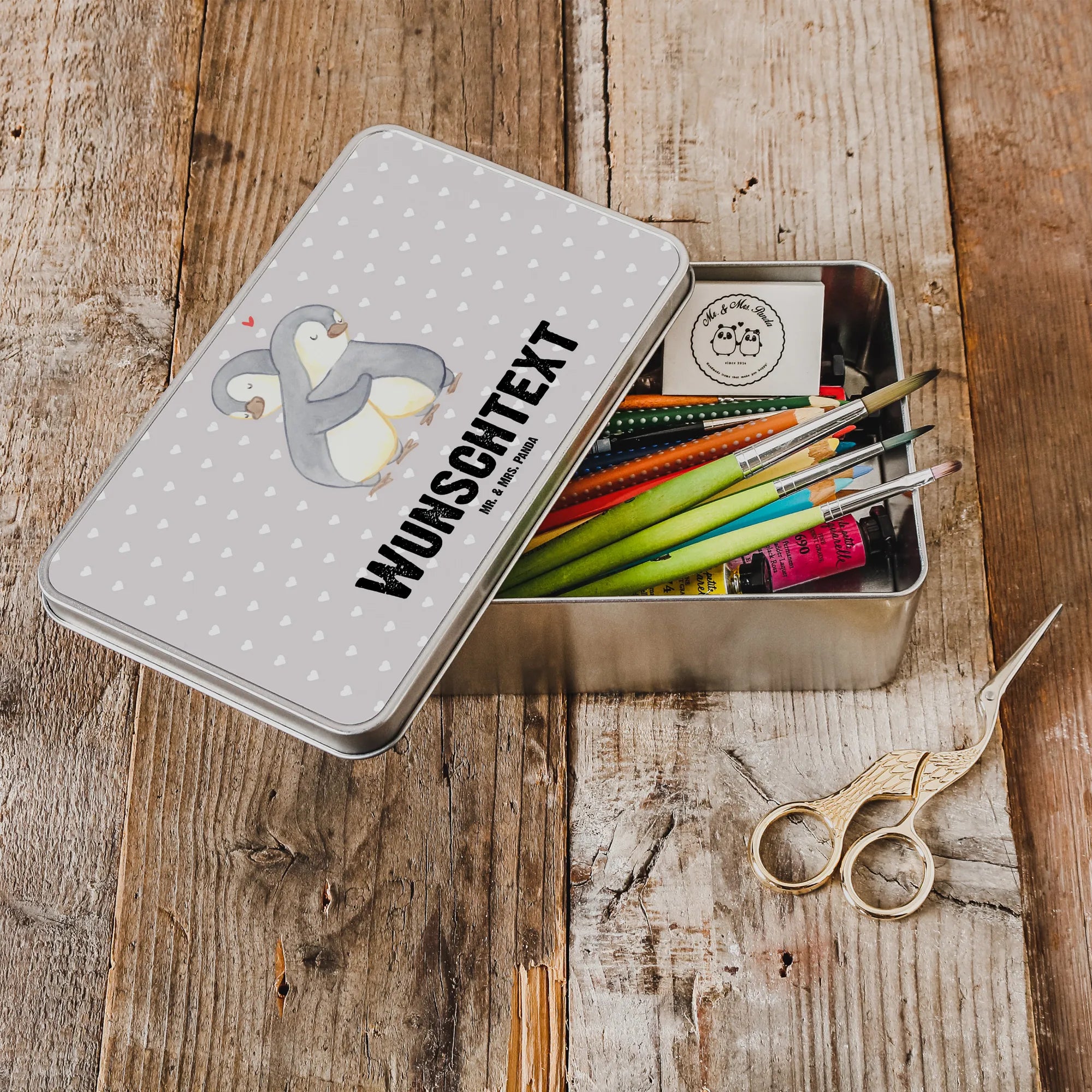 Personalised metal tin penguins Cuddle