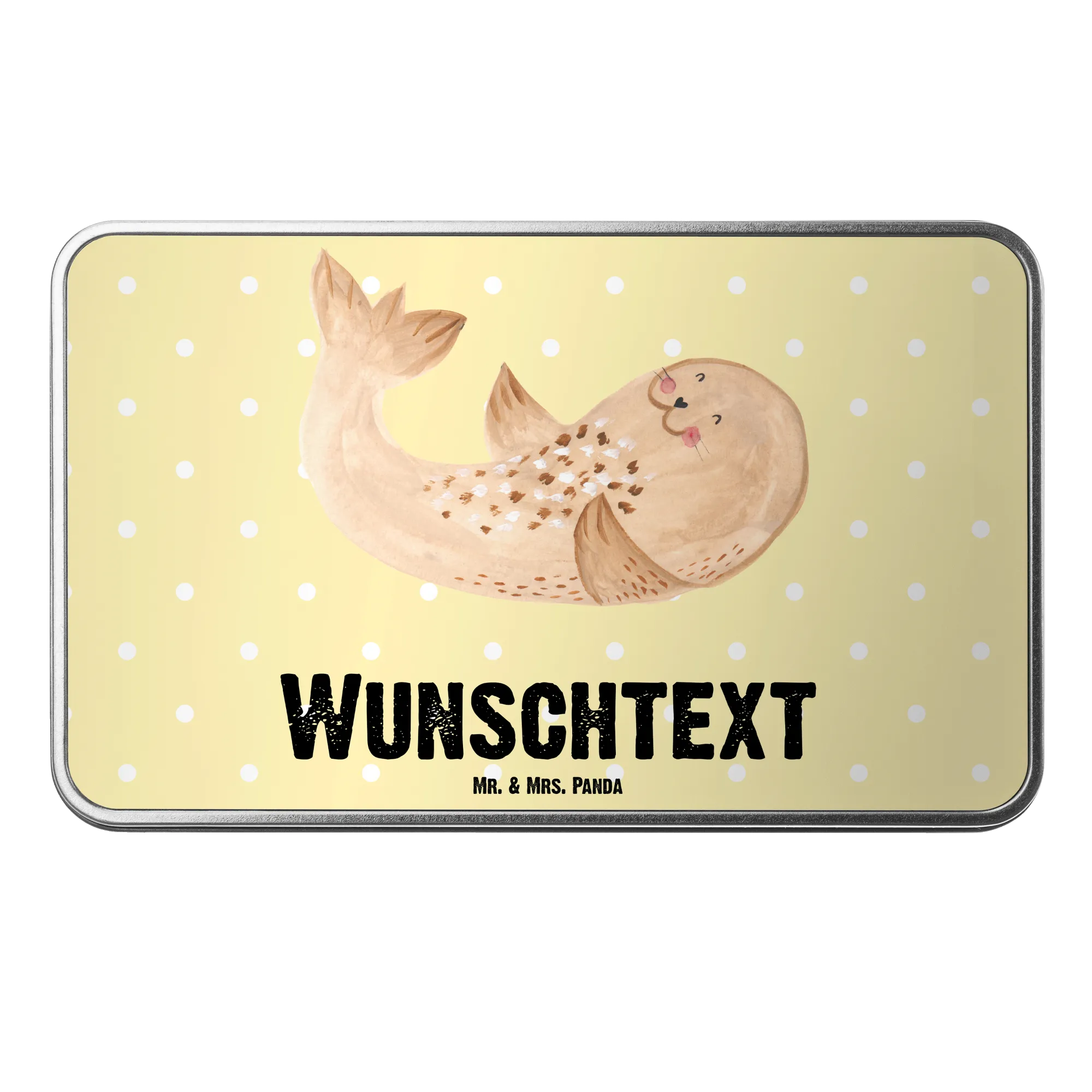 Personalised metal tin seal Lay small animals, cute, funny, cute animal motives, hand drawn, small world, funny sayings, good mood, happy, gifts, gift ideas, special gifts, animal lover, card, seals, Seal, sea animal, North Sea, joy, seal, Baltic Sea, beach, laughter