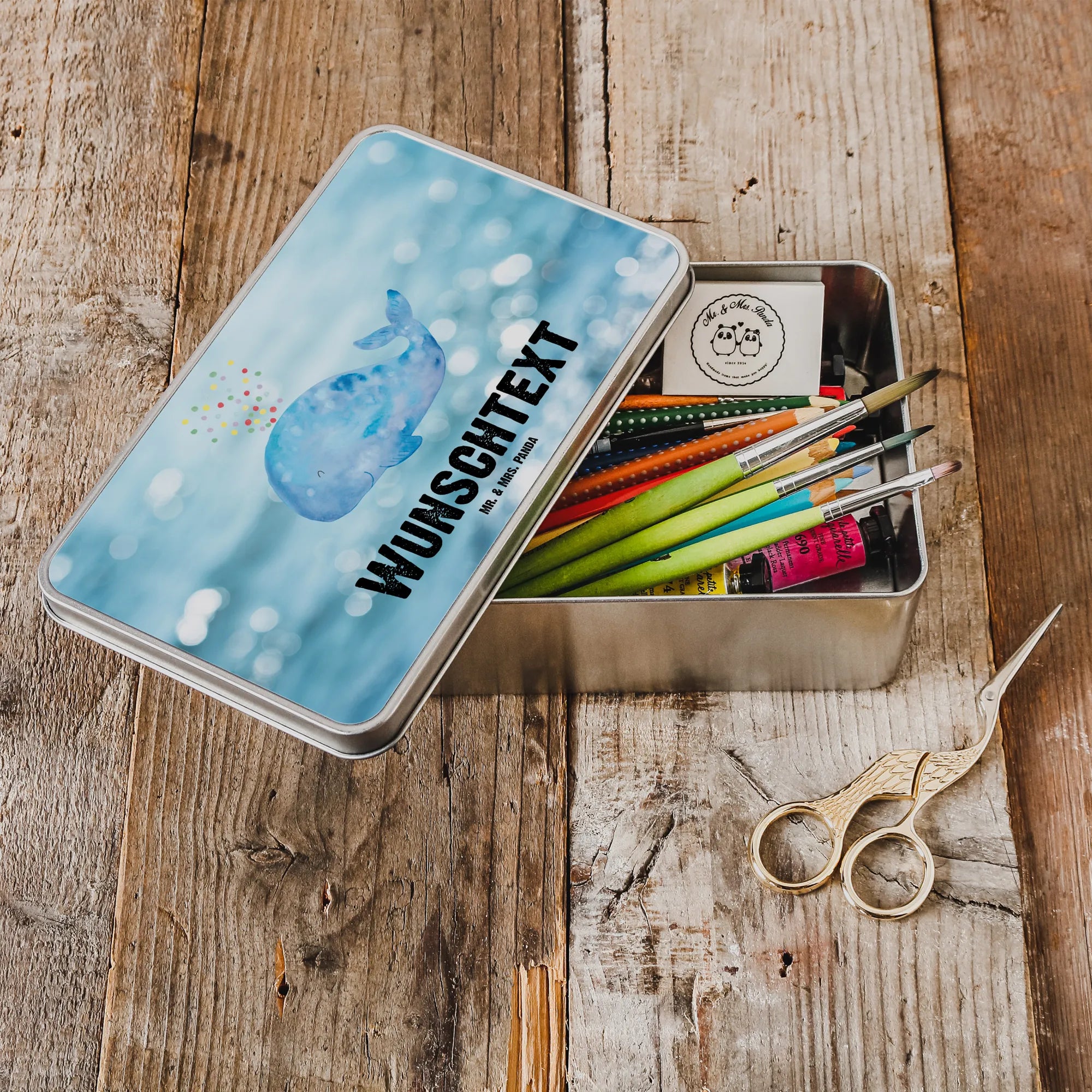 Personalised metal tin whale confetti