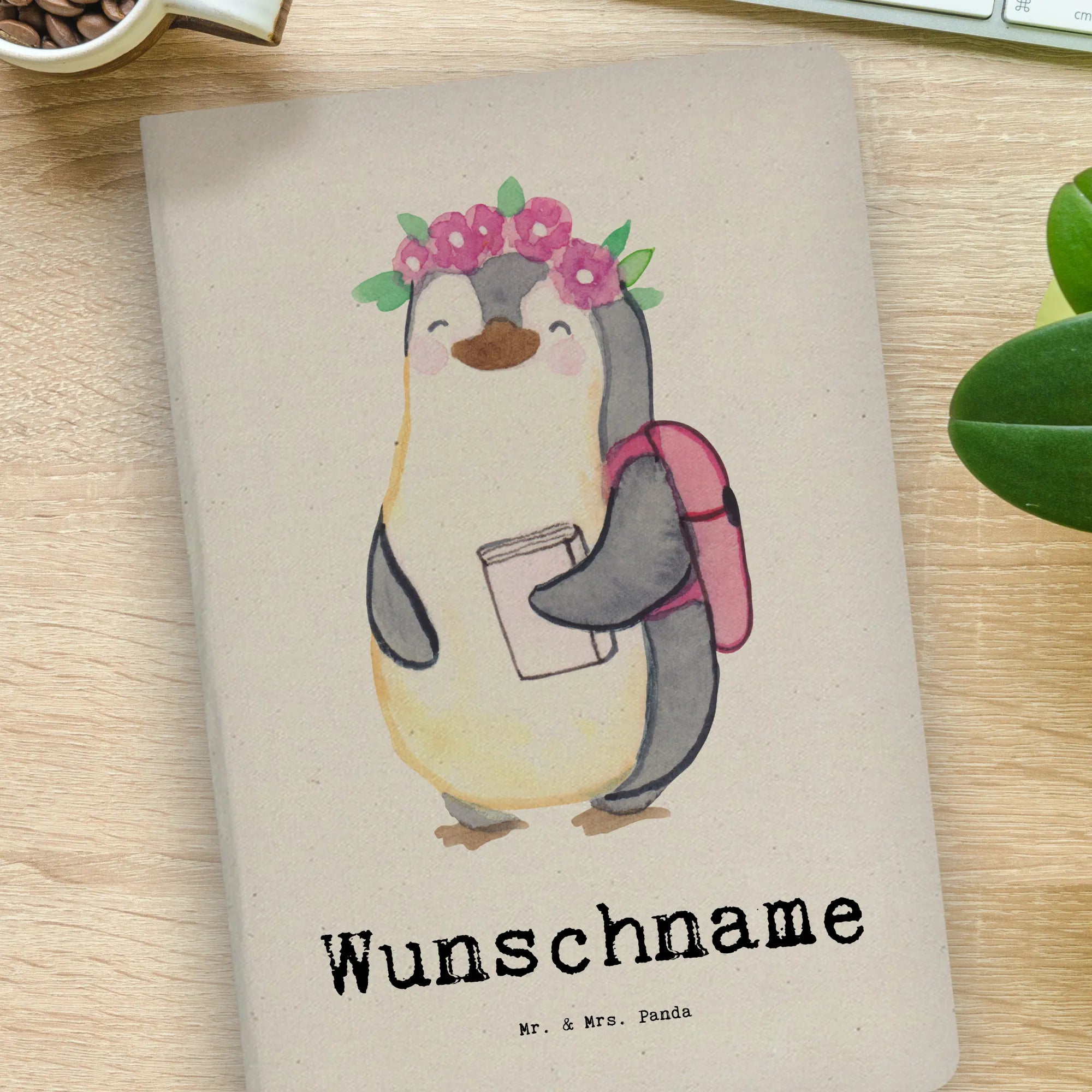 Elevate your writing experience with Mr. & Mrs. Panda's personalized notebook! This beautifully crafted notebook, 297 mm x 210 mm x 15 mm in size, combines functionality with charm. Adorned with sweet illustrations and quotes, it's perfect for capturing spontaneous ideas or thoughtful reflections. Make it uniquely yours by personalizing it with a name or a special message. Each of the 96 pages features unbleached, lined paper that feels fantastic to write upon. The hardcover is wrapped in high-quality cotton for durability, and it includes a convenient ribbon bookmark, elastic band, and pen loop for ease of use. Perfect for gifting to friends or rewarding yourself, this notebook is a must-have for anyone who cherishes creativity. Just a heads up—personalized notebooks cannot be returned, so make sure your customization is just right!