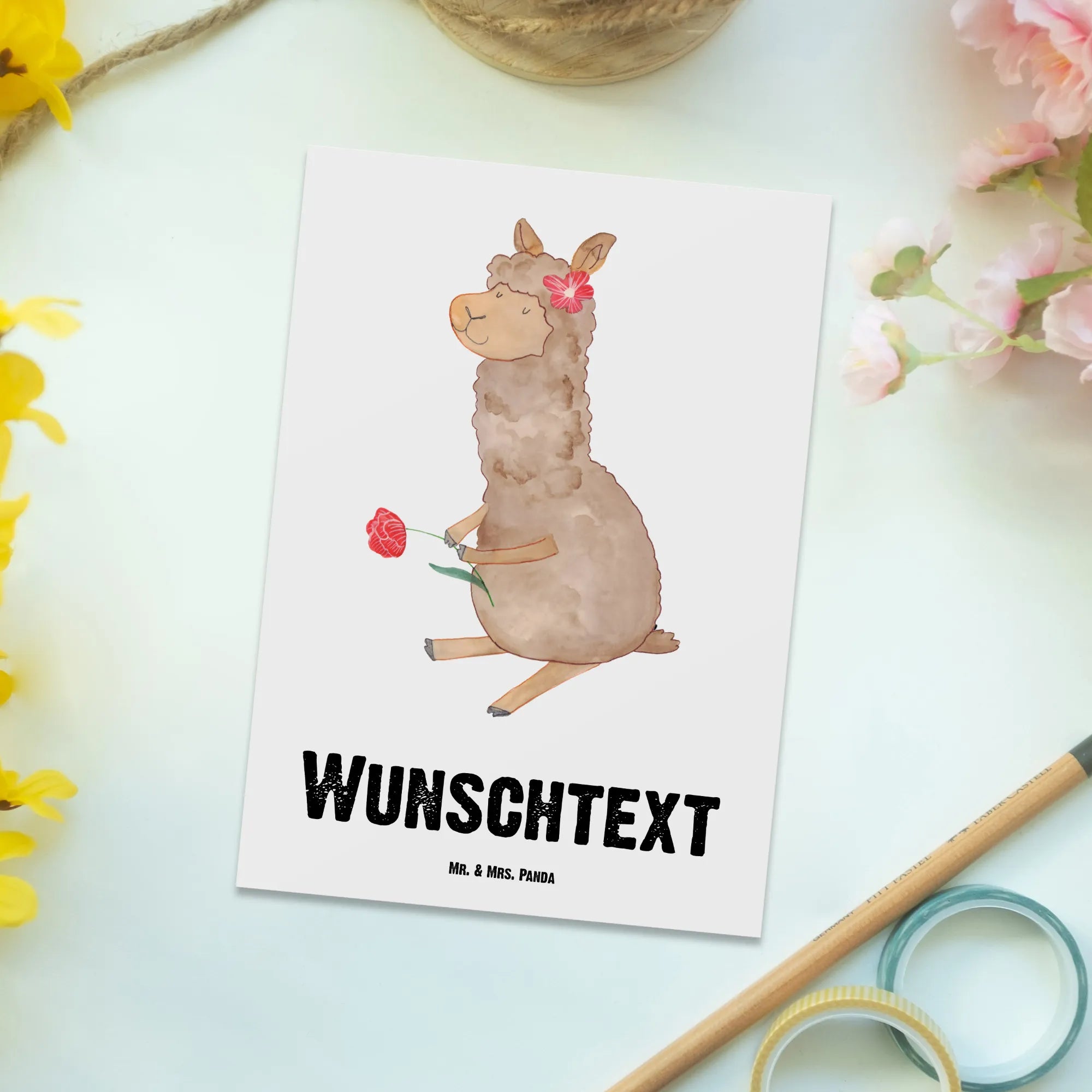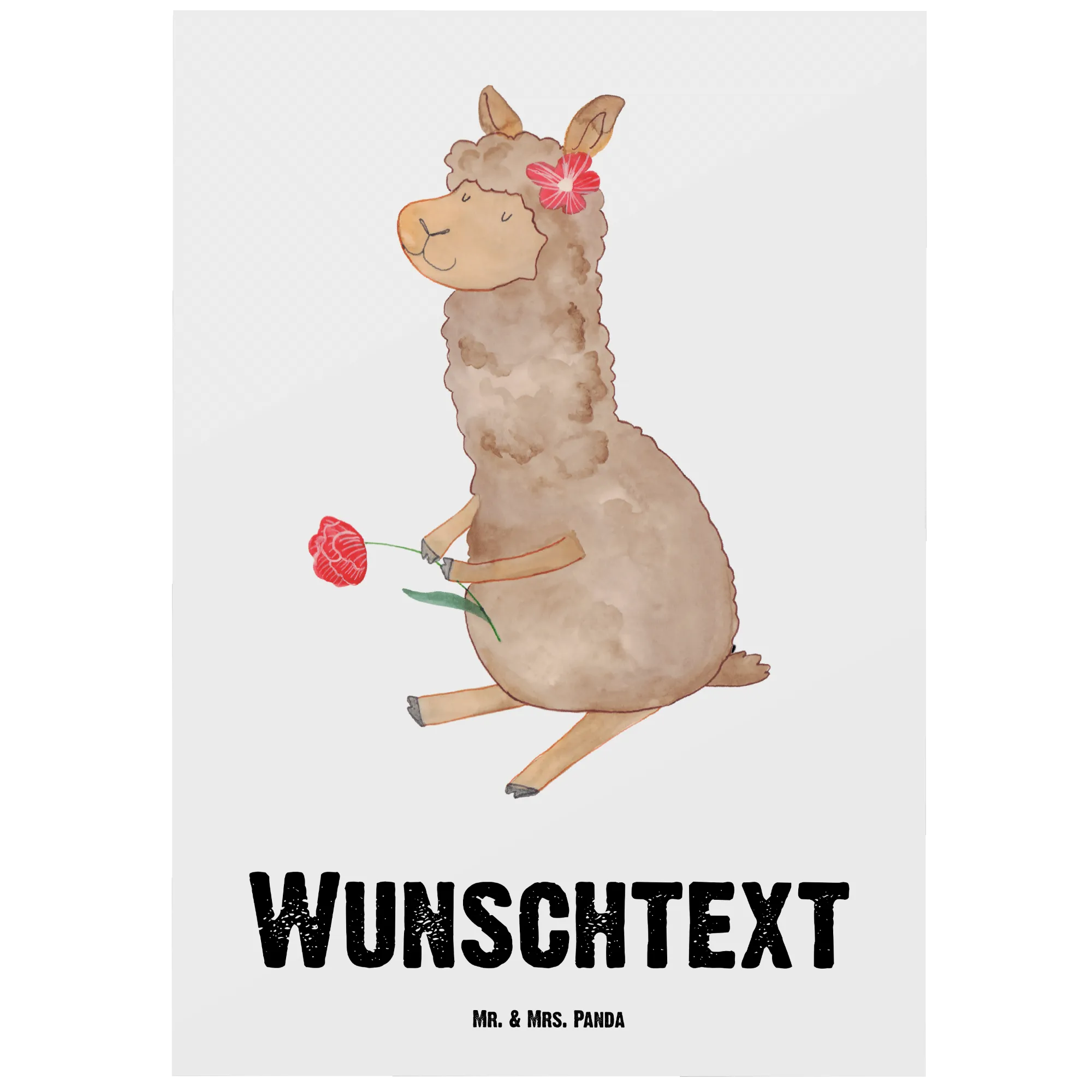 Personalised postcard alpaca flower – Mr. & Mrs. Panda