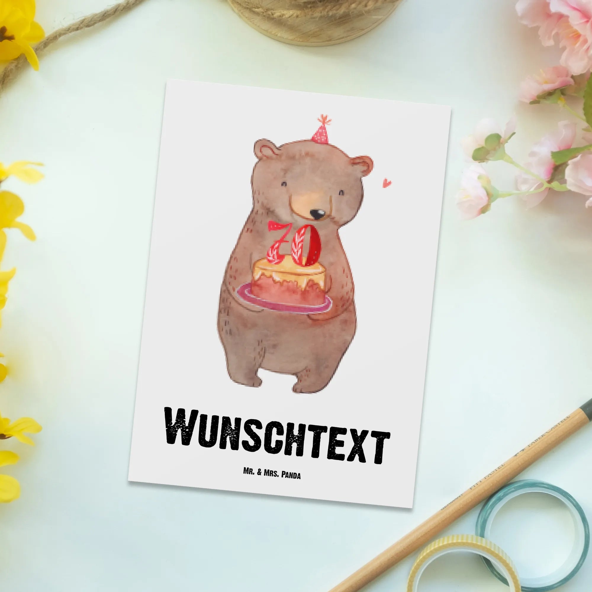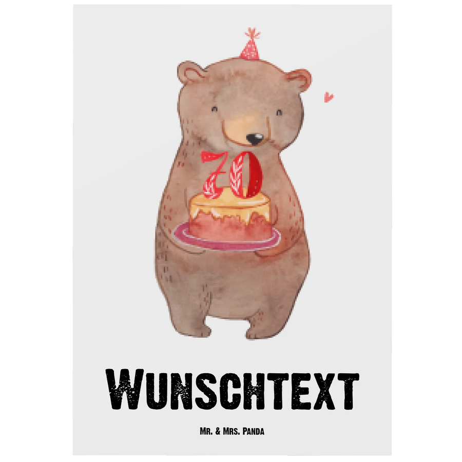 Picture this: a delightful bear wearing a festive party hat, grinning from ear to ear as he proudly presents a luscious birthday cake. This charming motif embodies the joy and warmth of celebrating a 70th birthday. With the saying 'Alles Liebe zum 70. Geburtstag!' beautifully accompanying him, this loving bear invites everyone to join in the festivities. It's not just about the cake, but the laughter, the memories, and the love shared on this special day. This whimsical image captures the essence of a celebration, where friends and family gather, gifts are exchanged, and hearts are full of happiness. Whether adorned on a greeting card, gift wrap, or as part of a birthday decoration, this bear reminds us that reaching this milestone is not just an age, but an achievement worthy of joy and love. Let's make this 70th birthday a memorable one, celebrating life, friendship, and the many sweet moments that come along with it.