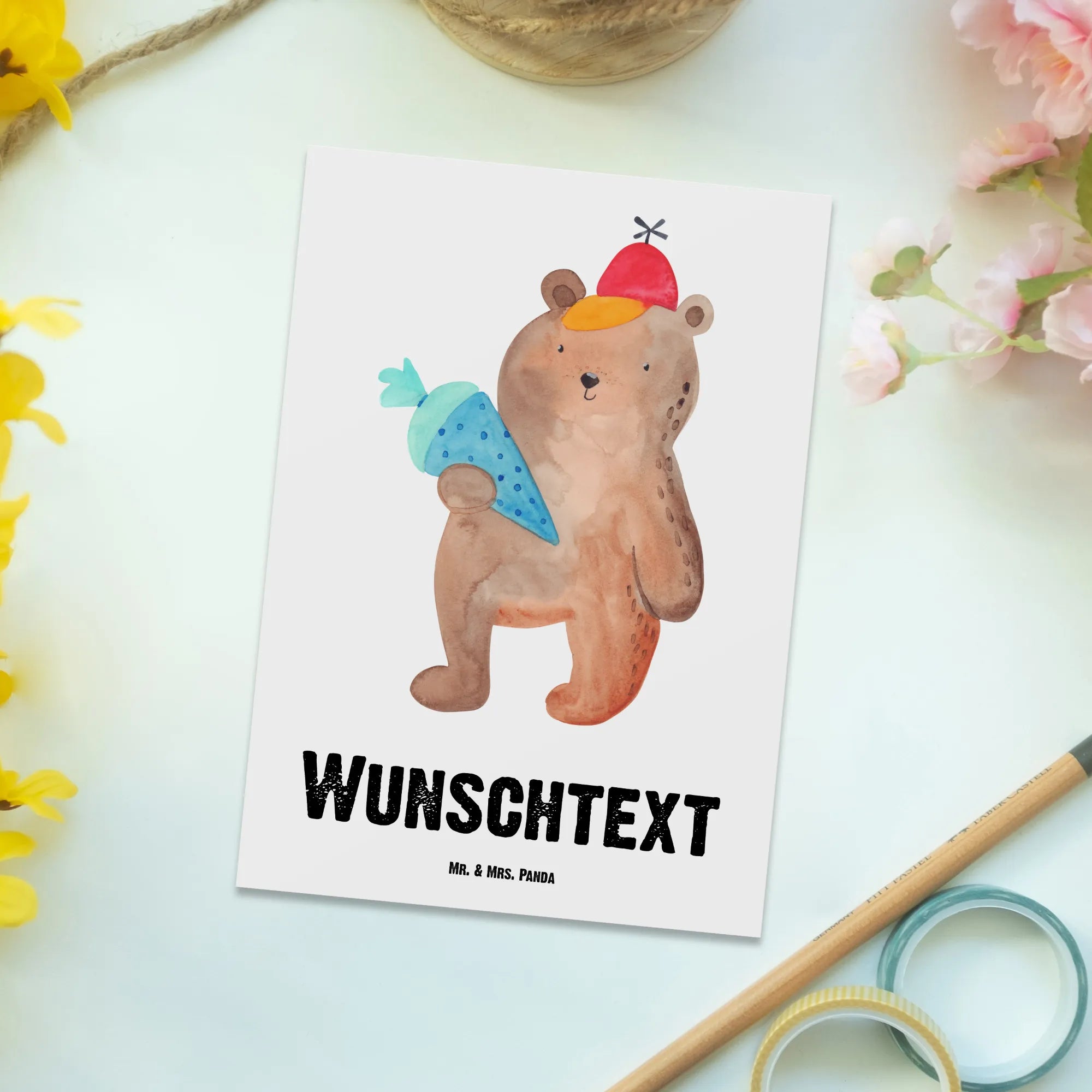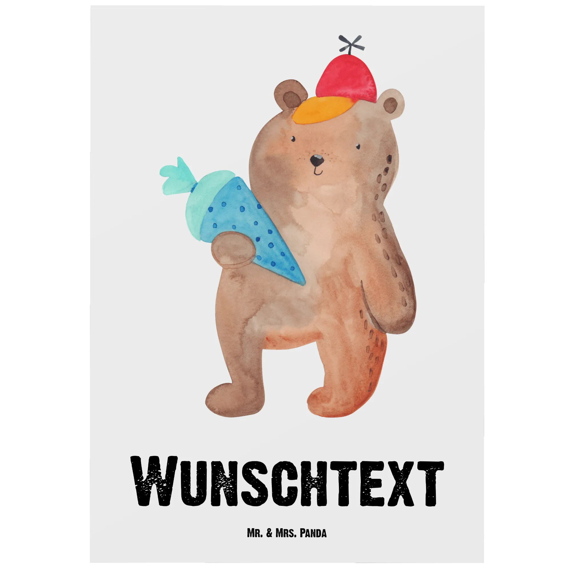 Personalised postcard bear School cone