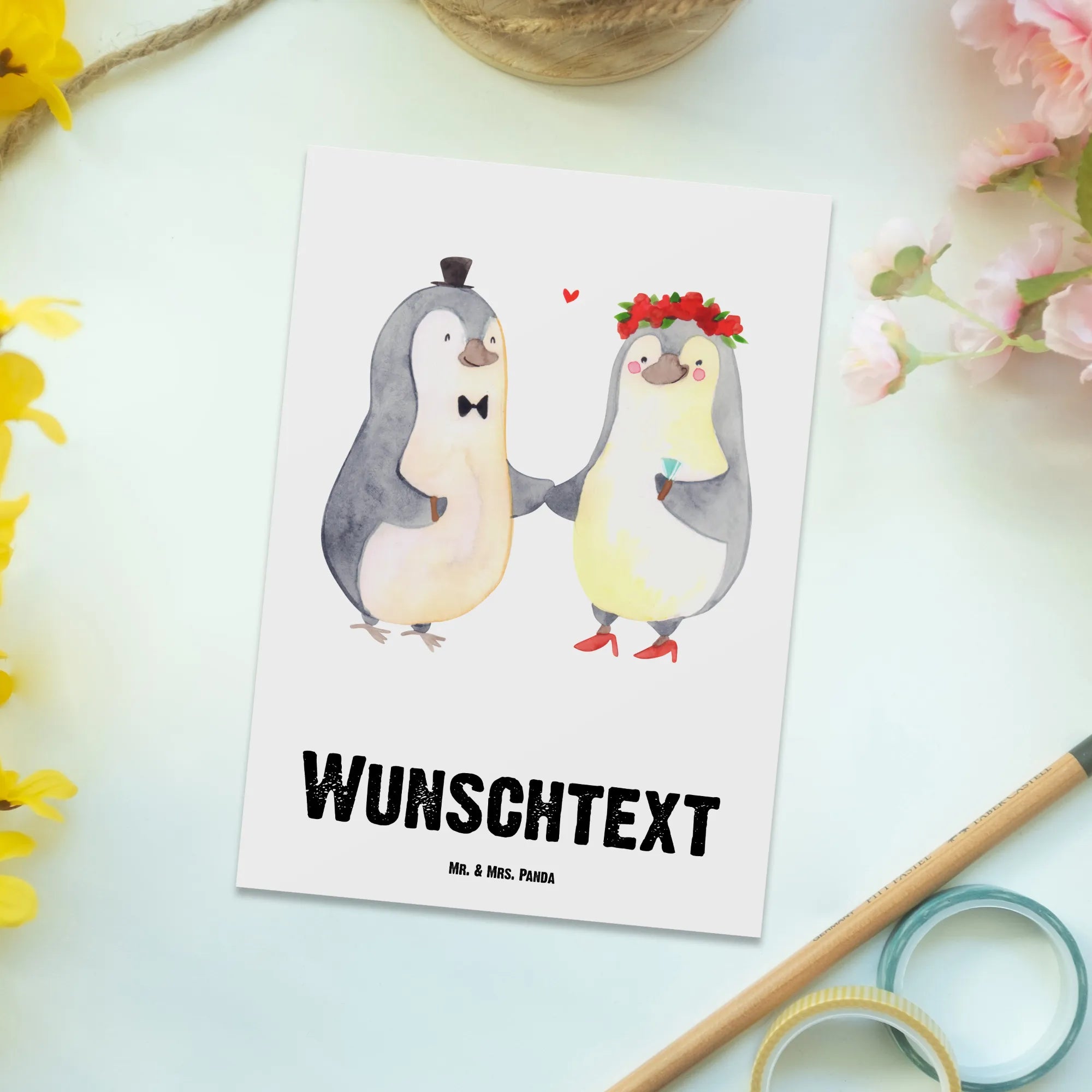 Personalised postcard Marriage penguin