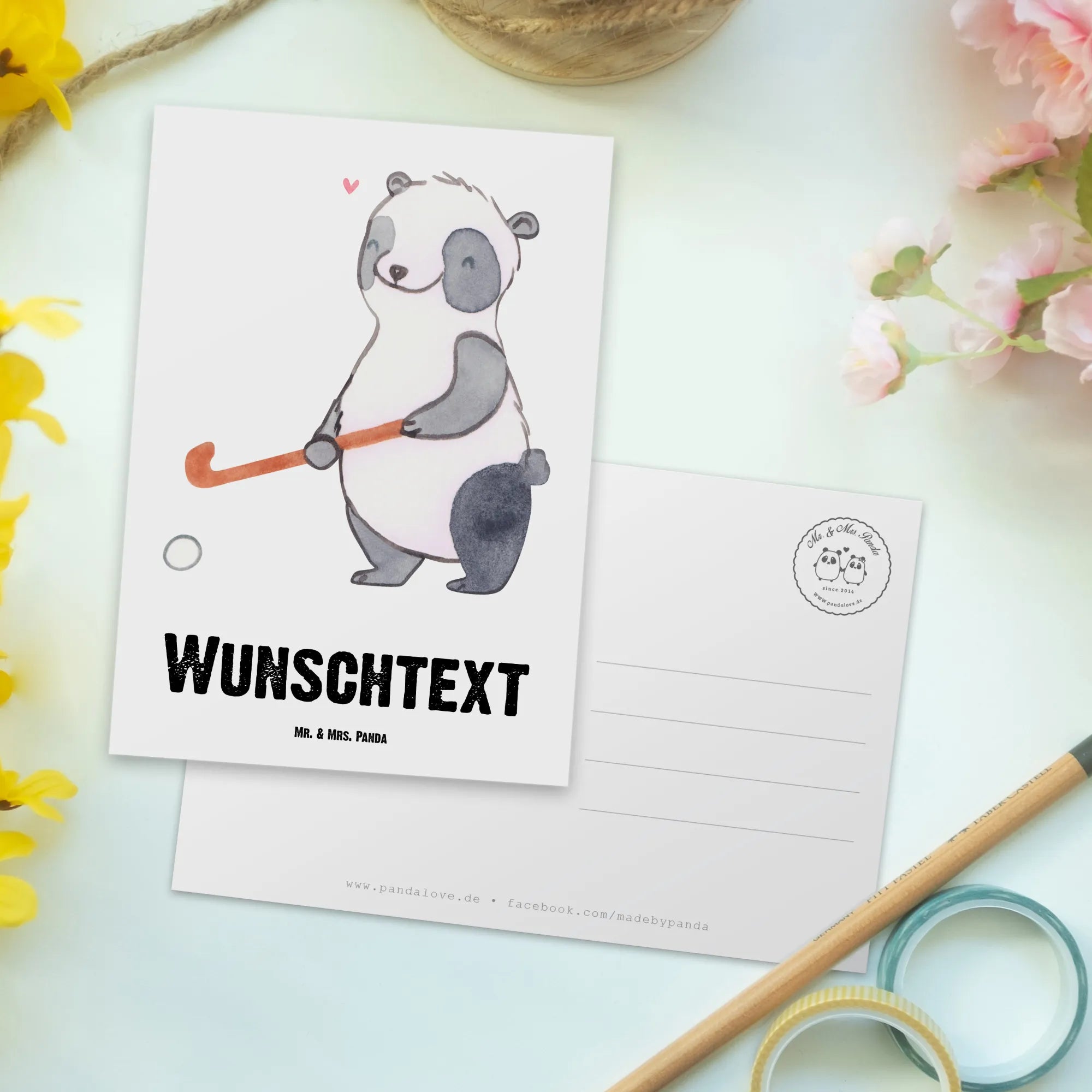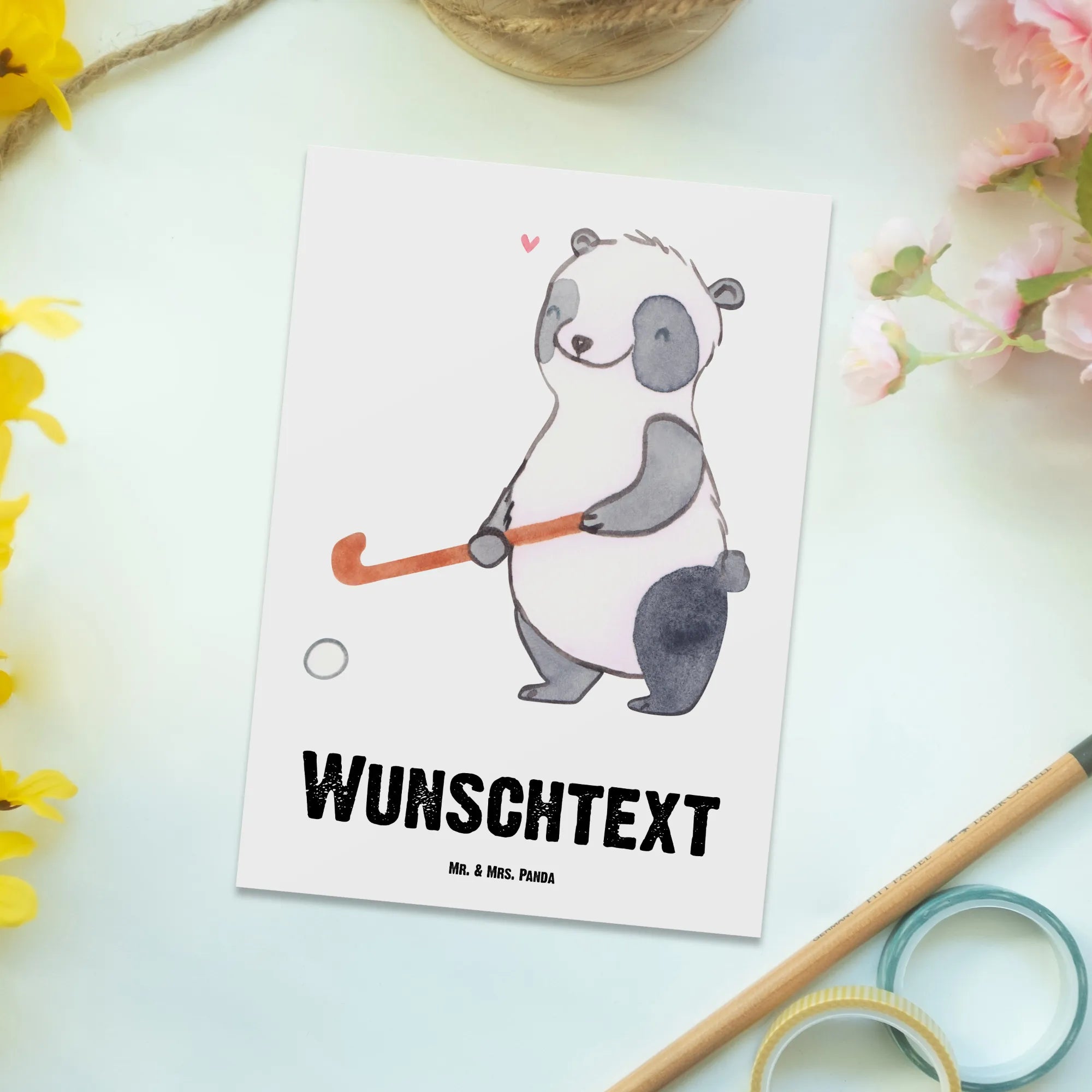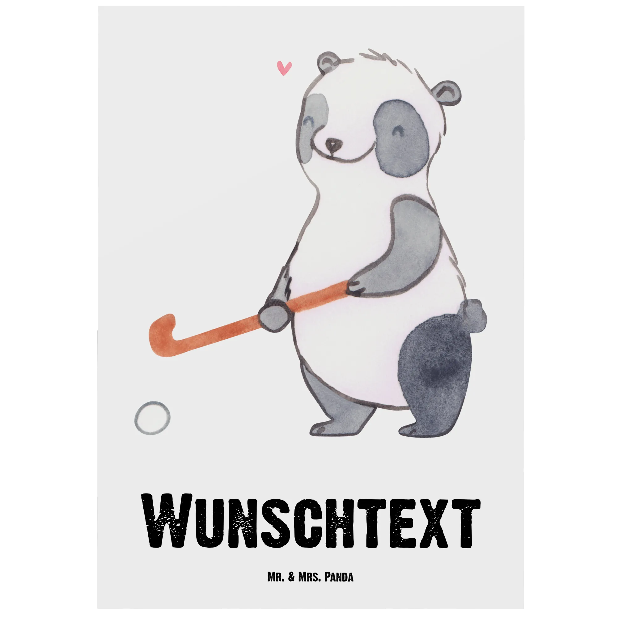 Personalised postcard panda play hockey