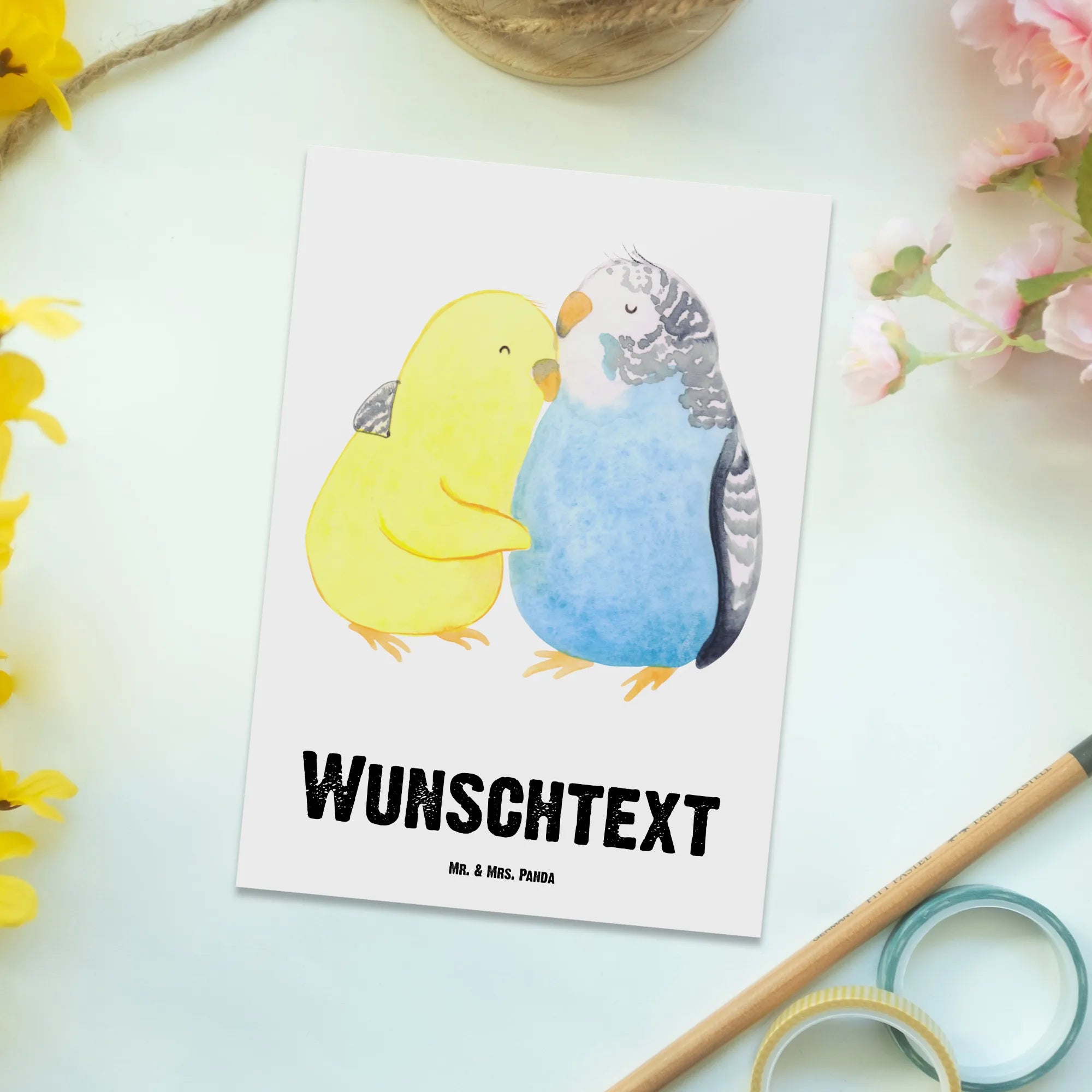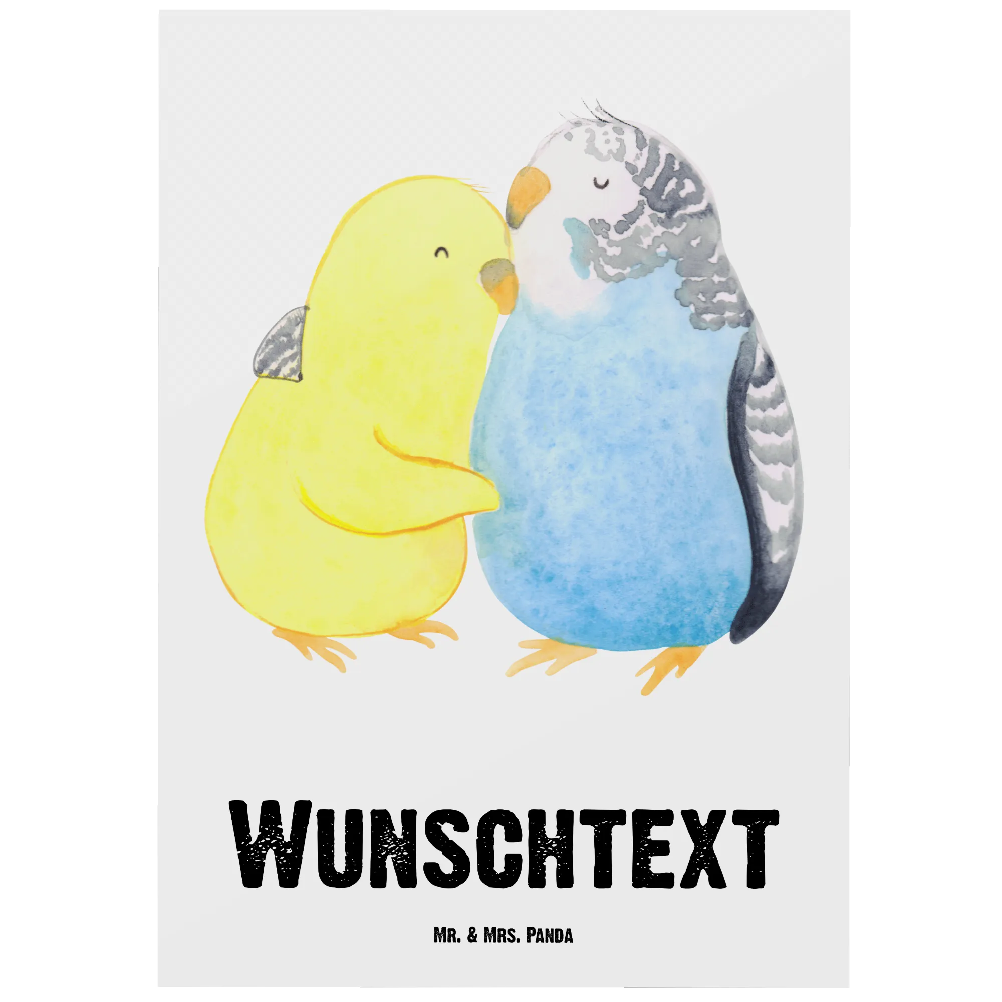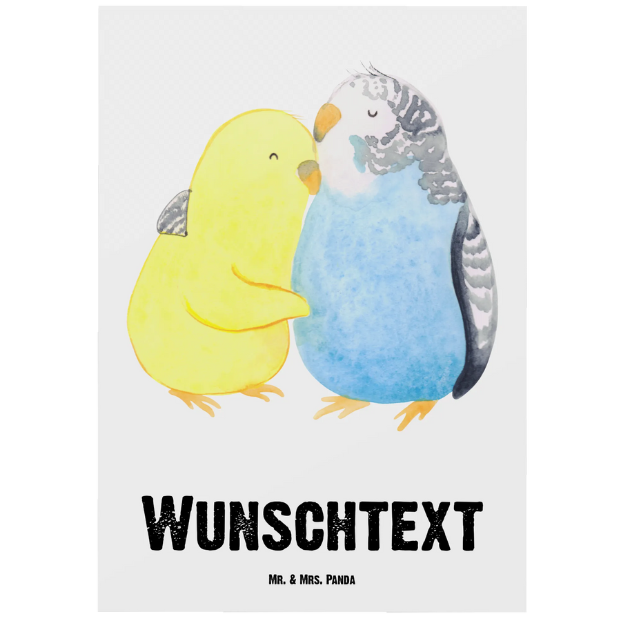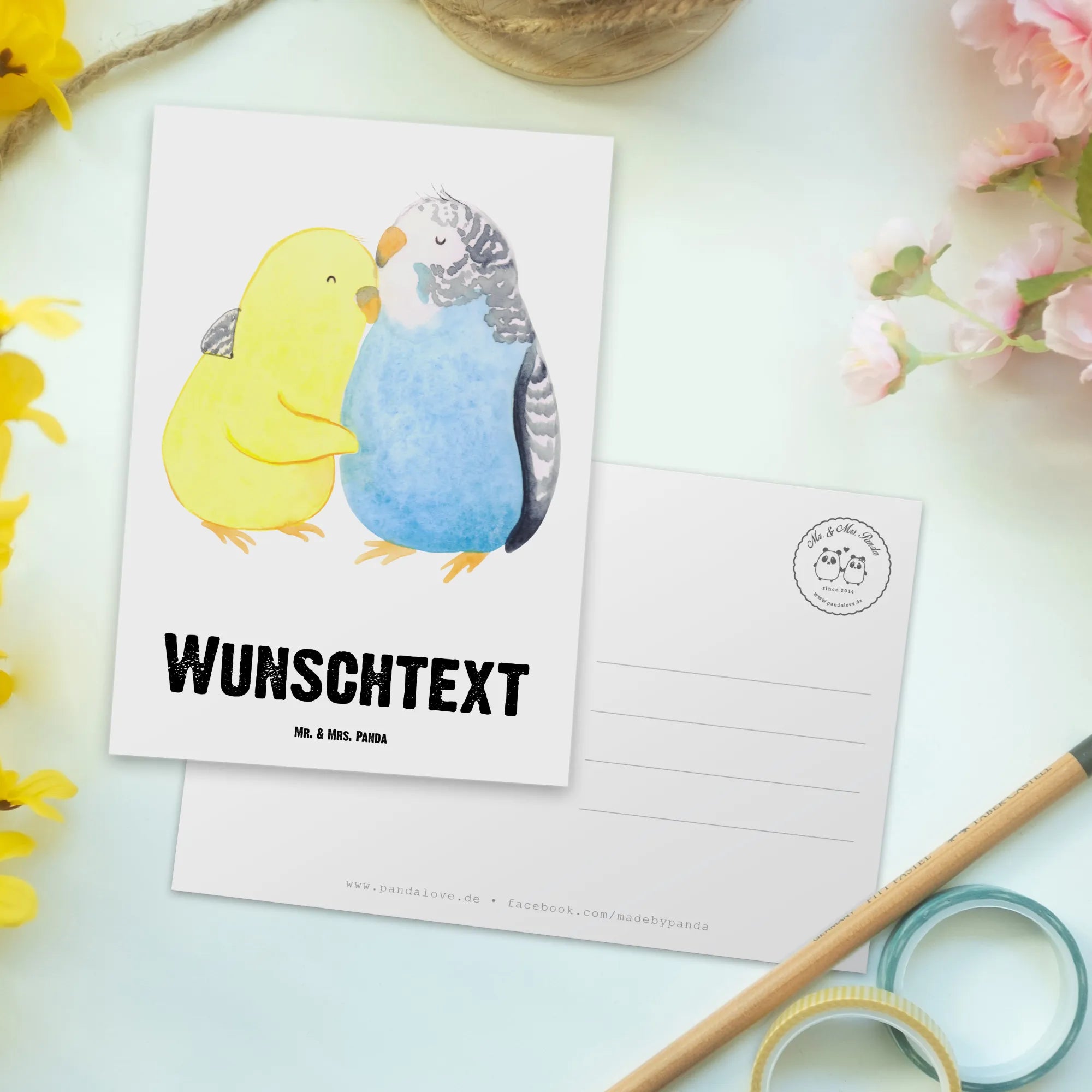 Personalised postcard Parakeets in love – Mr. & Mrs. Panda