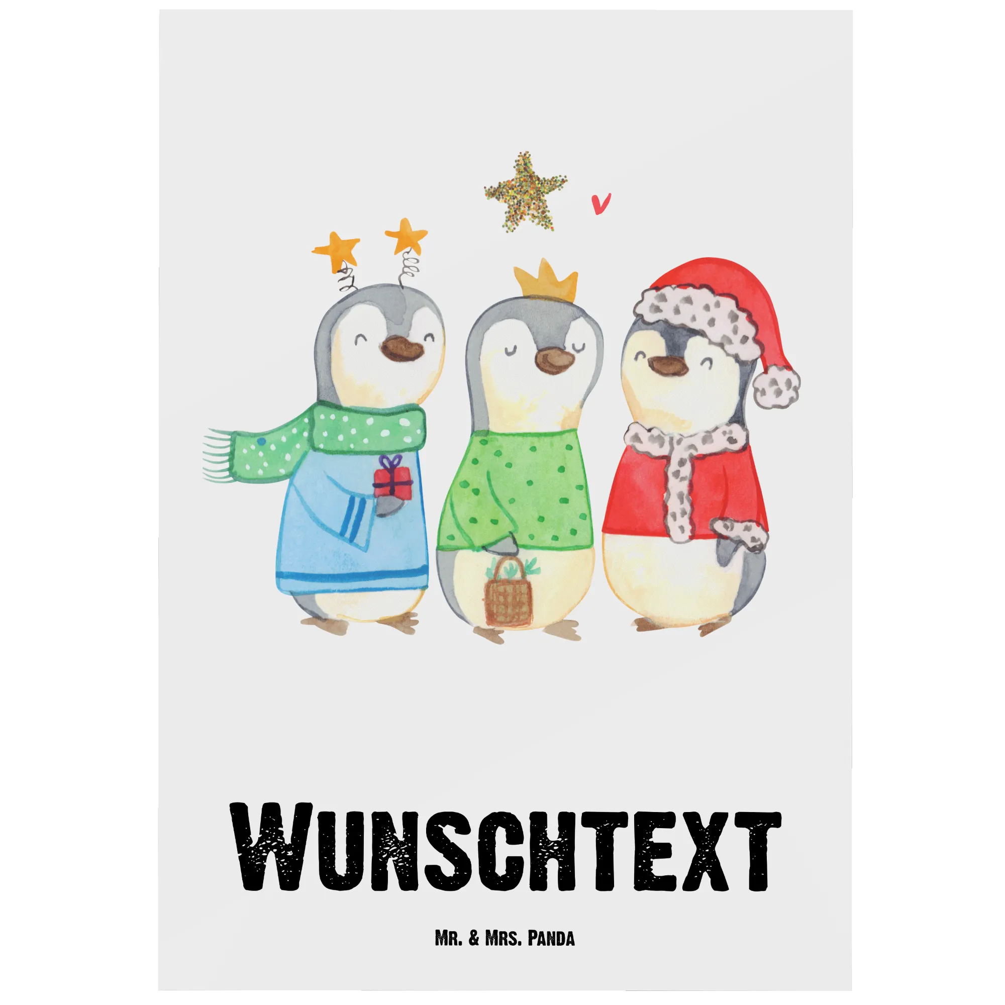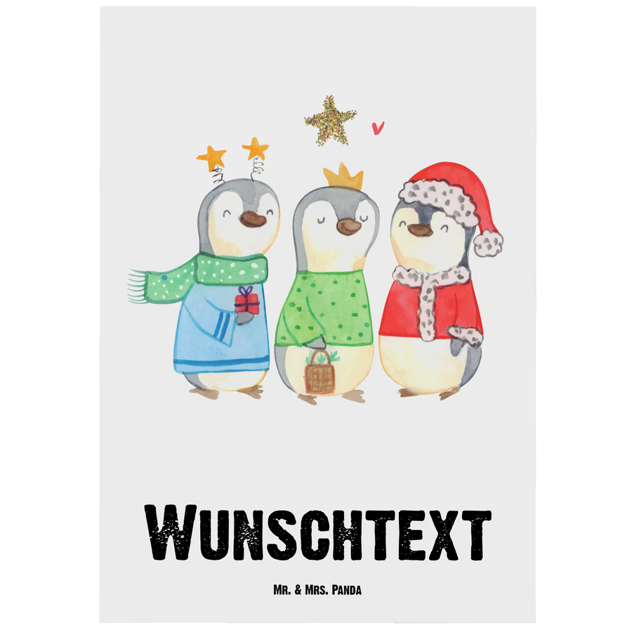 As winter blankets the world in white, meet our enchanting trio of penguins dressed as the Three Kings! This lively motif captures not only the festive spirit of Christmas but also the warmth we share with loved ones during this chilly season. They symbolize the joy and laughter that fill our hearts on Christmas Eve and beyond. 'Ich wünsche dir fröhliche Weihnachten und einen leuchtenden Stern, der dir an dunklen Tagen den Weg leuchtet.' Let this design bring light to your chilly winter days, encouraging you to shine bright and share love with those around you!
