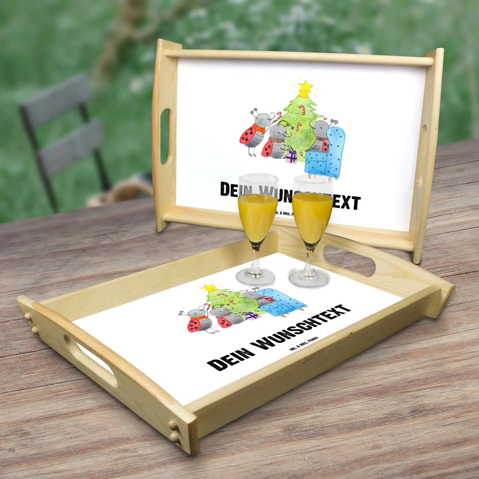 This motif elegantly captures the cheerful spirit of Christmas as three adorable ladybugs gather around a glowing Christmas tree. Unwrapping vibrant gifts brightly wrapped with ribbons, they join in the festive cheer that fills the room with joy. The enchanting aroma of pine needles and peppermint sticks heightens the anticipation of the holiday season. Each little bug reflects the warmth of family, camaraderie, and the joy of giving. The slogan, 'Wir wünschen dir und deiner Familie wundervolle Weihnachtstage und einen guten Rutsch in ein magisches neues Jahr!' perfectly embodies the sentiment of togetherness and the wishes for a magical holiday.