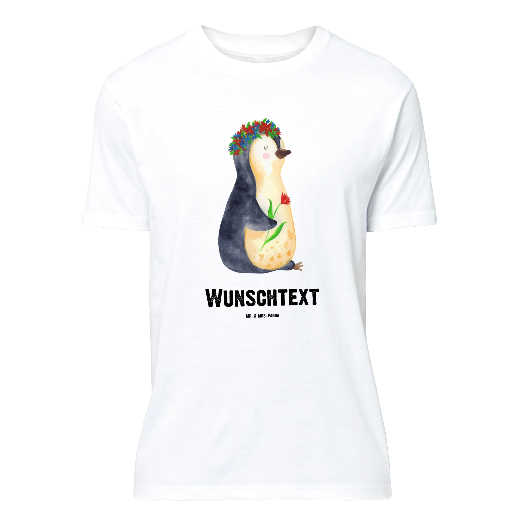 Größe XL Personalisiertes T-Shirt „Pinguin Blumenkranz“ aus der Pinguin - Kollektion von Mr. & Mrs. Panda ist die perfekte Mischung aus Niedlichkeit, Motivation und Persönlichkeit. Der liebevoll handgezeichnete Pinguin trägt einen zarten Blumenkranz und hält eine Blume – ein Motiv, das Lebensfreude und Sanftmut ausstrahlt. Durch die Personalisierbarkeit mit deinem Wunschtext oder Namen und dem inspirierenden Spruch „Liebes Universum, ich bin jetzt bereit für das großartige Leben.“ wird dieses Shirt zu einem ganz besonderen Unikat.