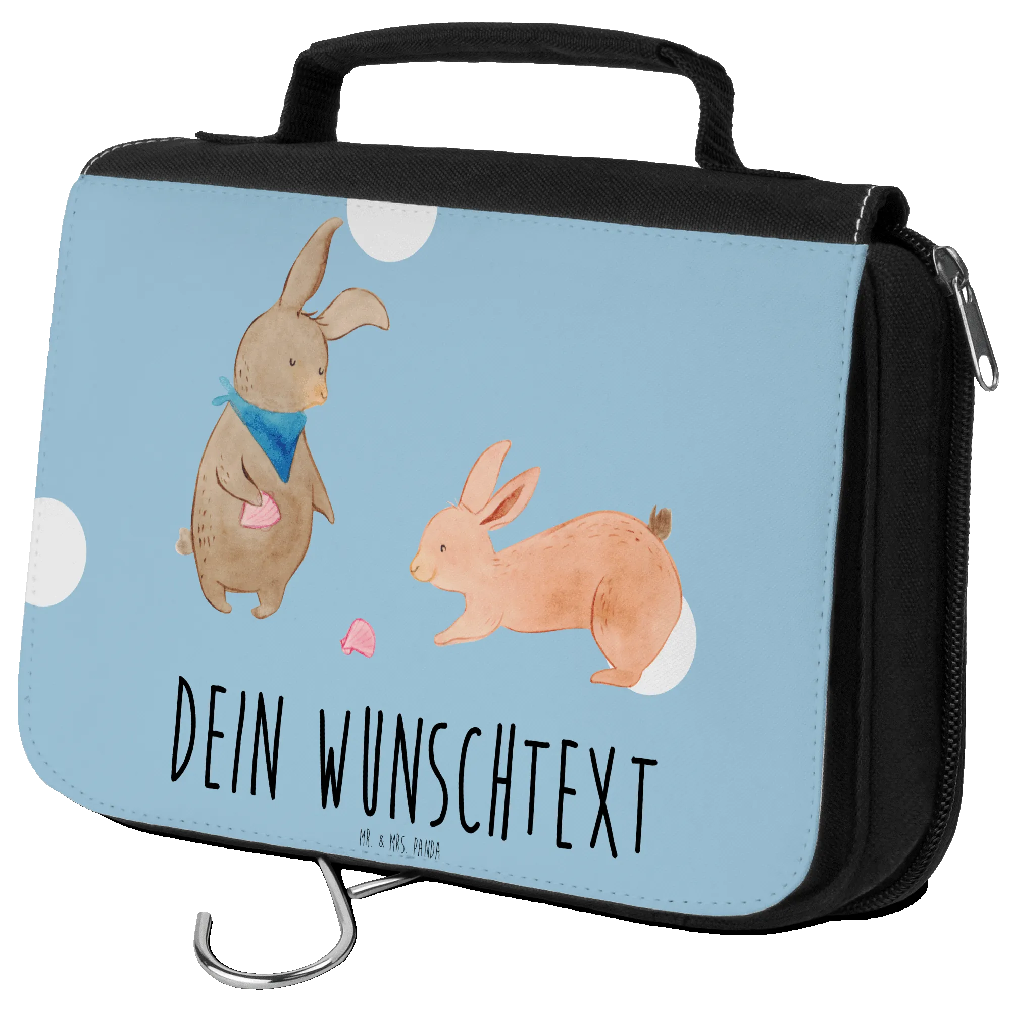 Personalised wash bag Bunnies with seashell - Blue Pastel