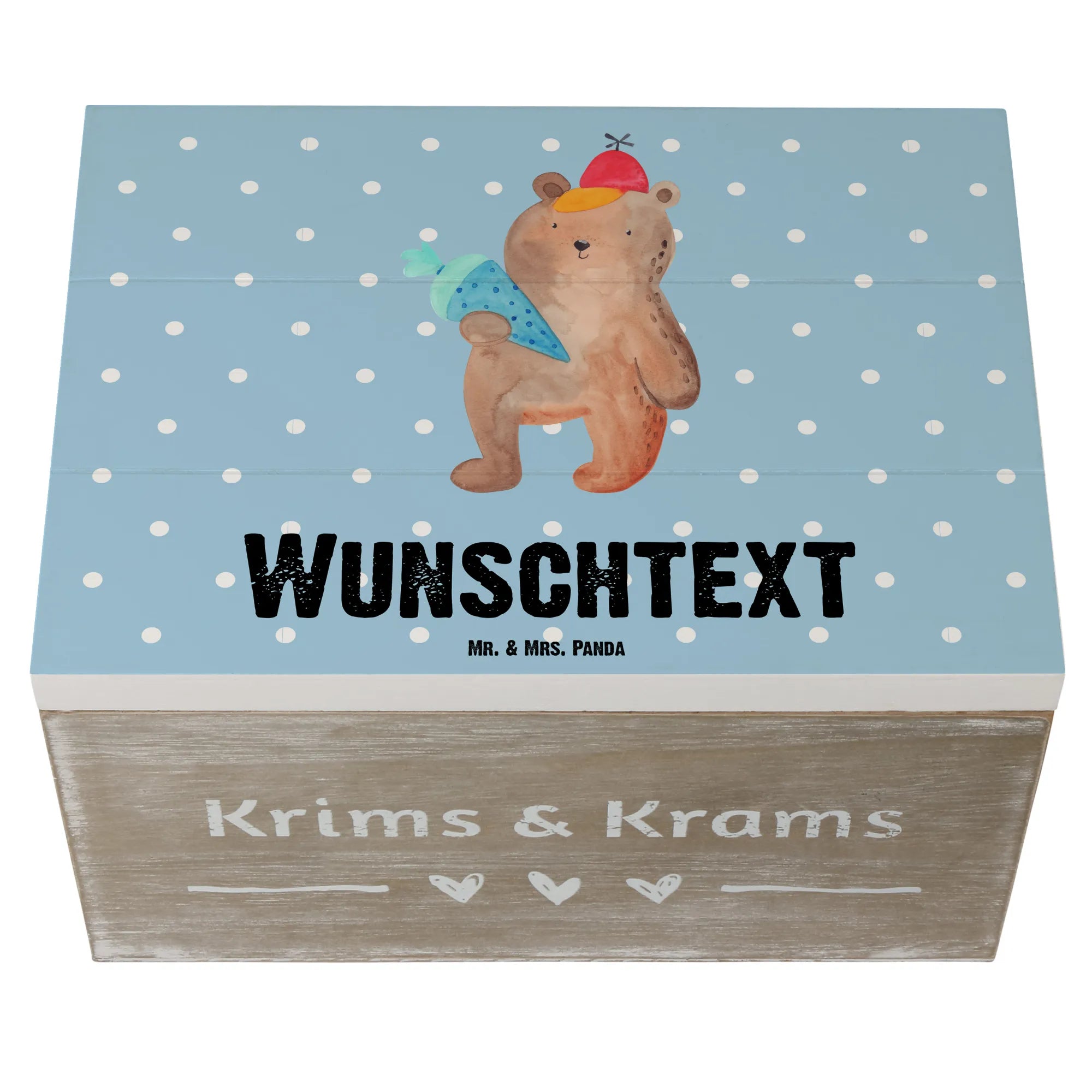 Personalised wooden chest bear School cone - 22 x 15 cm - White