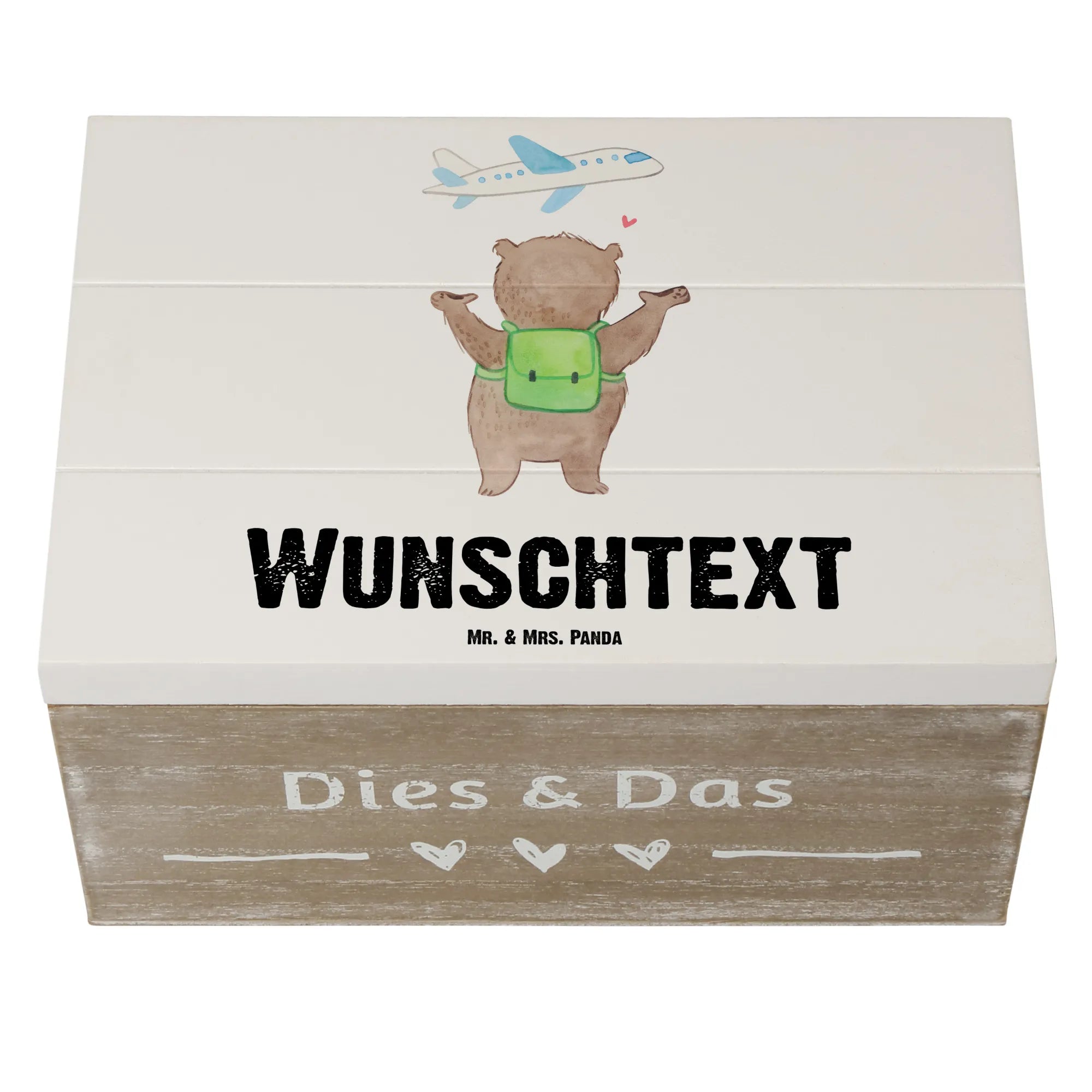Personalised wooden chest bear Travel - 22 x 15 cm - White