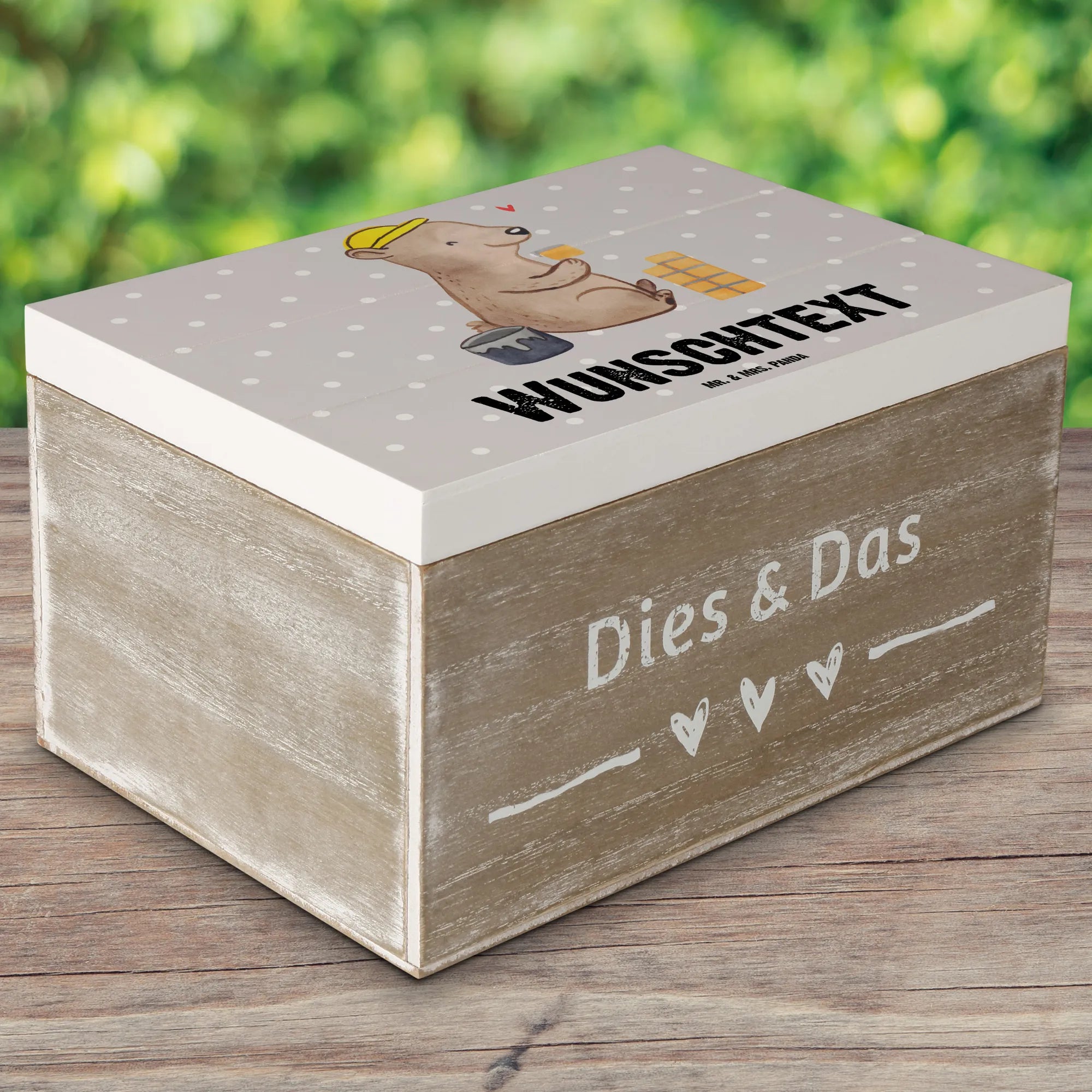 Personalised wooden chest bricklayer heart - 22 x 15 cm - White