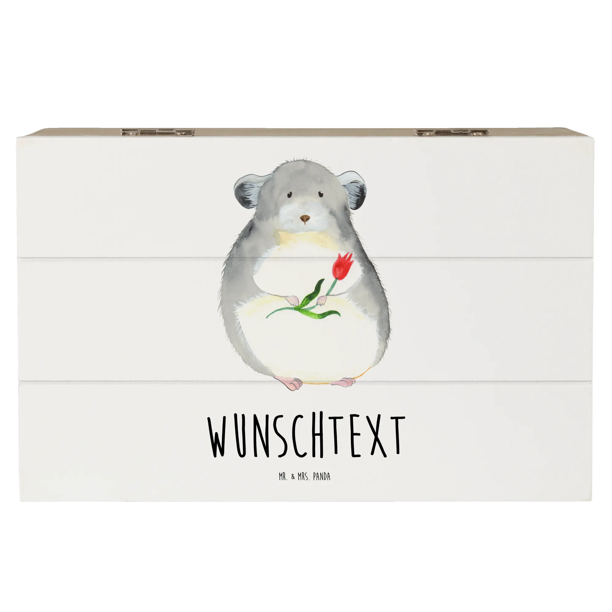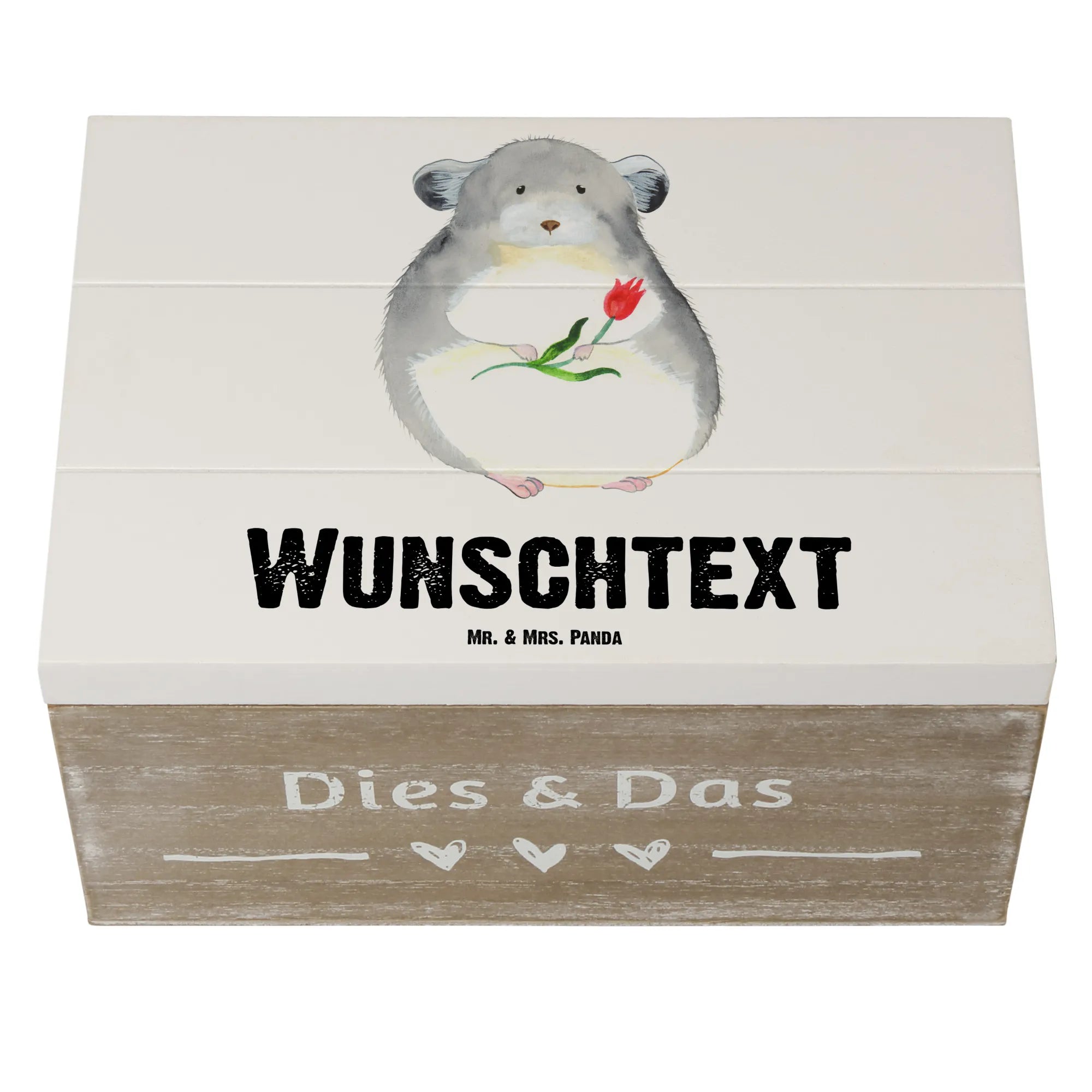 Personalised wooden chest chinchilla flower - 22 x 15 cm - White