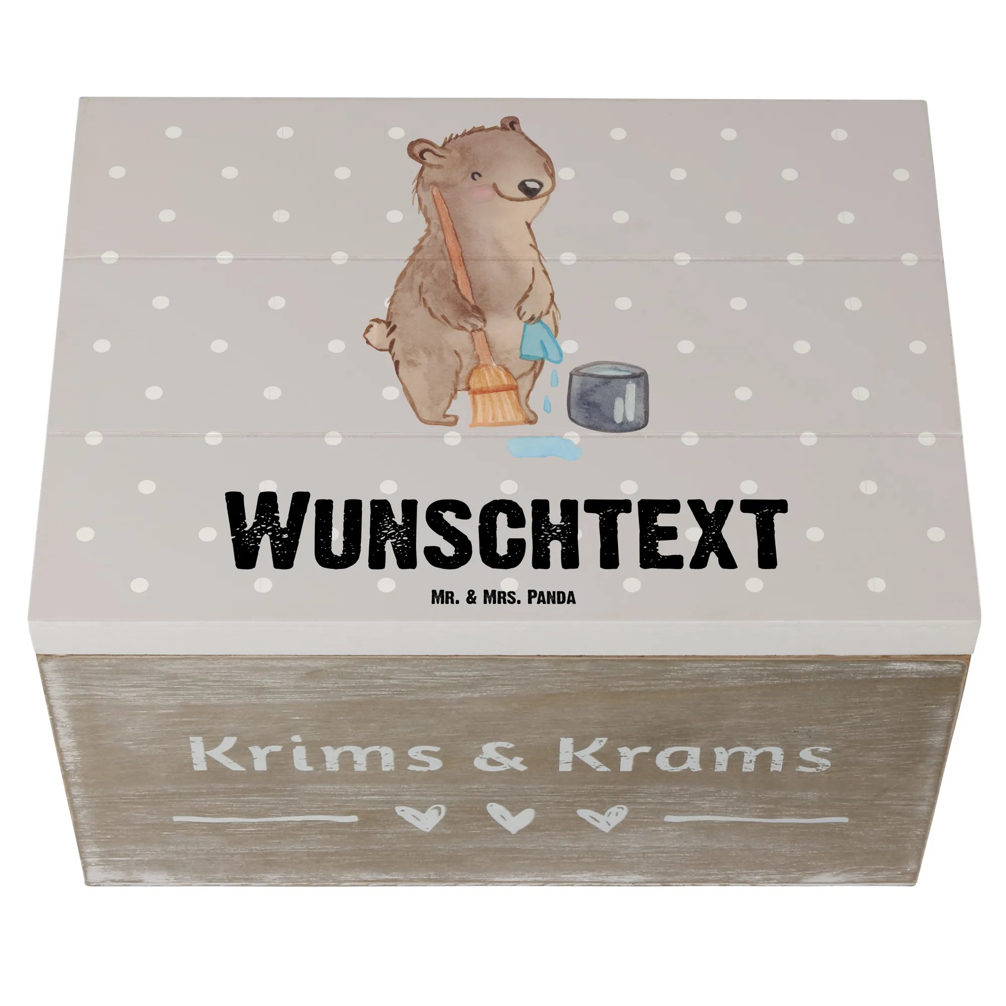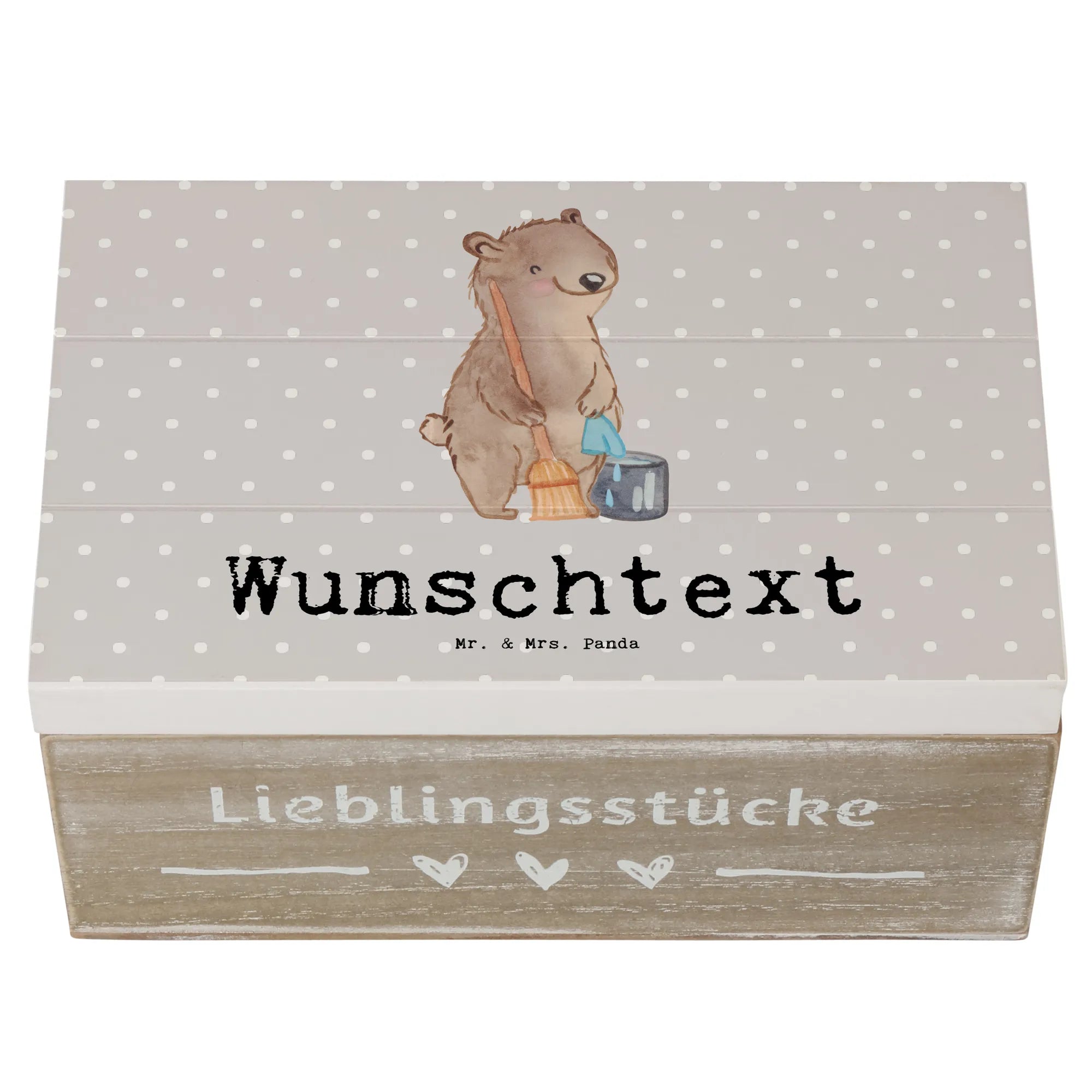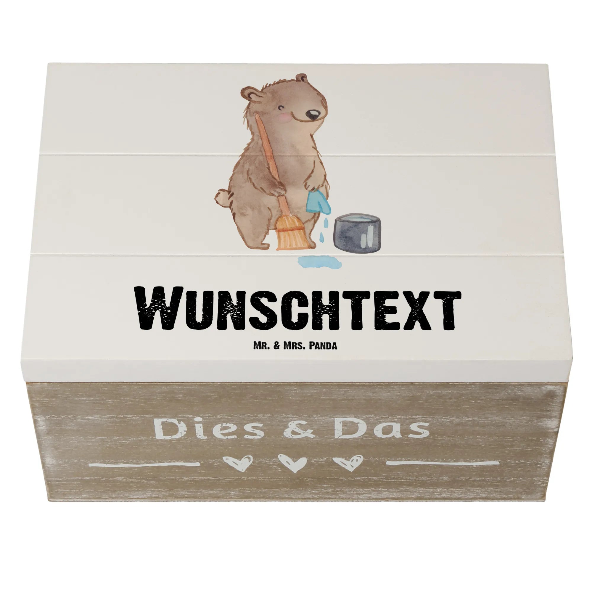 Personalised wooden chest cleaning lady heart - 22 x 15 cm - White