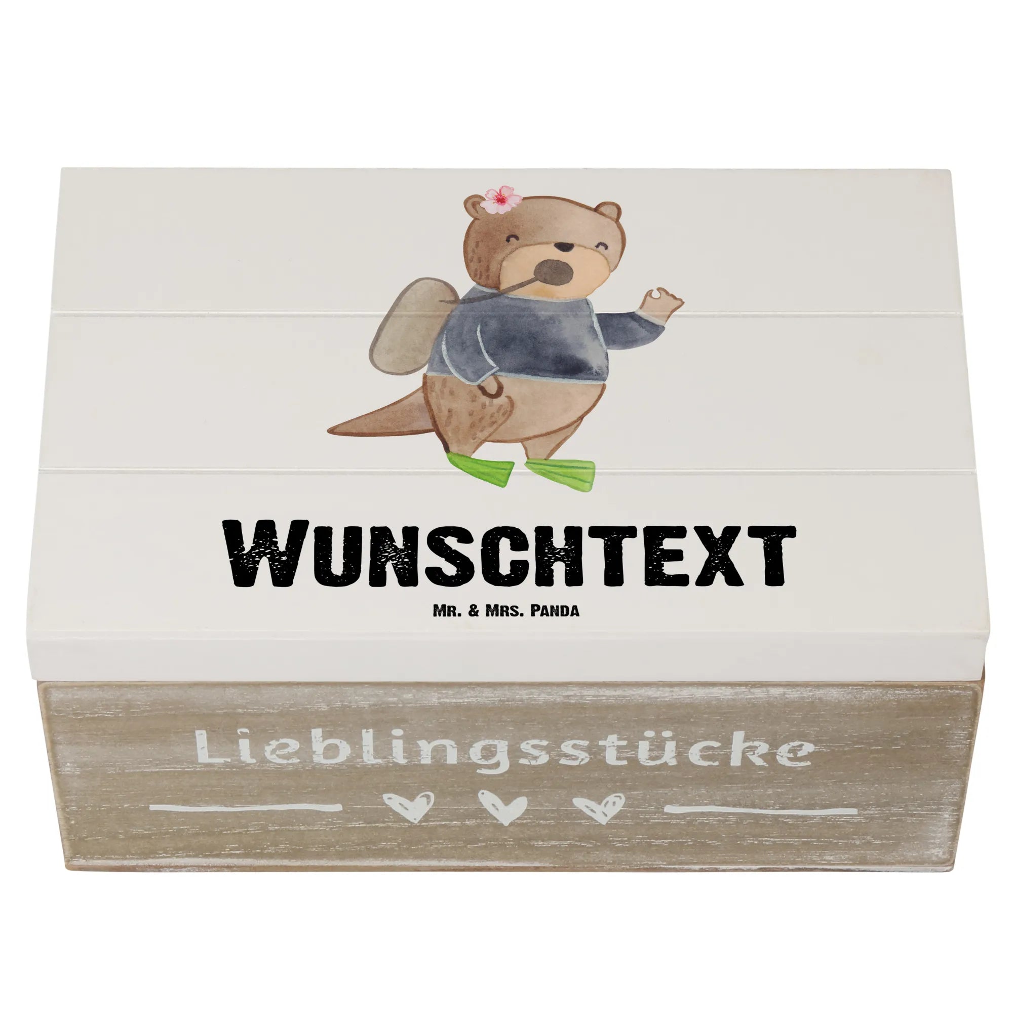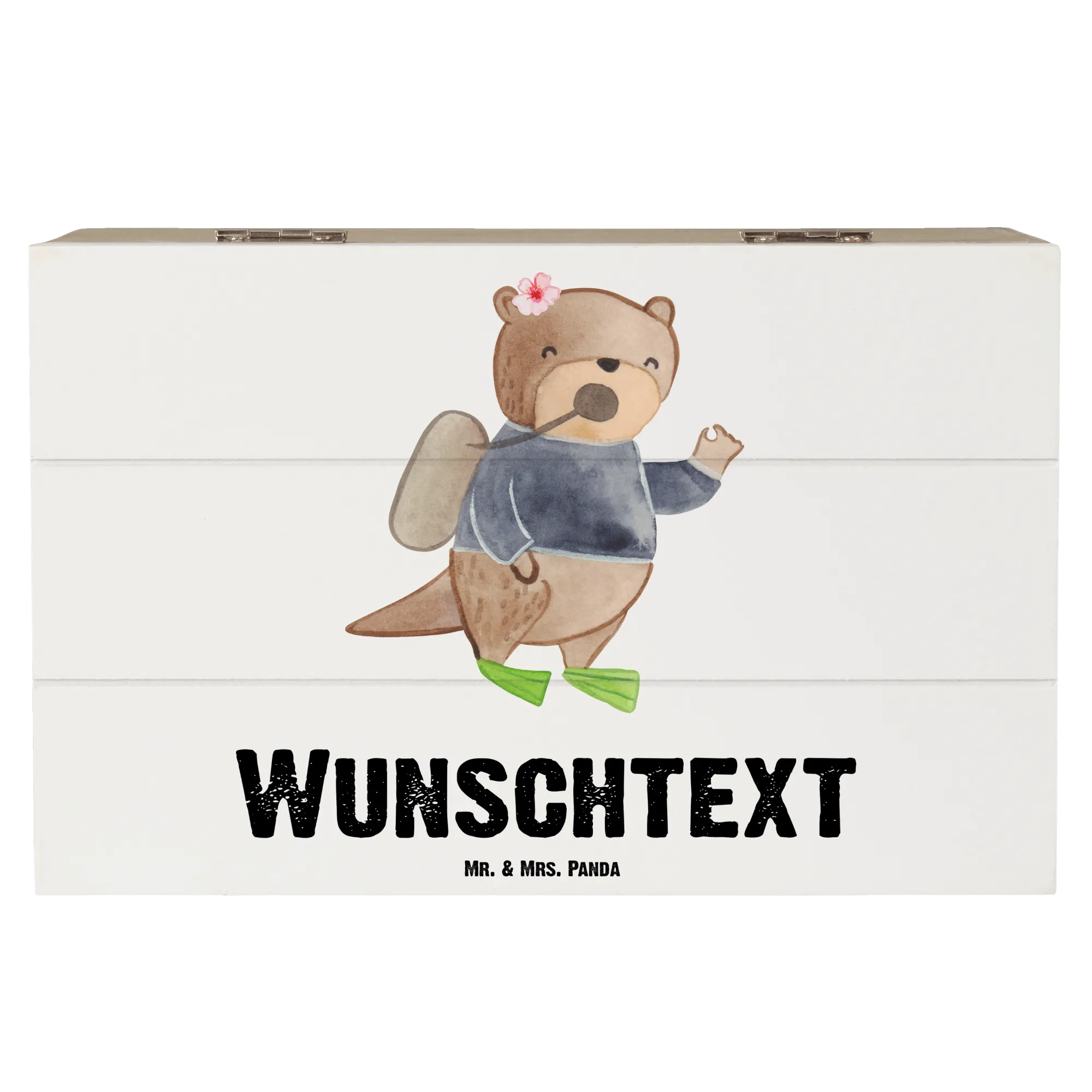 Personalised wooden chest Dive Instructor Heart - 22 x 15 cm - White