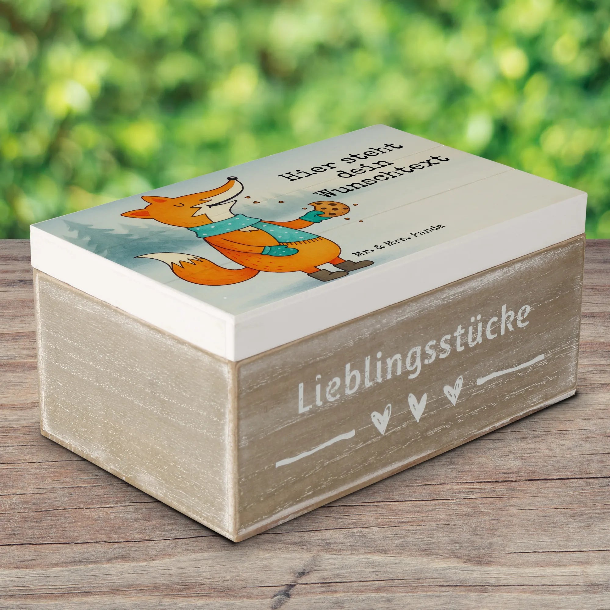 Personalised wooden chest Fox biscuit Design - 22 x 15 cm