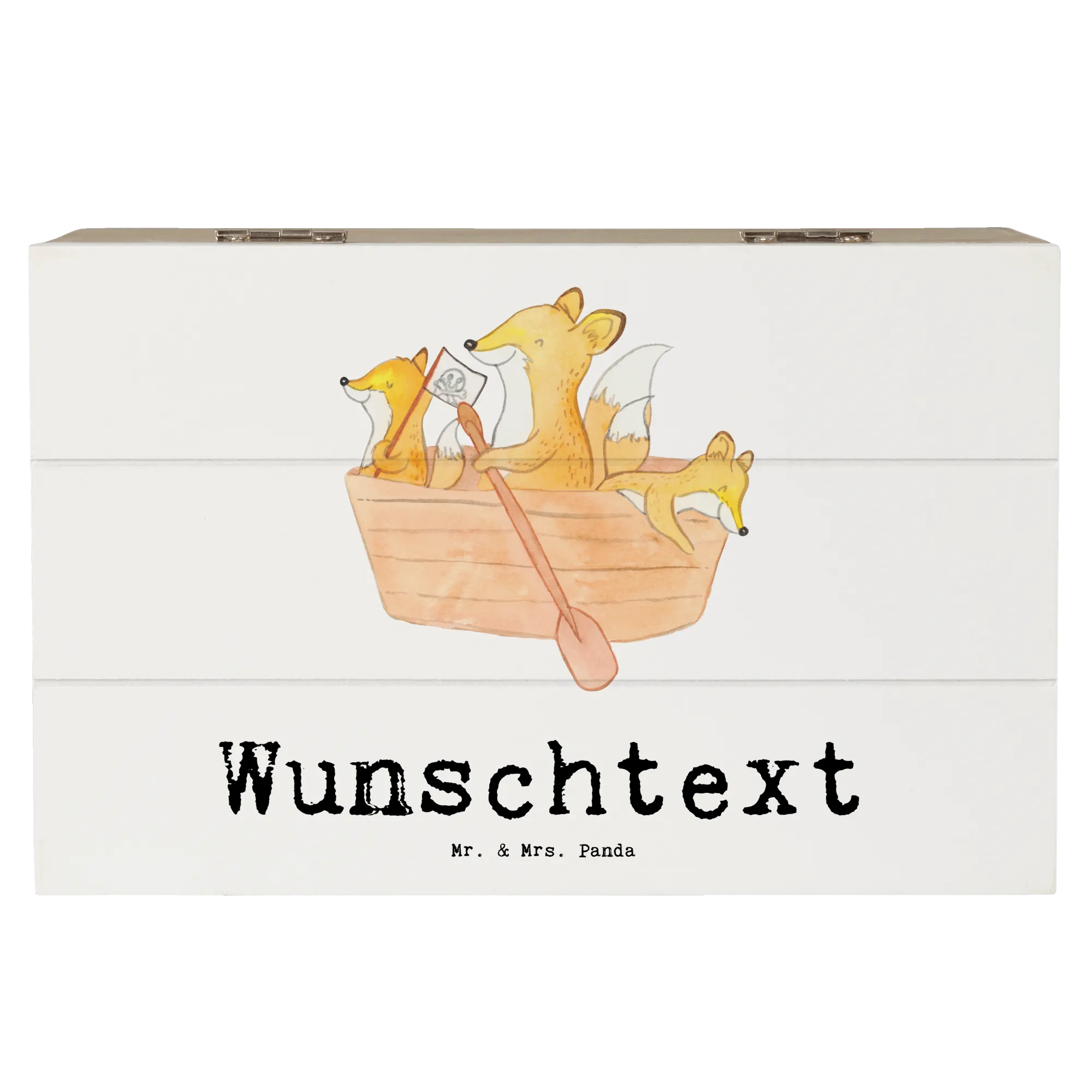 Personalised wooden chest Fox Canoeing - 22 x 15 cm - White