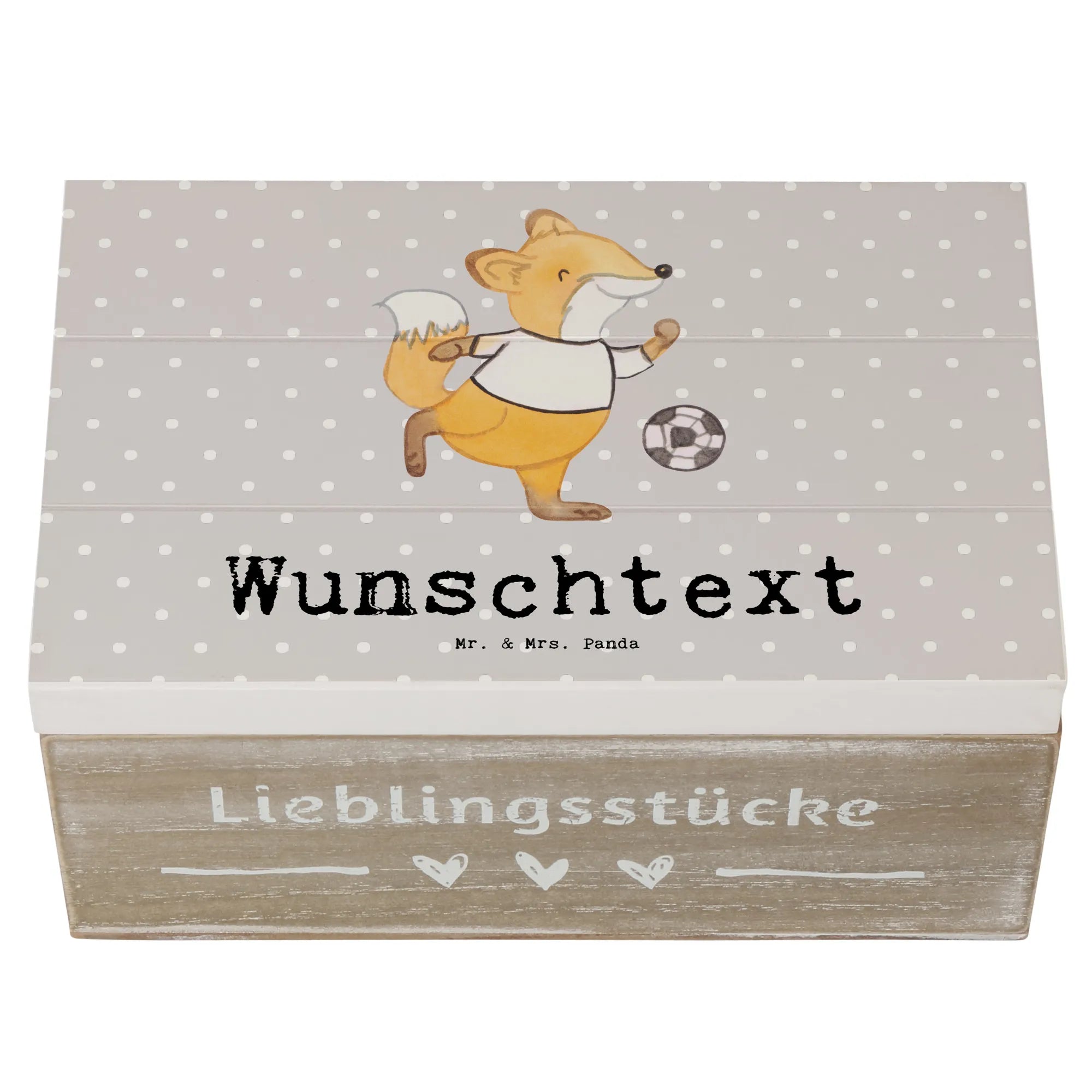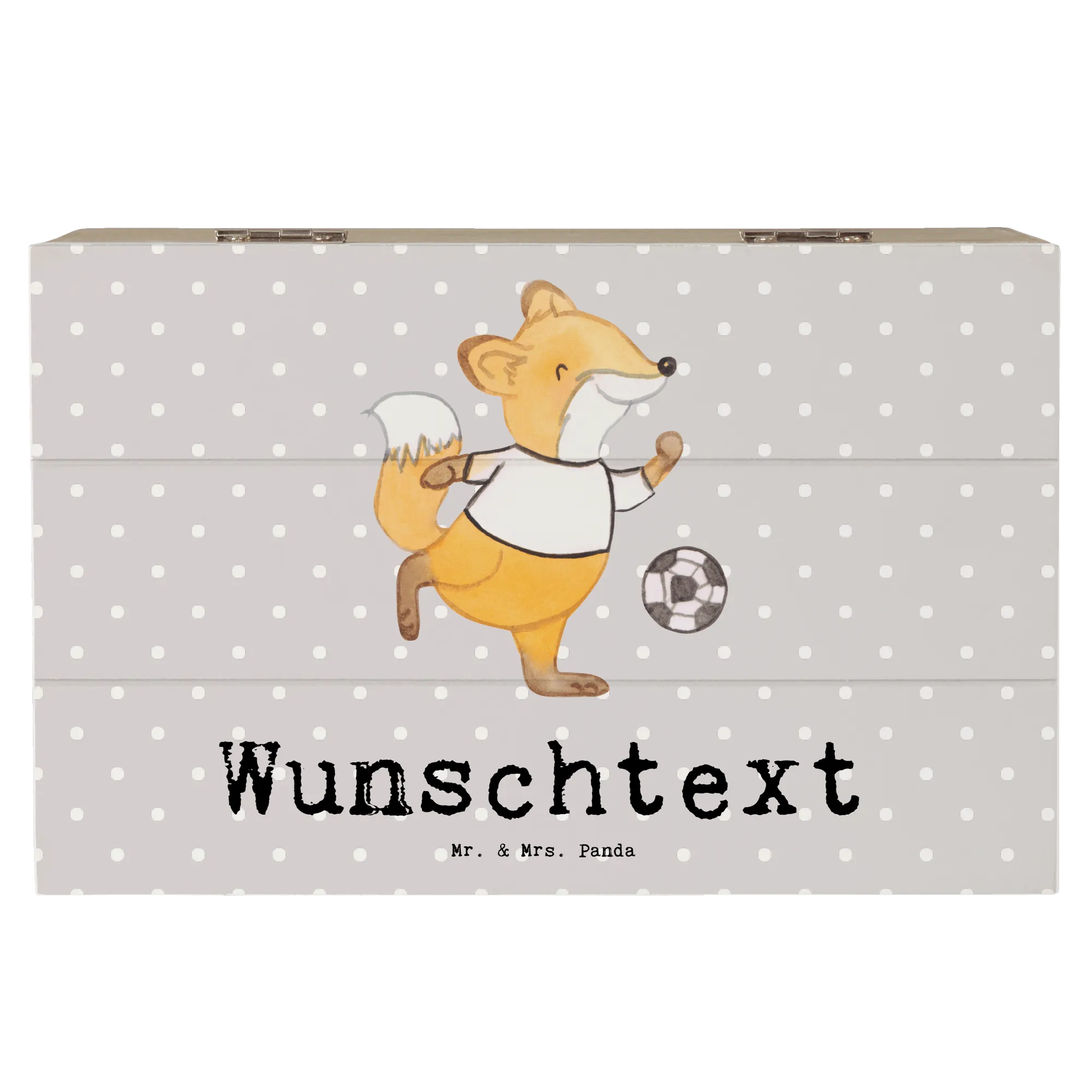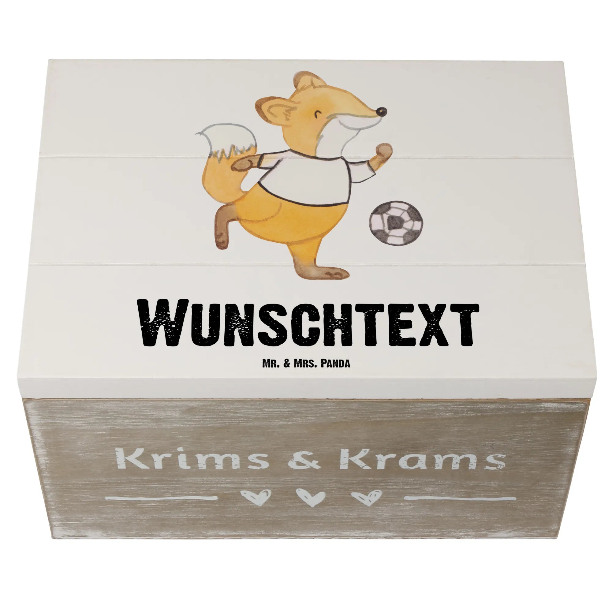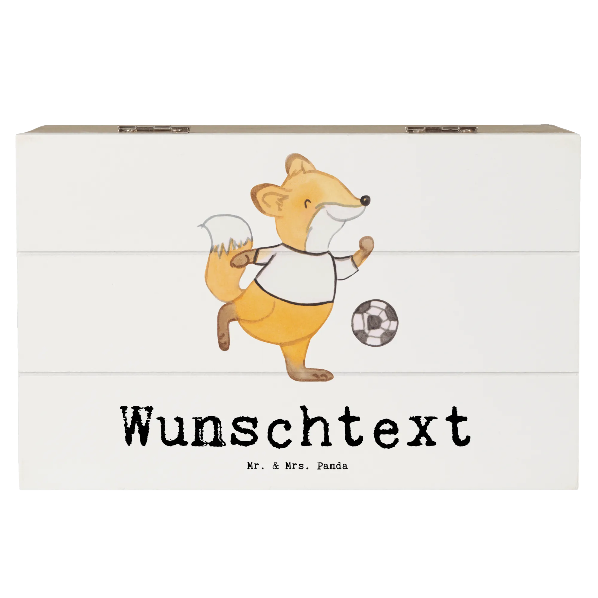 Personalised wooden chest Fox play soccer - 22 x 15 cm - White
