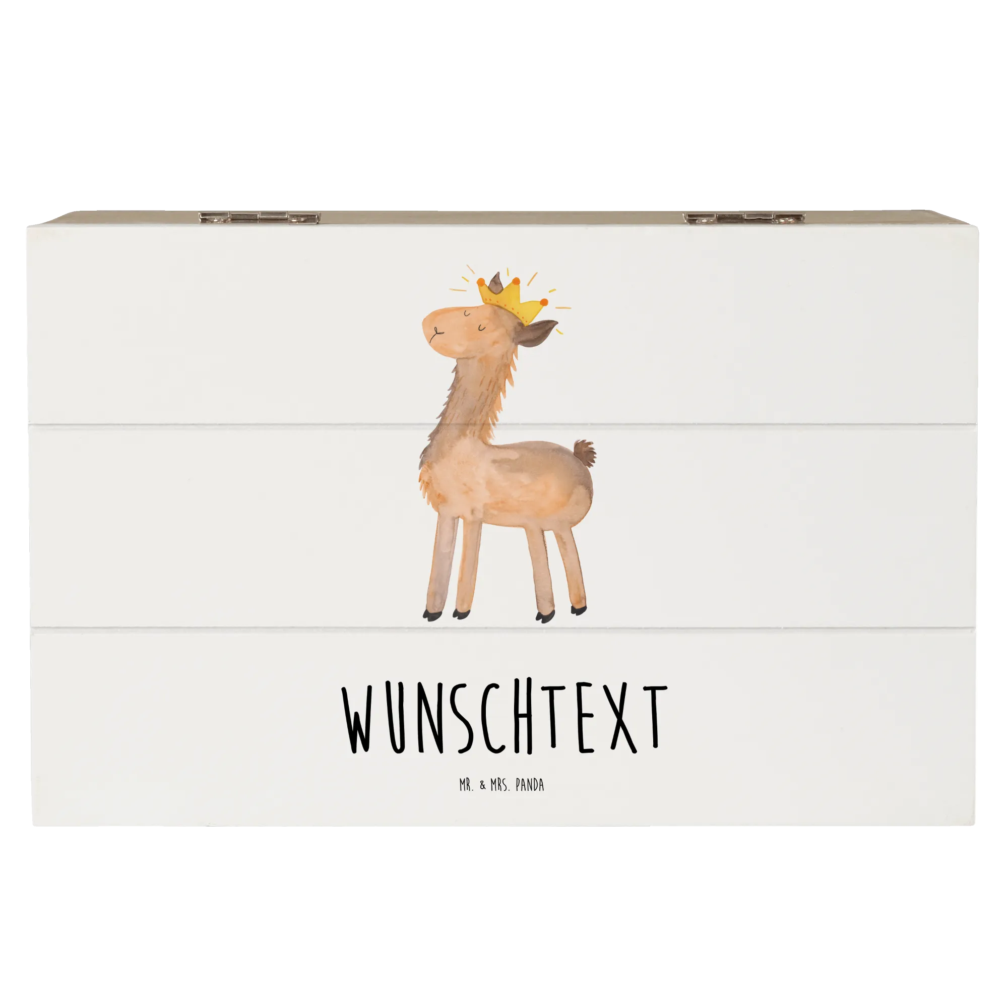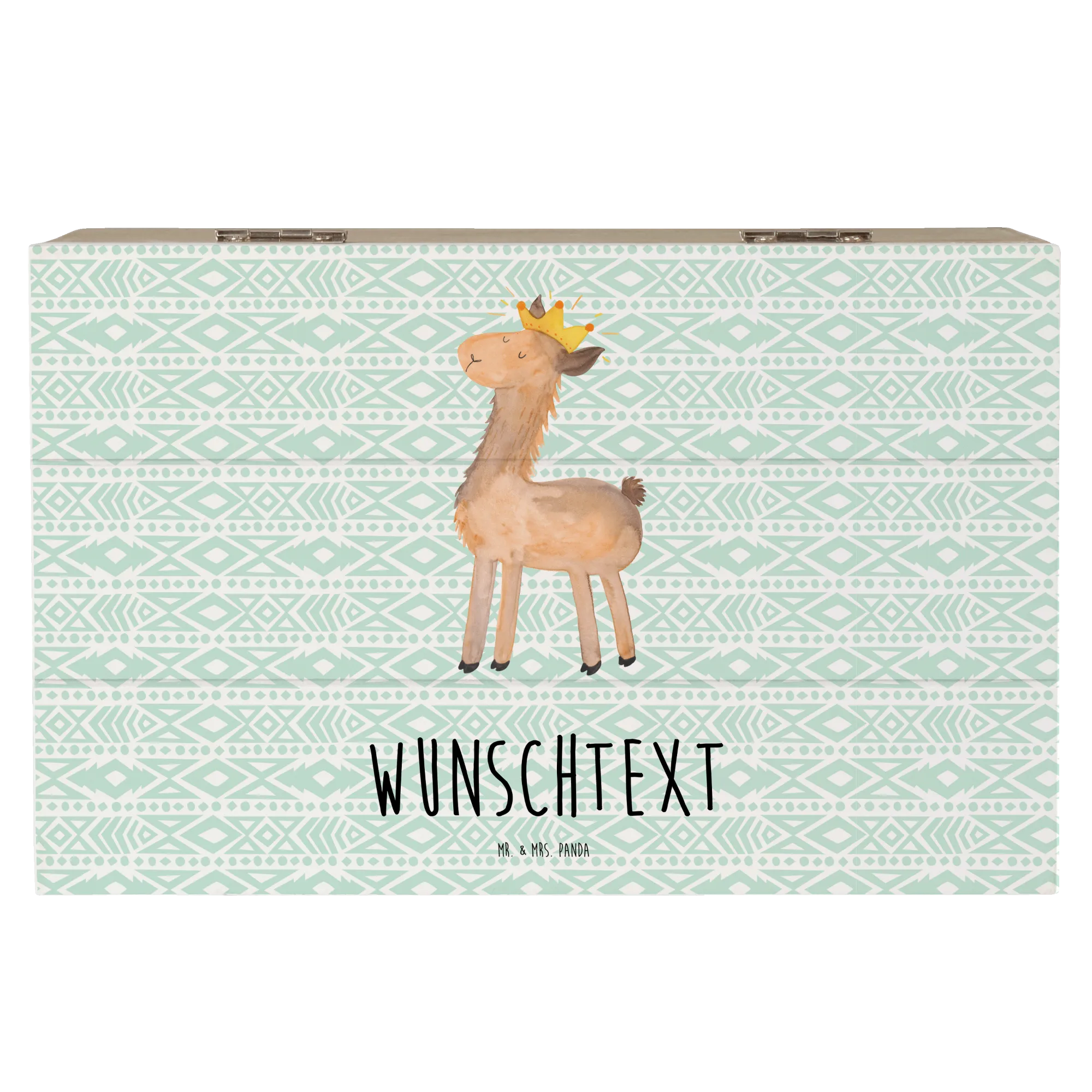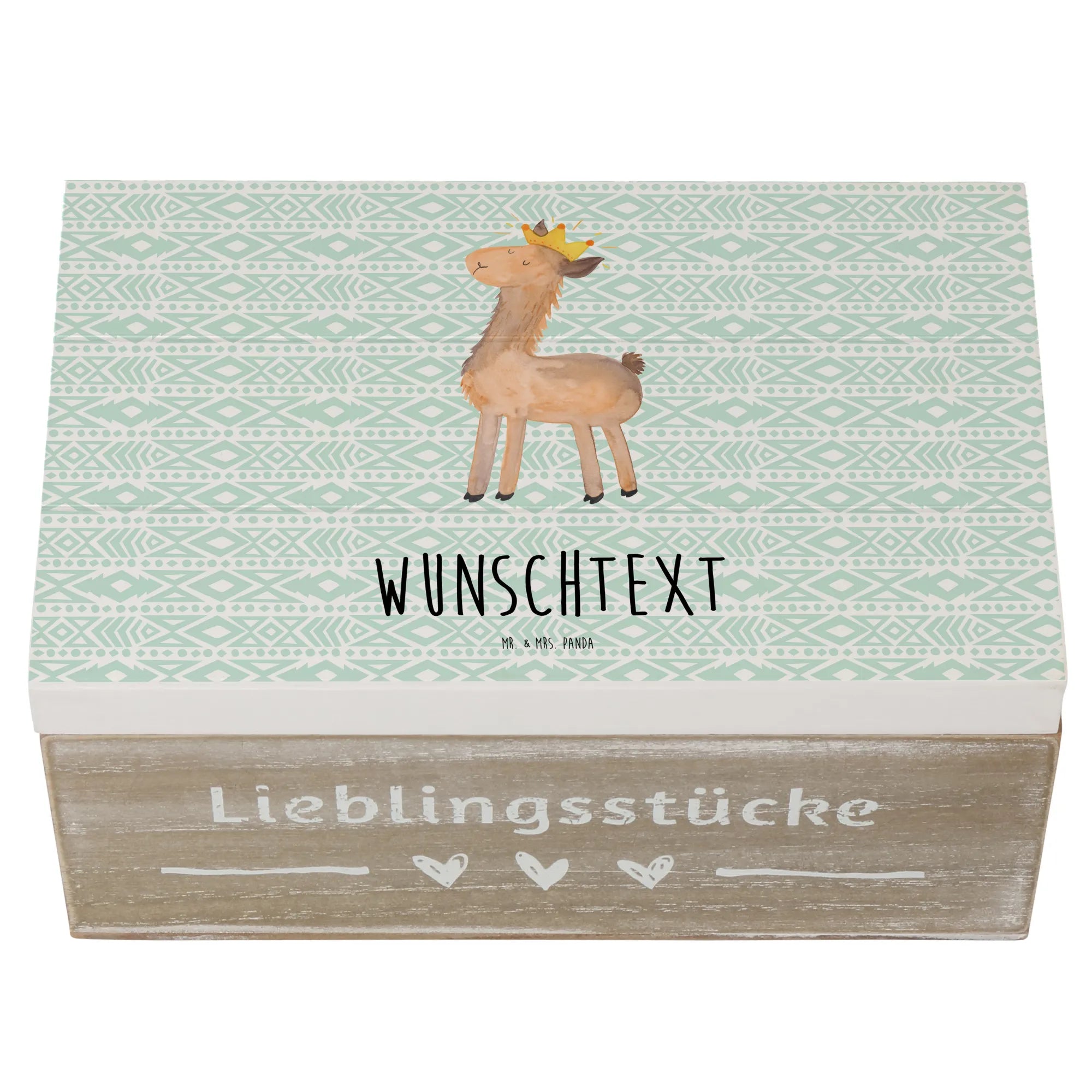 Personalised wooden chest lama king - 22 x 15 cm - Aztec Blue