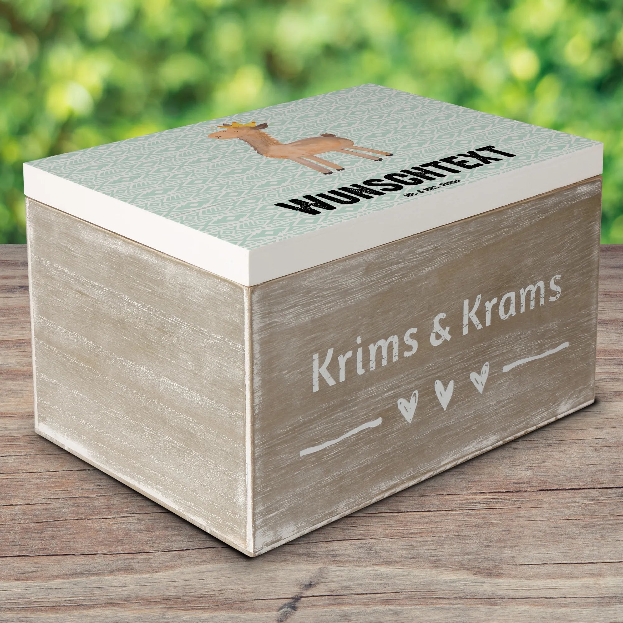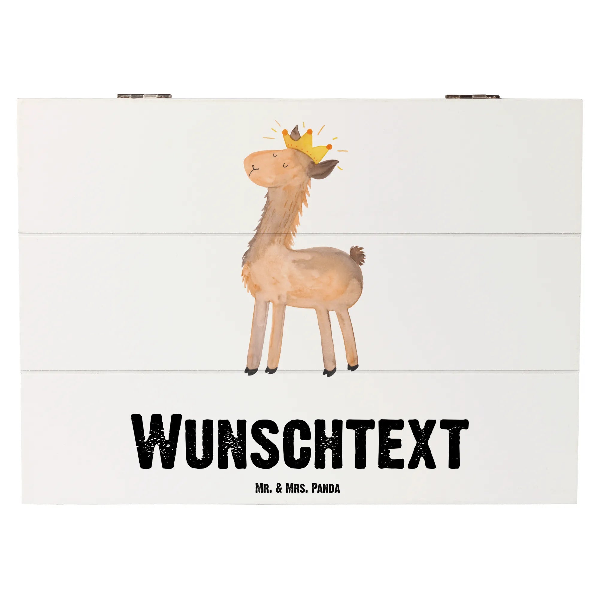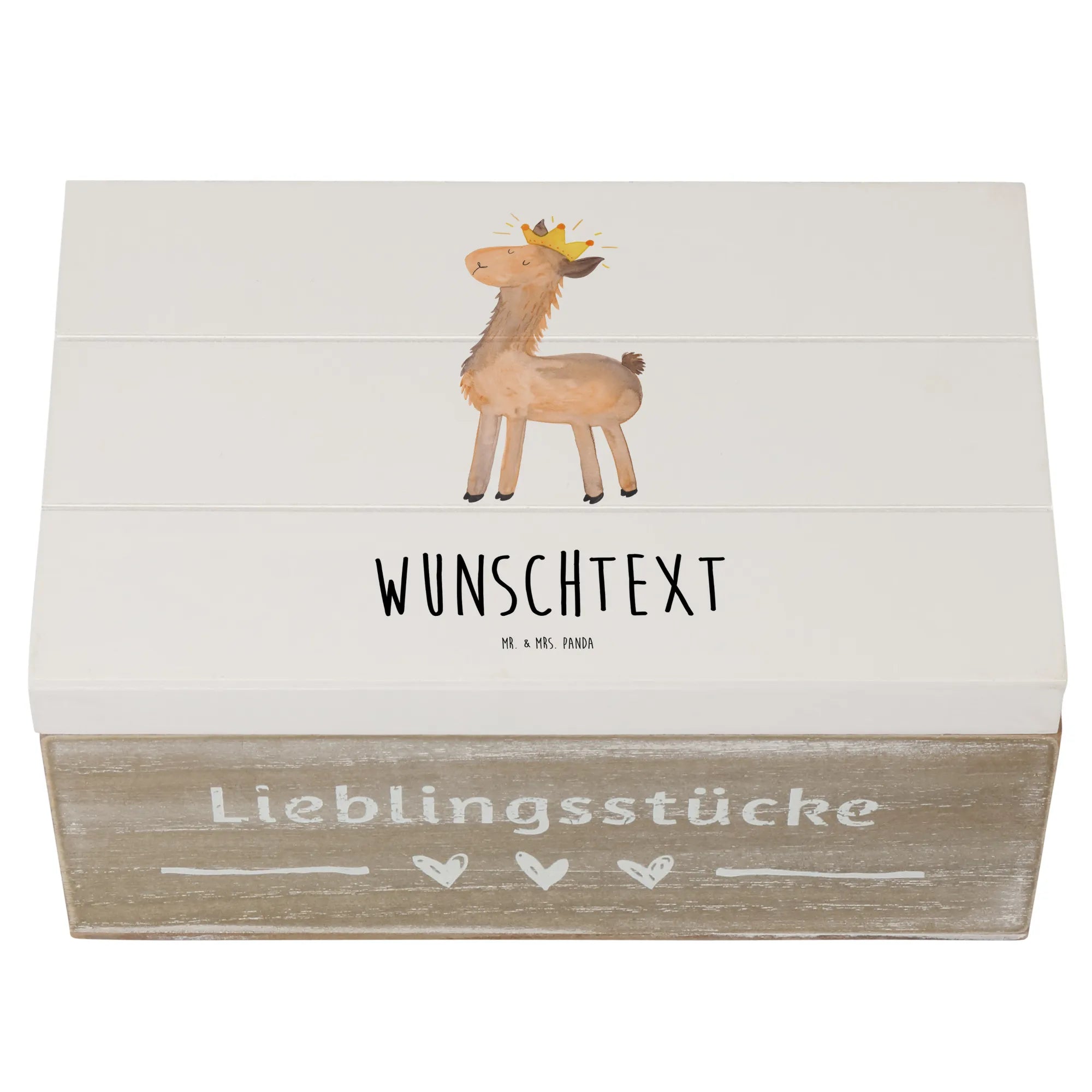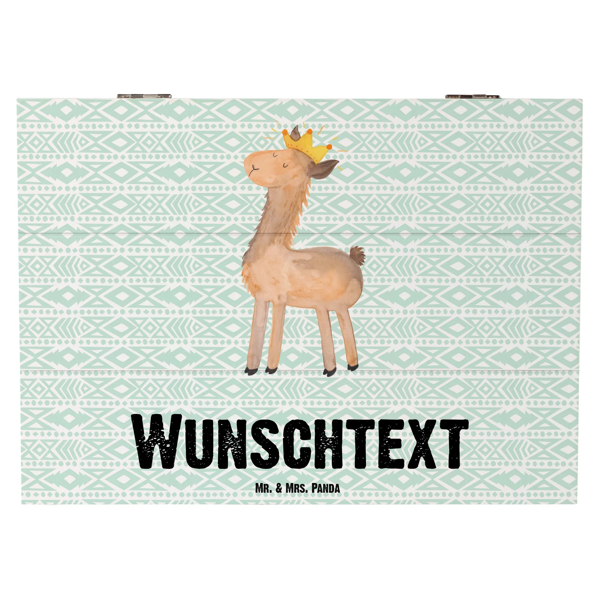 Personalised wooden chest lama king - 22 x 15 cm - Aztec Blue