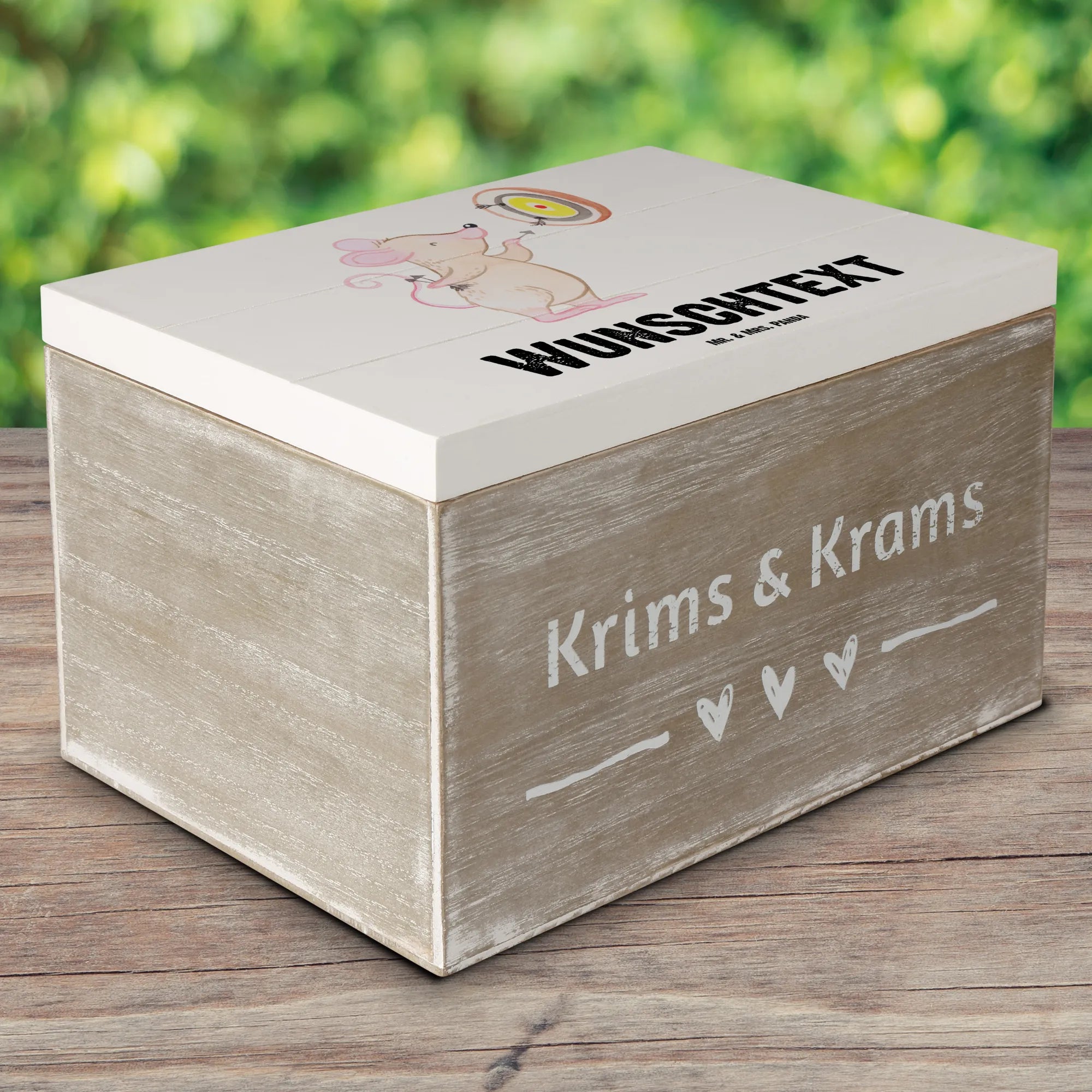 Personalised wooden chest Mouse play darts - 22 x 15 cm - White