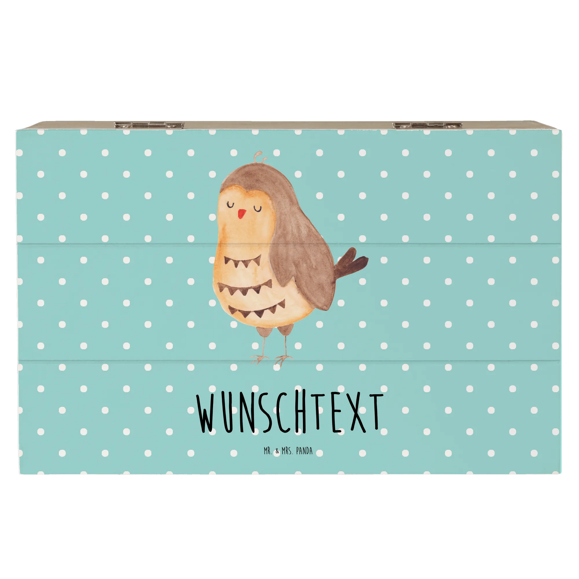 Personalised wooden chest Owl Satisfied - 22 x 15 cm - Turquoise Pastel