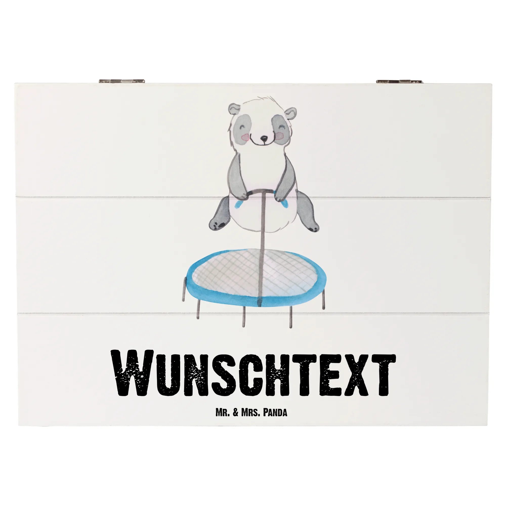Personalised wooden chest panda trampoline jumping - 22 x 15 cm - White