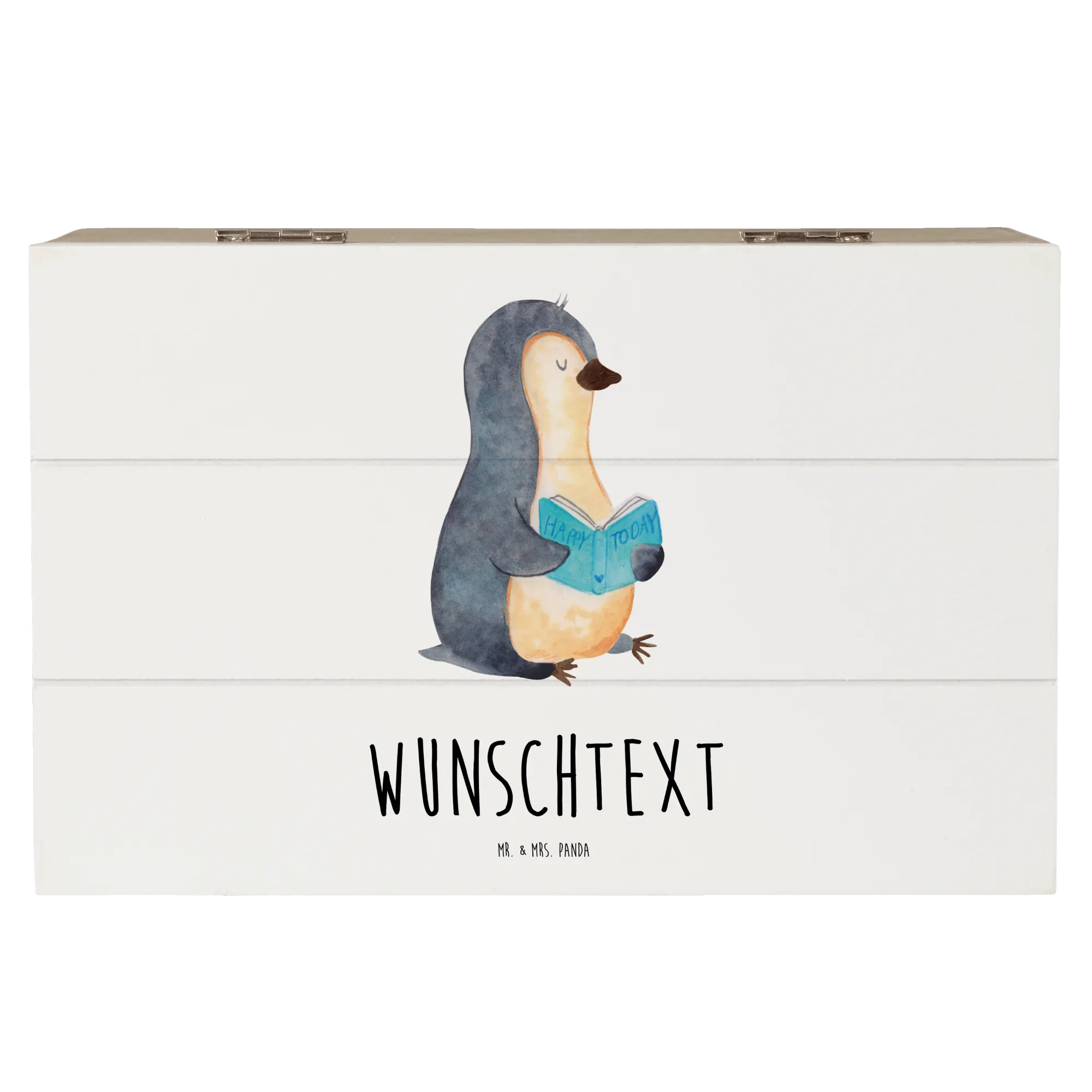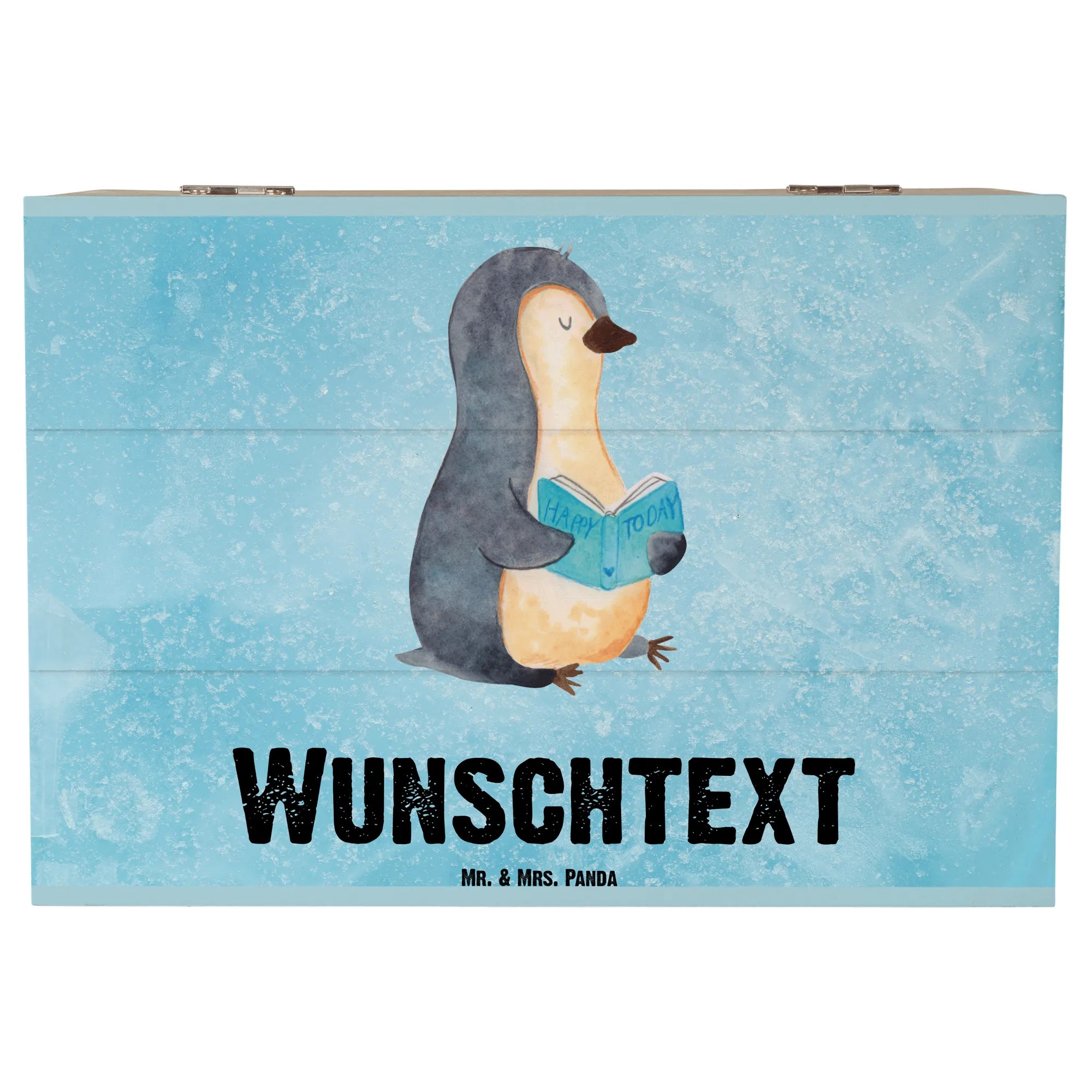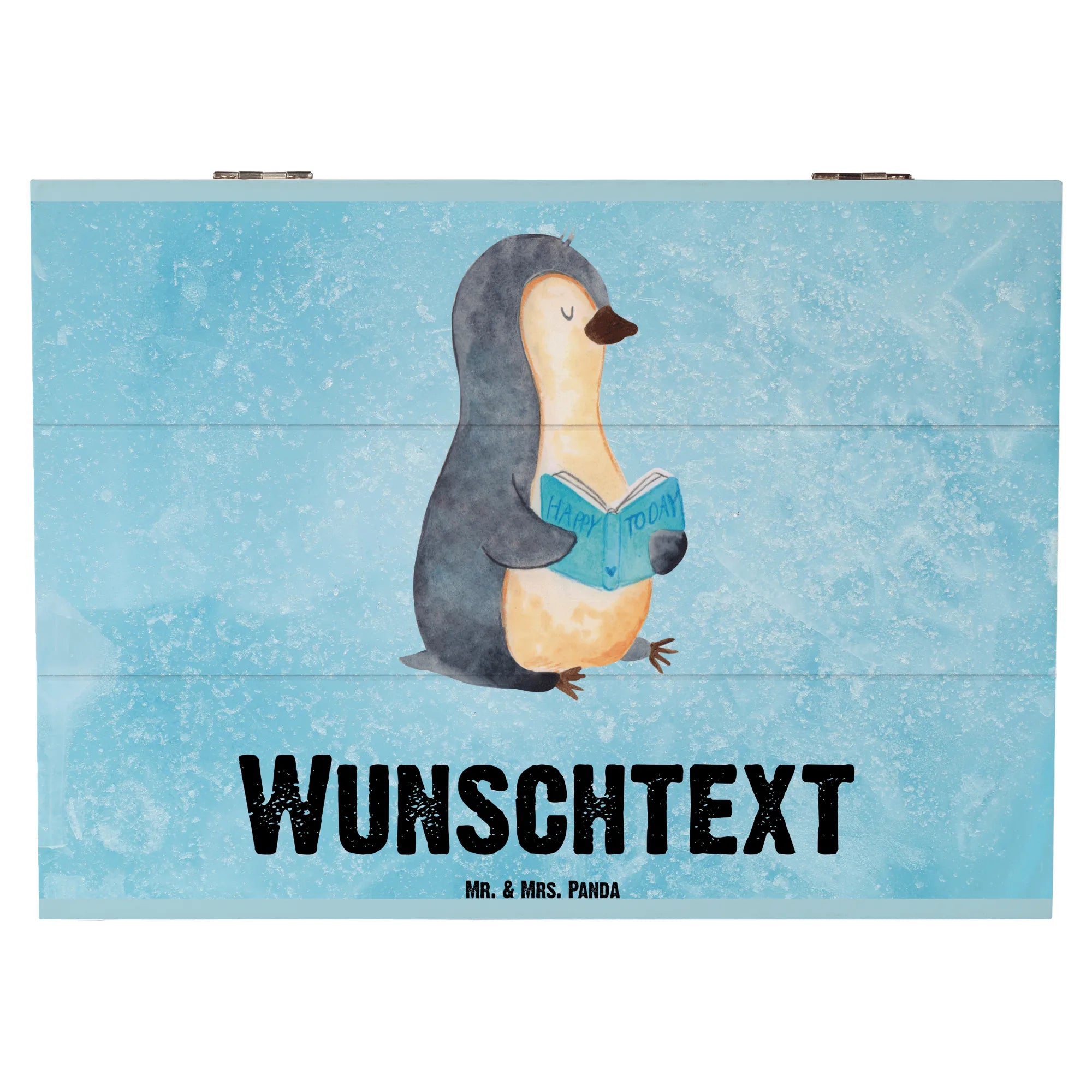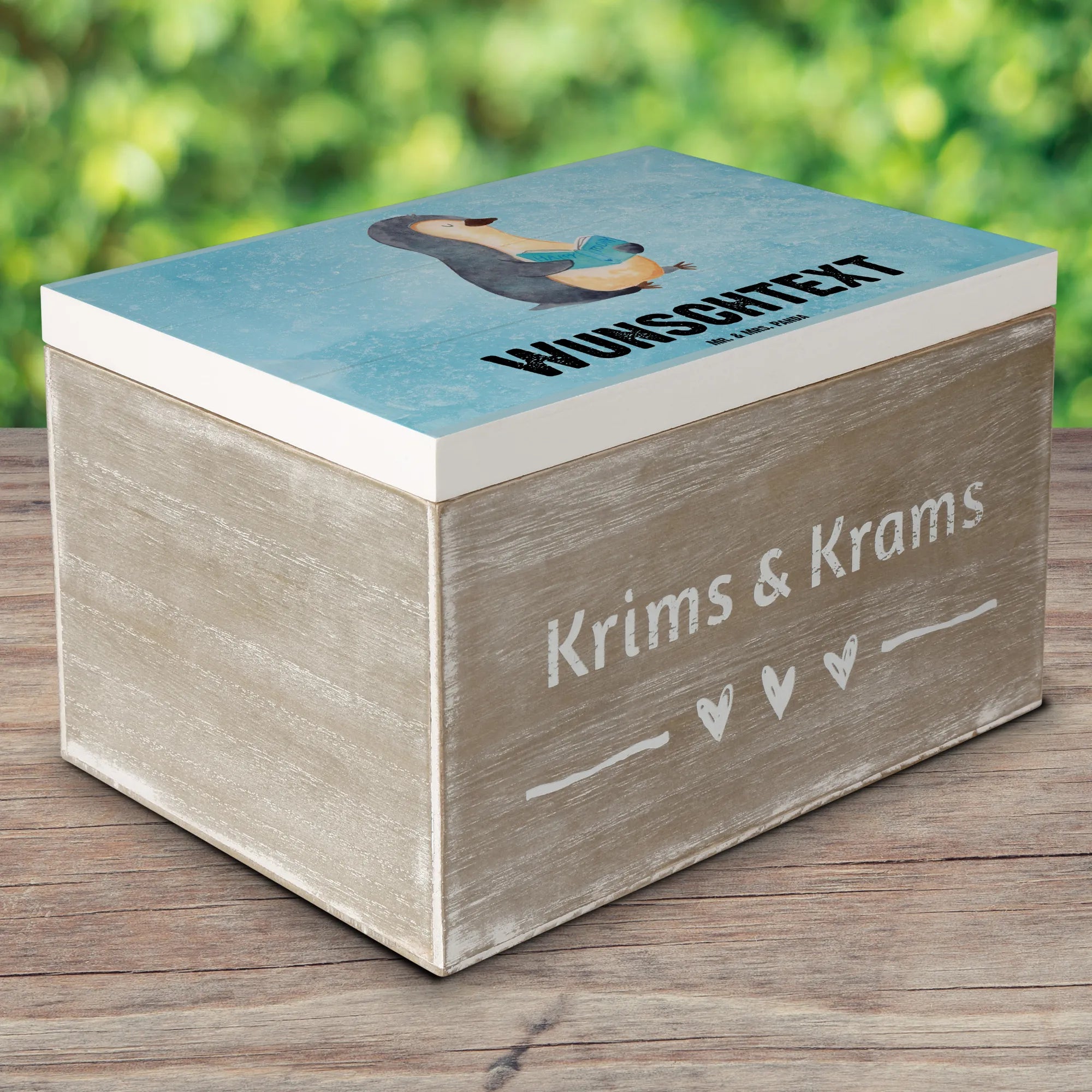 Personalised wooden chest Penguin A book - 22 x 15 cm - Ice Blue