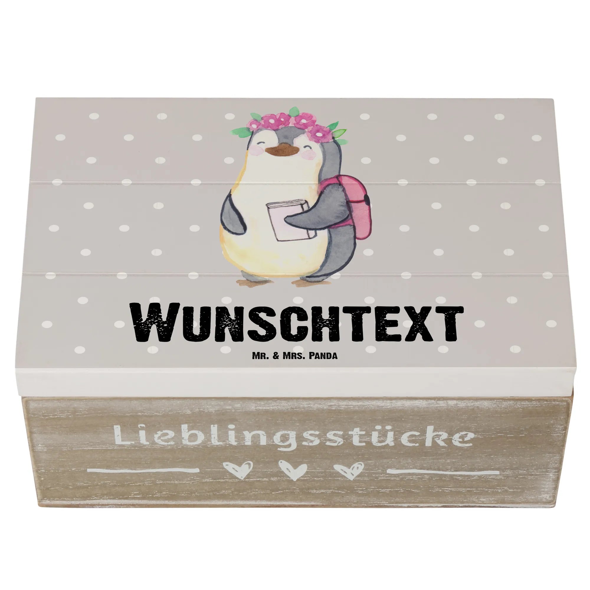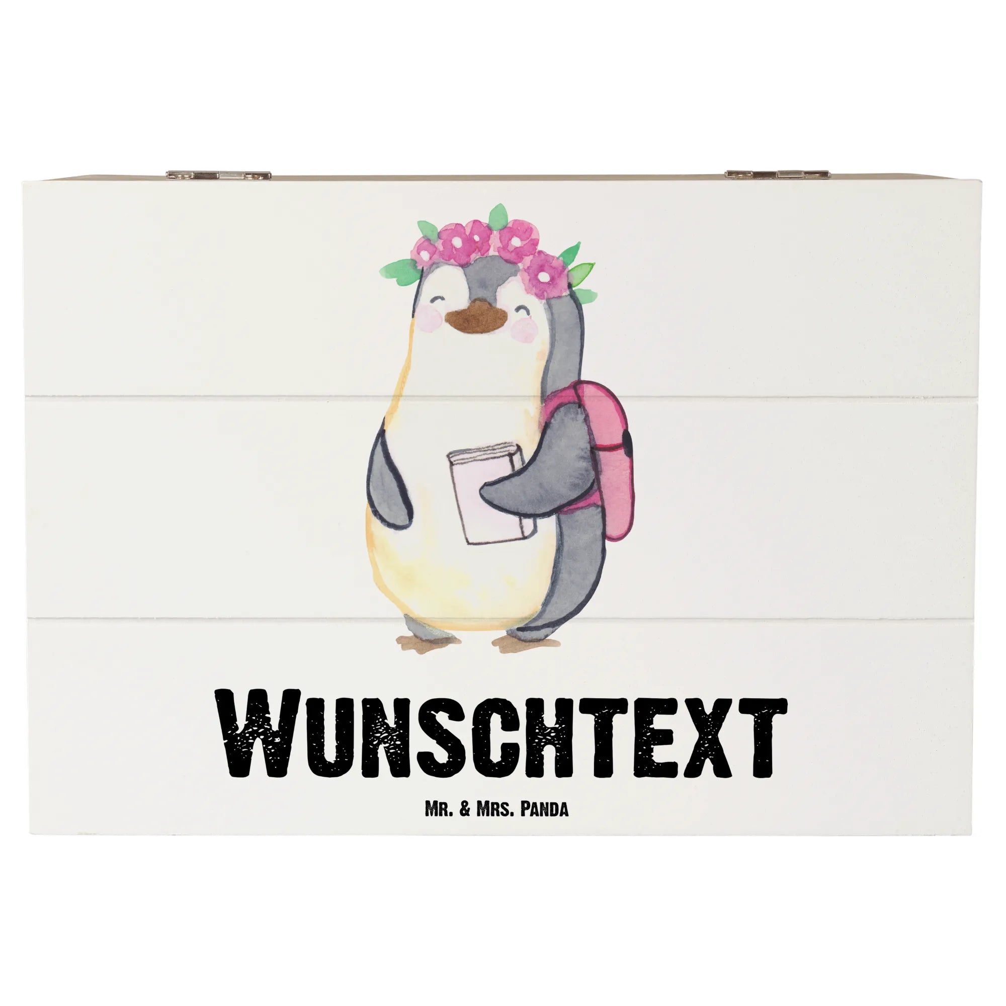 Personalised wooden chest penguin Best granddaughter in the world - 22 x 15 cm - White