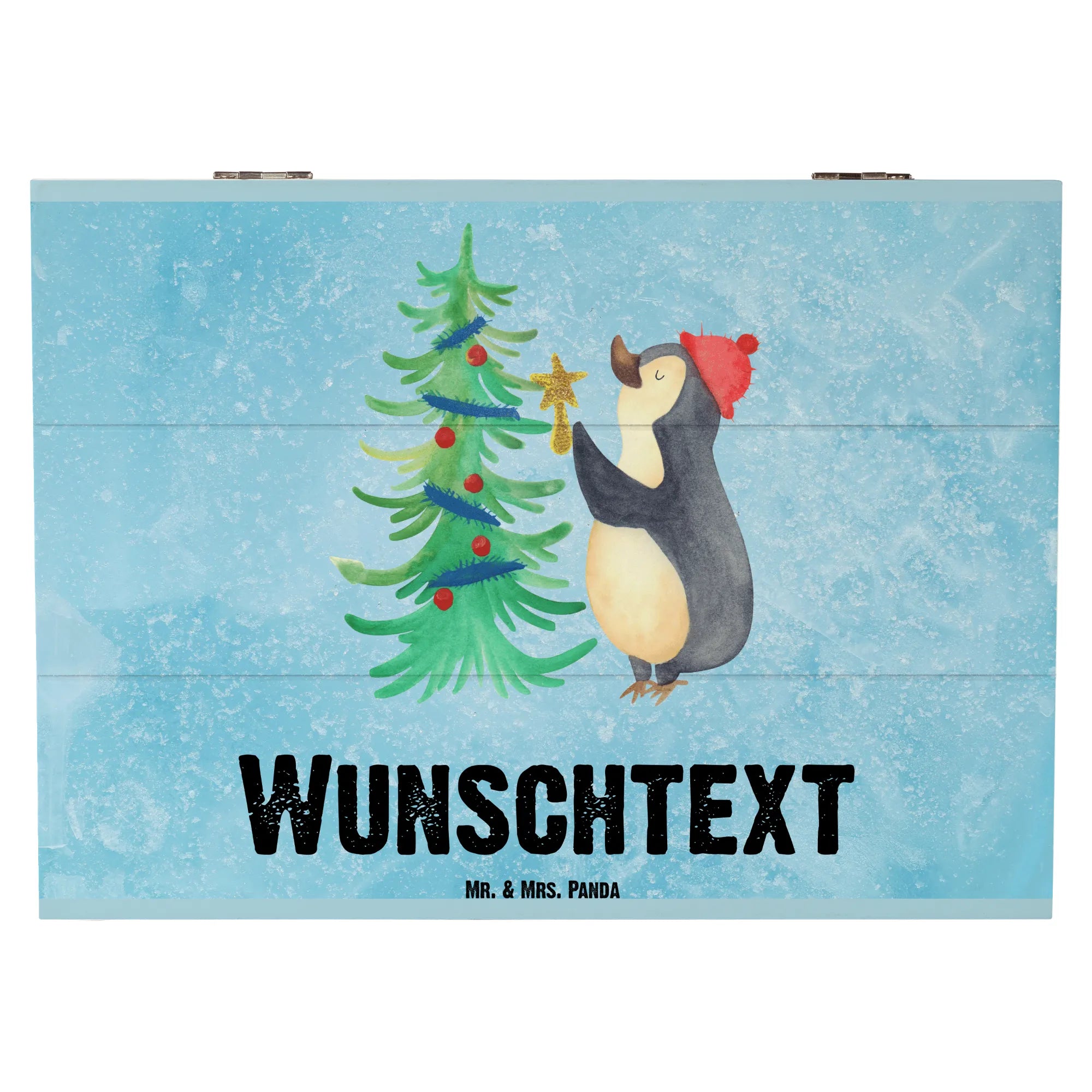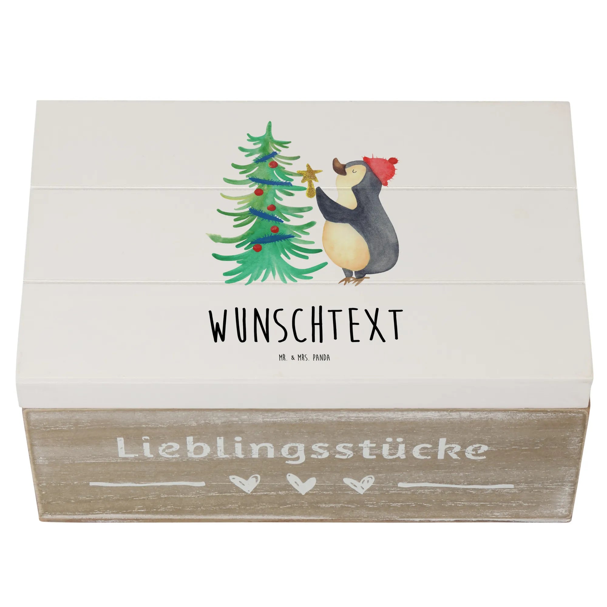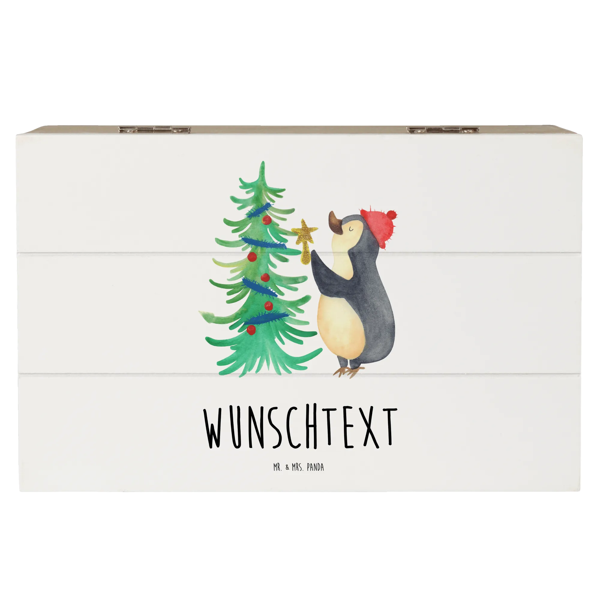 Personalised wooden chest penguin Christmas tree - 22 x 15 cm - White
