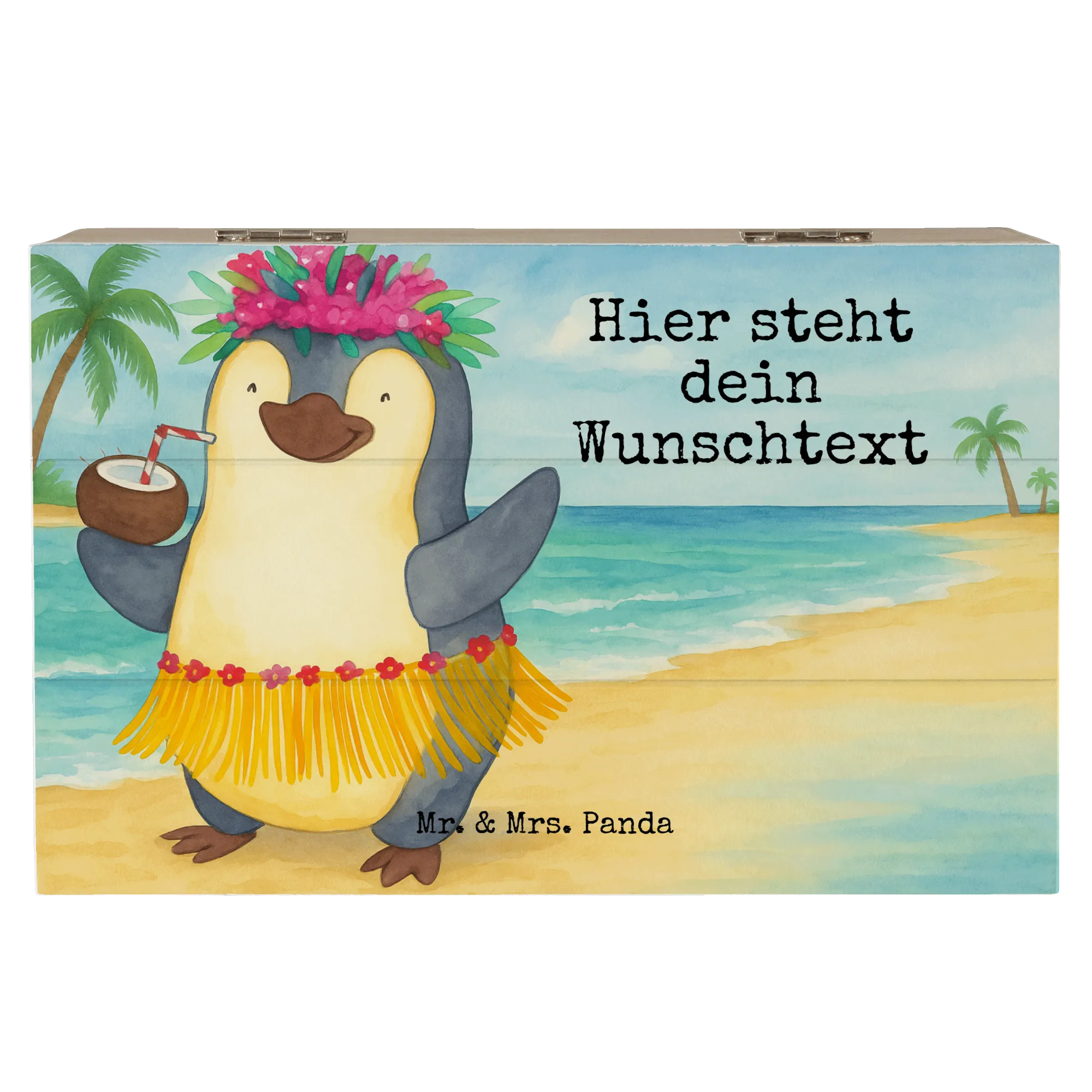 Personalised wooden chest Penguin coconut Design - 22 x 15 cm