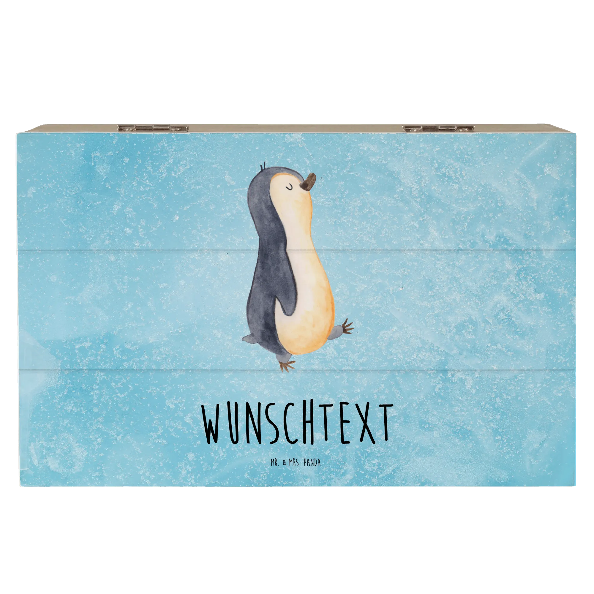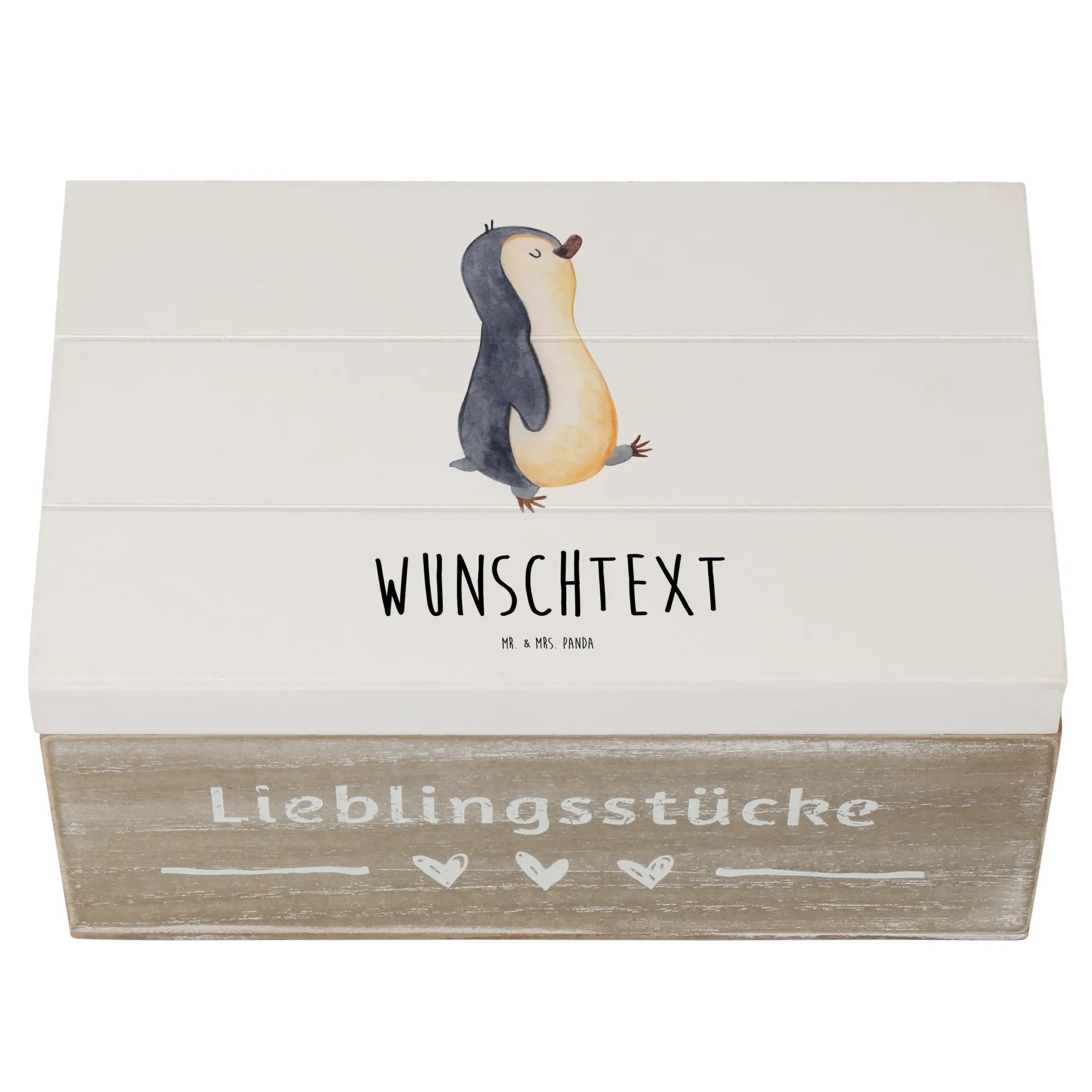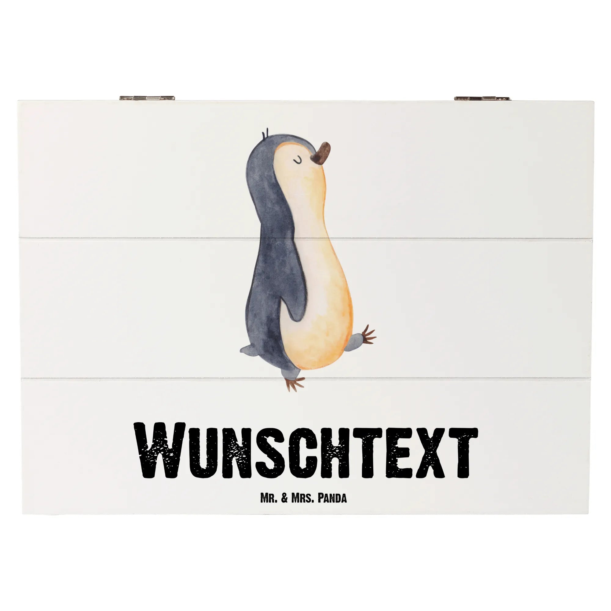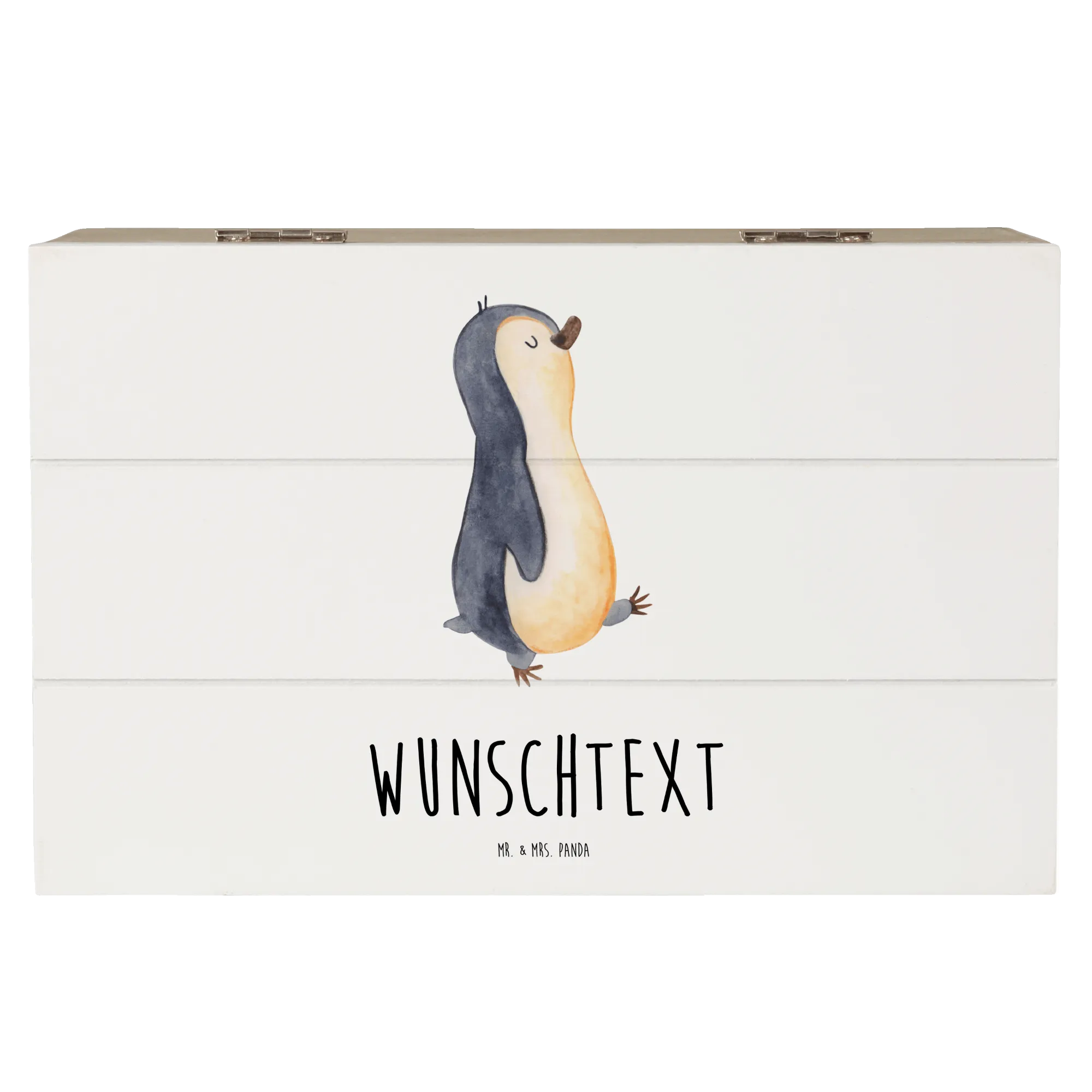 Personalised wooden chest Penguin march - 22 x 15 cm - White