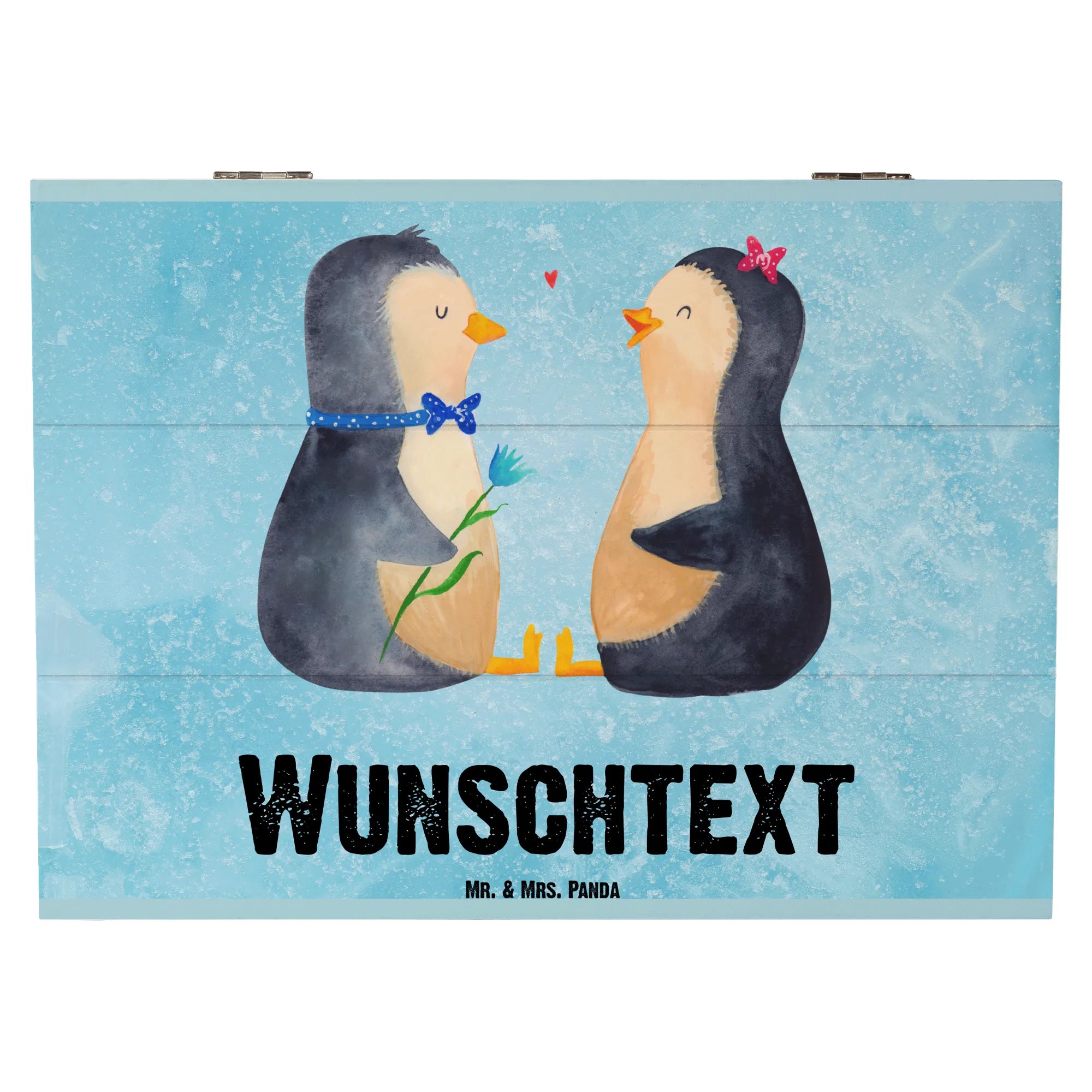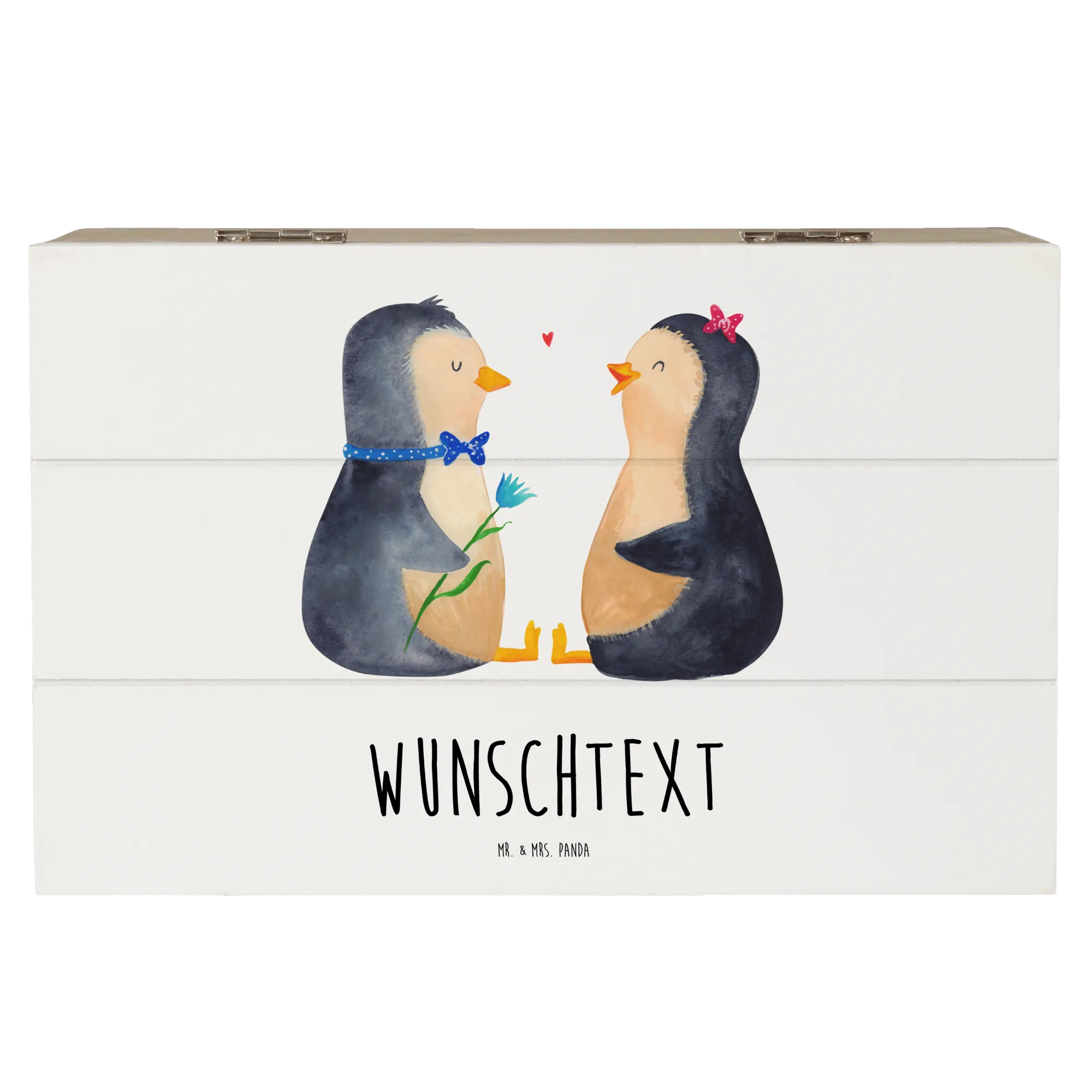 Personalised wooden chest Penguin pair - 22 x 15 cm - White