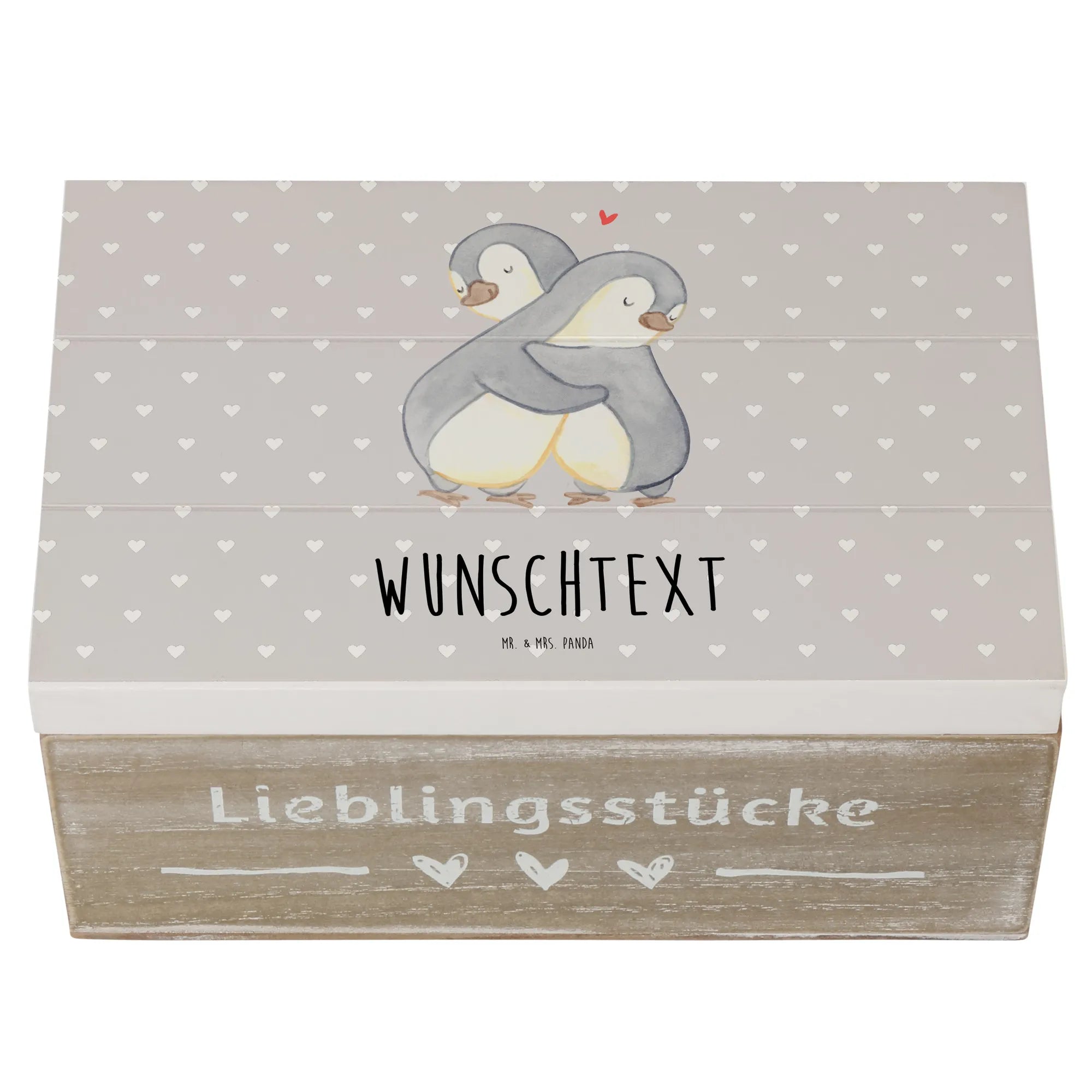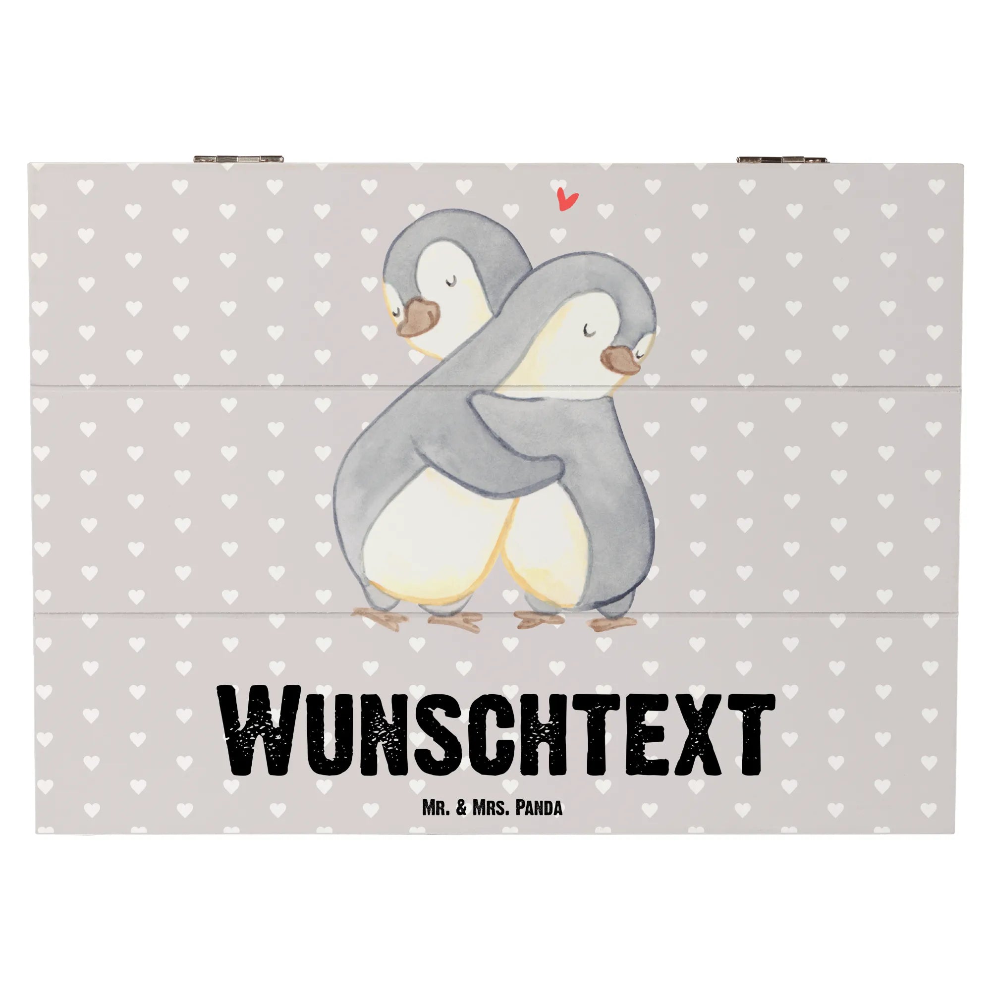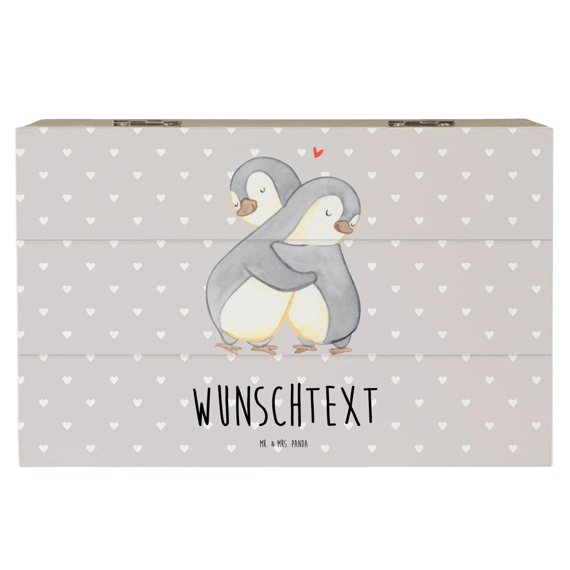 Personalised wooden chest penguins Cuddle - 22 x 15 cm - Grey Pastel