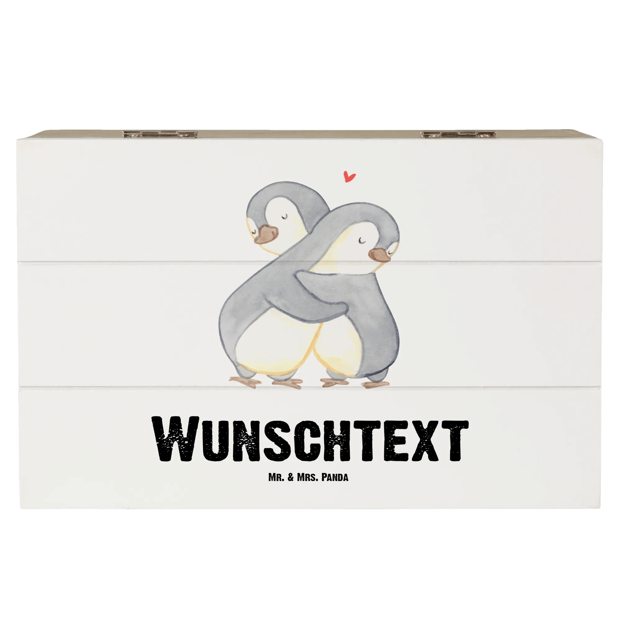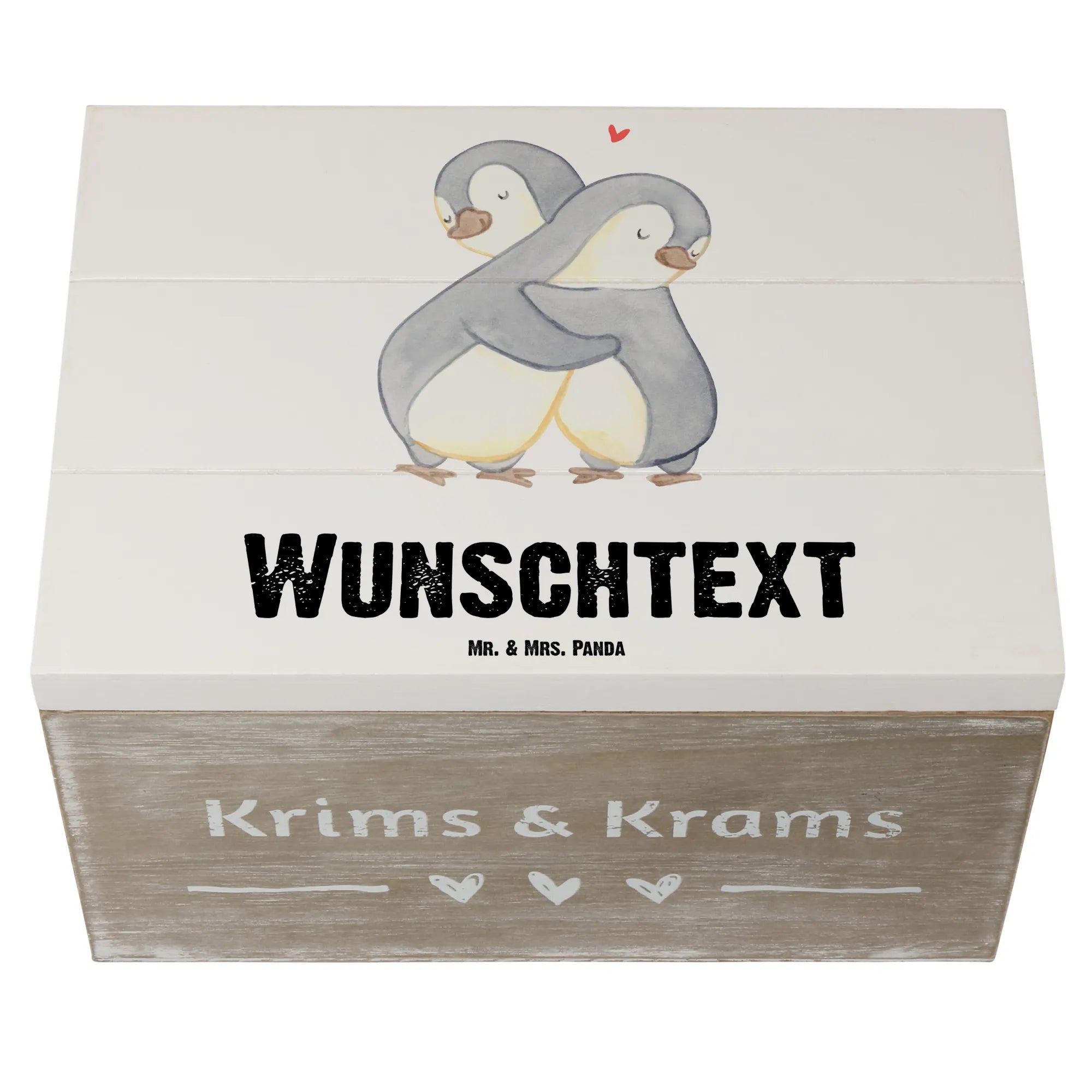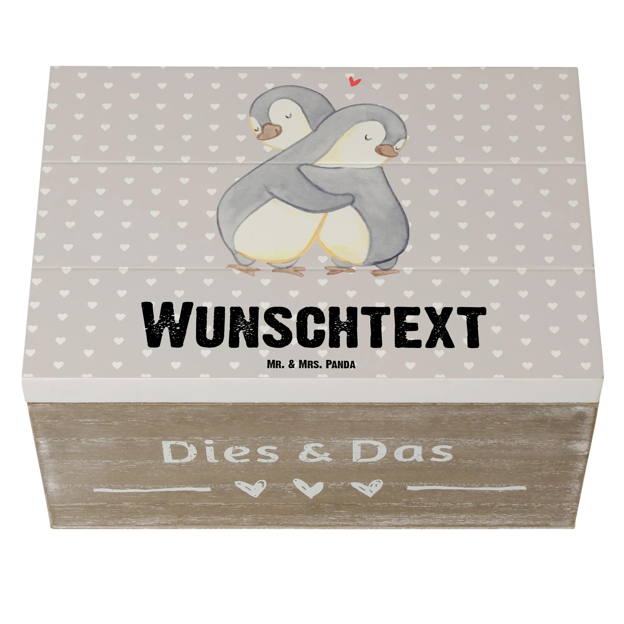 Personalised wooden chest penguins Cuddle - 22 x 15 cm - Grey Pastel