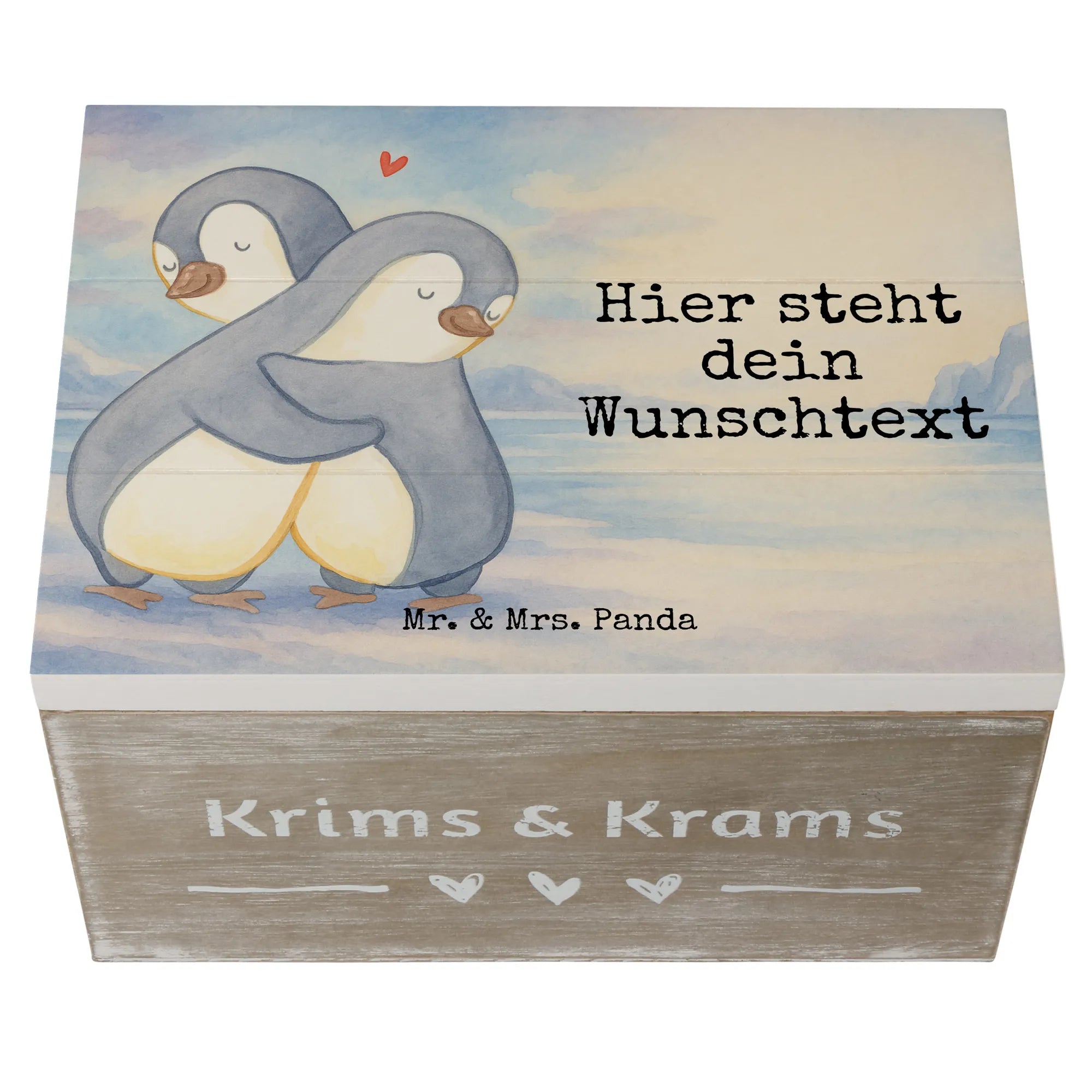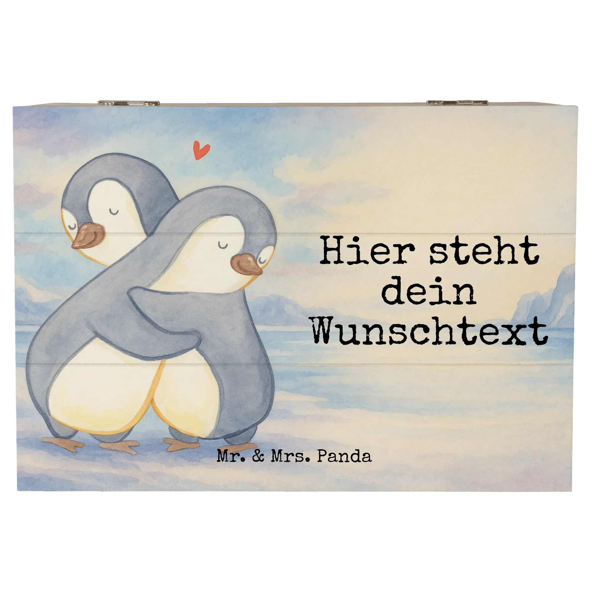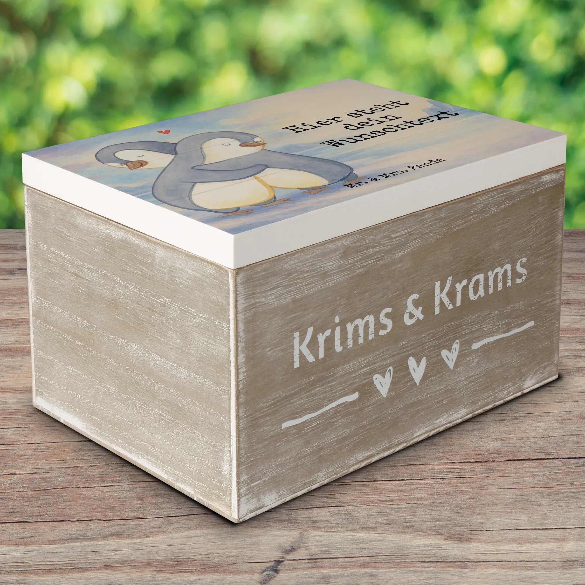 Personalised wooden chest penguins Cuddle Design - 22 x 15 cm
