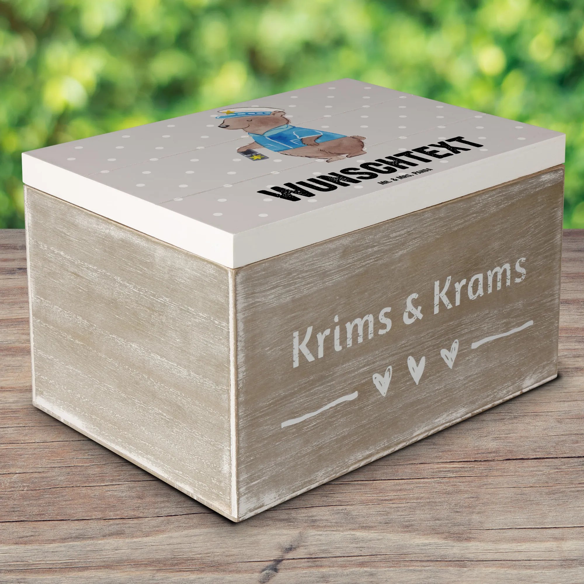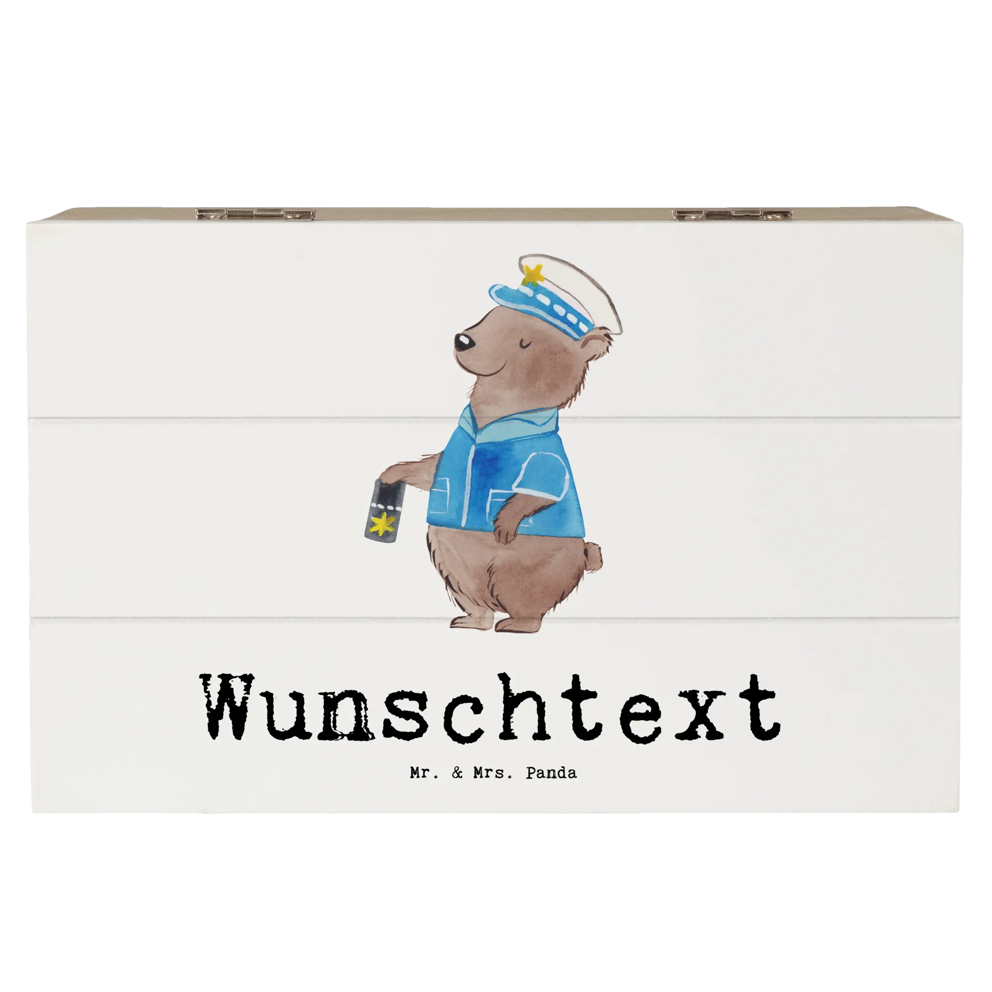 Personalised wooden chest Police officer Heart - 22 x 15 cm - White