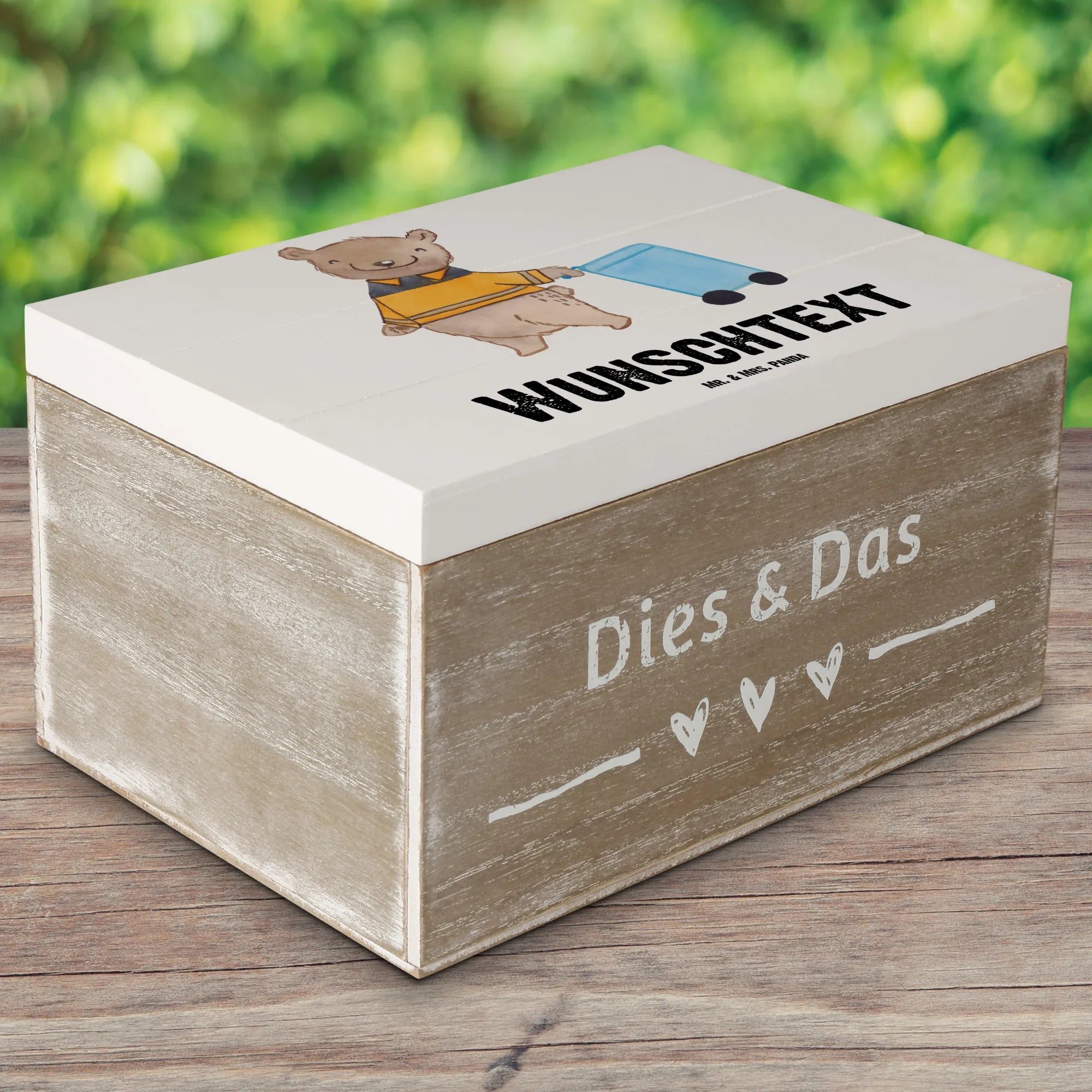 Personalised wooden chest Waste collector Heart - 22 x 15 cm - White