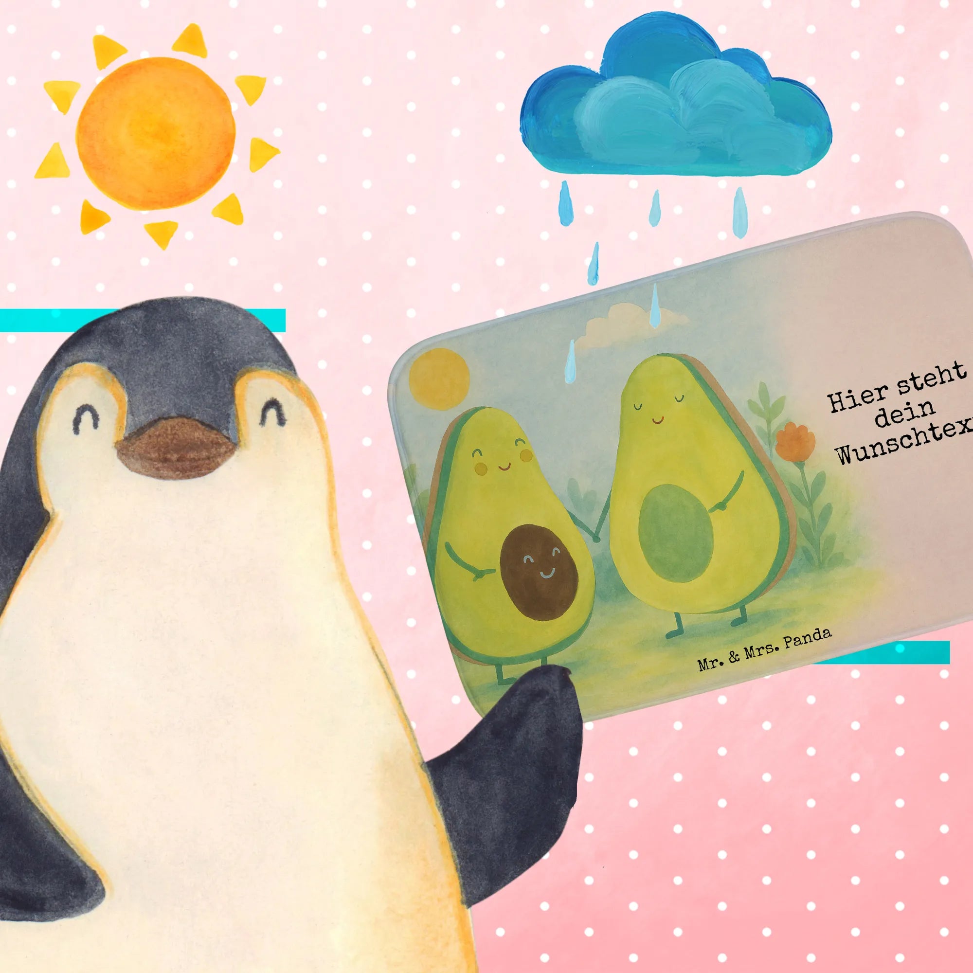 Personalisierte Badematte Avocado Pärchen Design – Mr. & Mrs. Panda