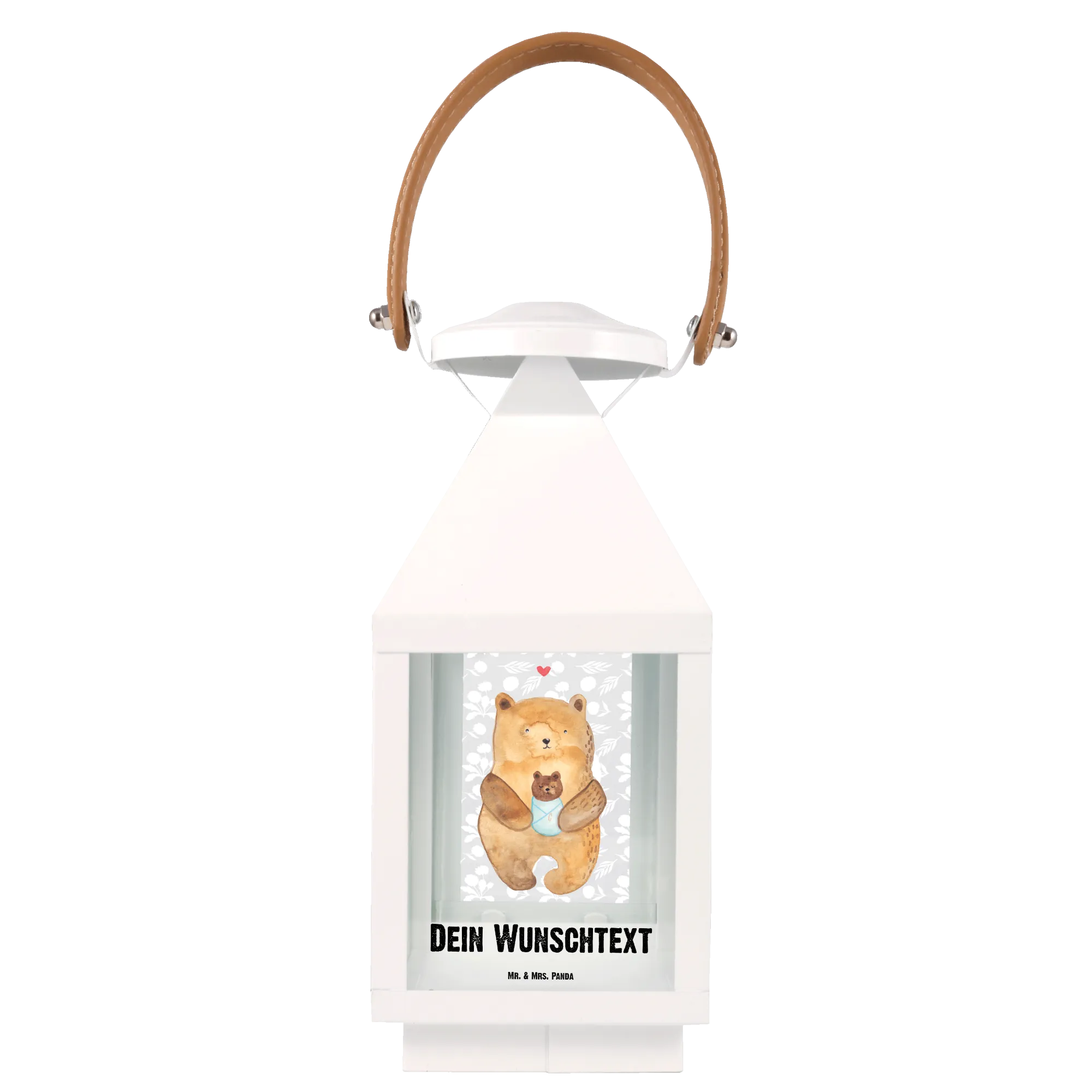 Diese Laterne mit dem süßen Motiv eines Bären, der sein Baby hält, ist nicht nur ein echter Hingucker für Deinen Garten, sondern auch für Deinen Balkon oder im Wohnzimmer. Die Laterne ist persönlich gestaltbar und kann mit Deinem Wunschnamen oder Wunschtext verziert werden – ein tolles Geschenk zur Taufe, zur Geburt oder auch für den Geburtstag eines Neffen, einer Nichte oder Enkelkindes!