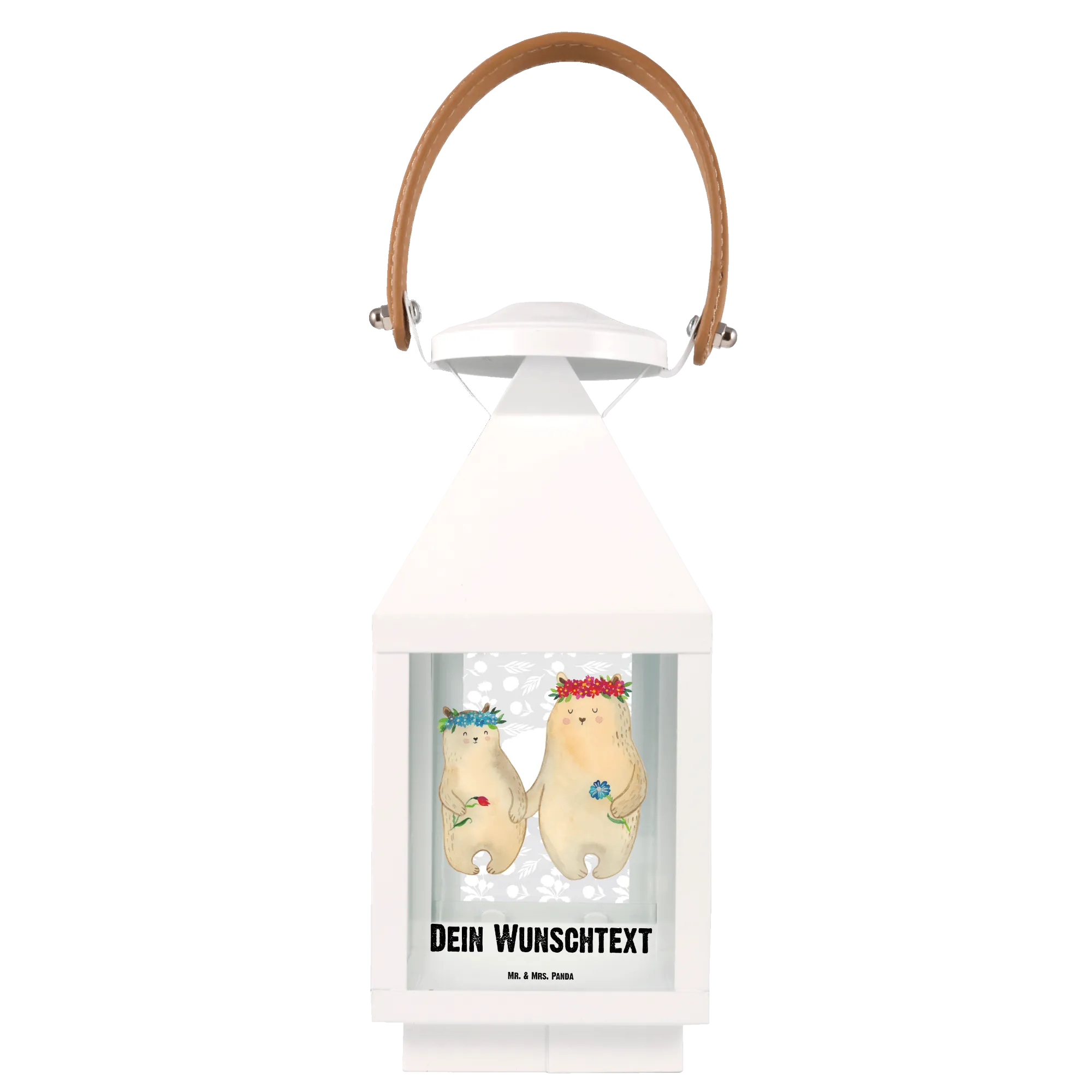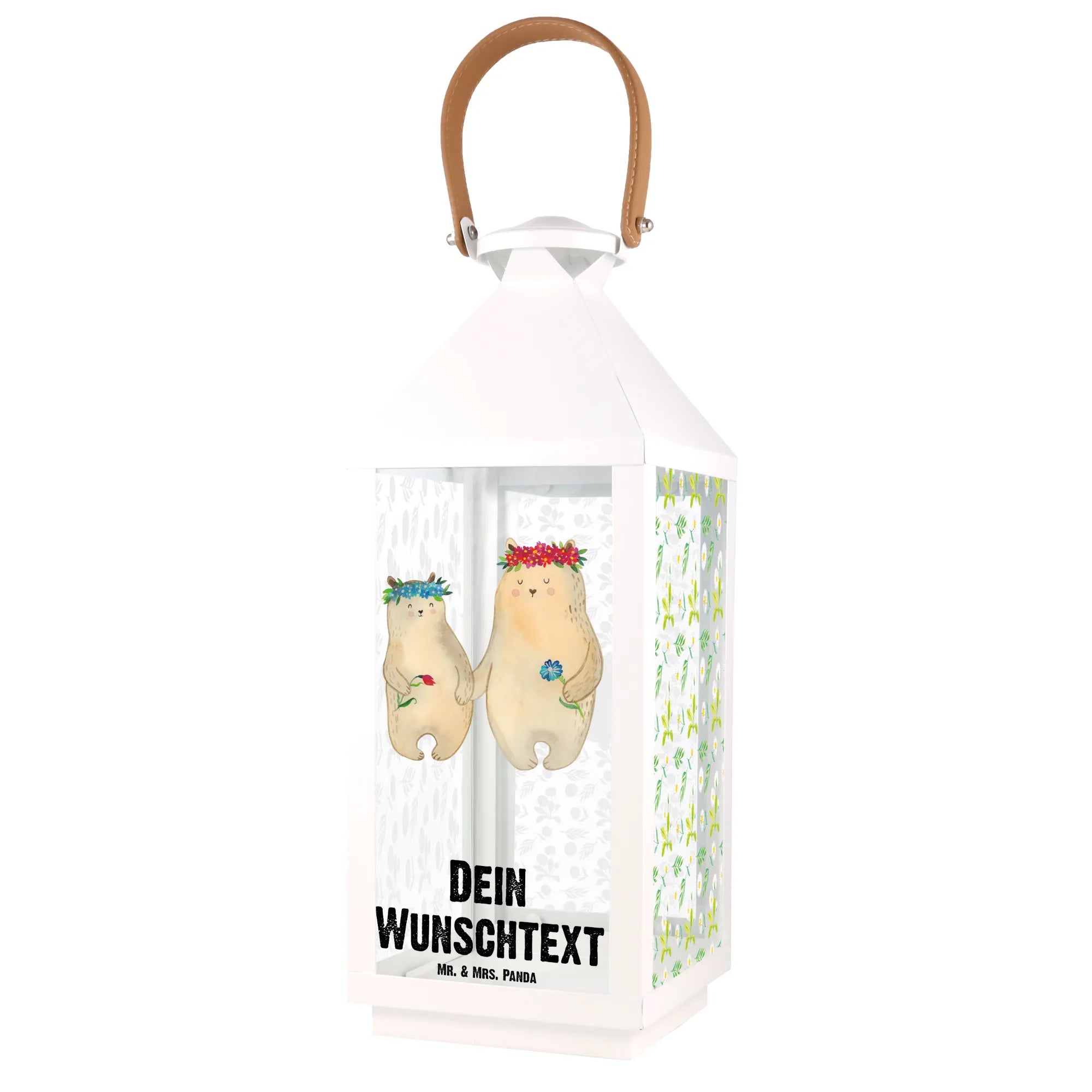 Personalisierte Deko Laterne Bären mit Blumenkranz - XL