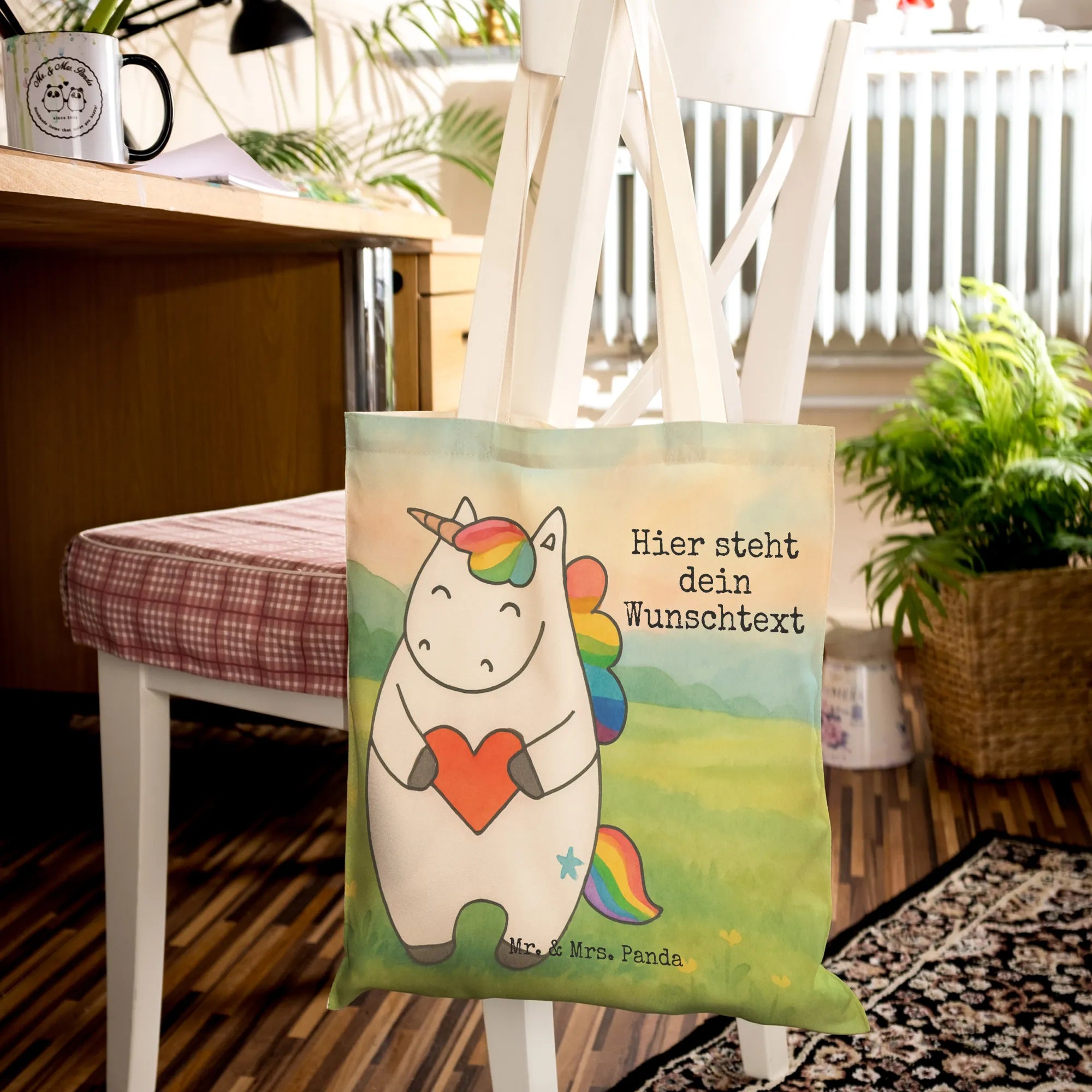 Personalisierte Einkaufstasche Einhorn Herz Design