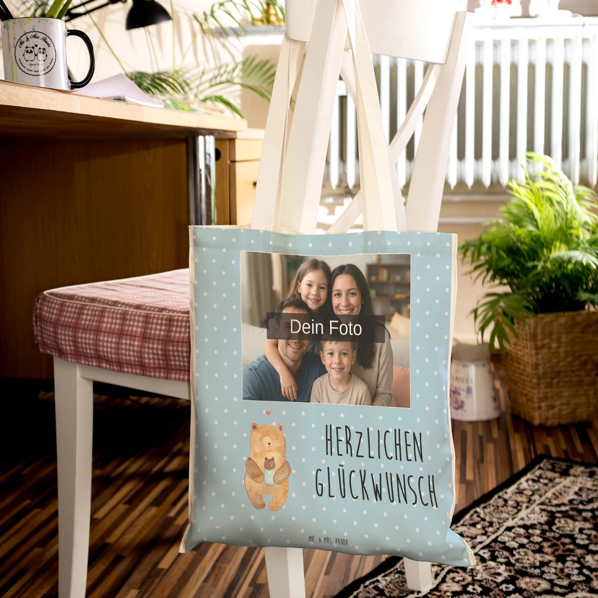 Erlebe den ultimativen Einkaufszauber mit der personalisierten Foto Einkaufstasche von Mr. & Mrs. Panda! Sie misst 420 mm x 400 mm und bietet Platz für alles, was du brauchst. Hergestellt aus hochwertiger Kunstfaser, besticht sie mit einem zeitlosen Design und ist mit süßen Motiven und Sprüchen bedruckt. Das Highlight? Dein ganz persönliches Foto, das du selbst auswählen kannst! Sei kreativ und zeige, was dir wichtig ist! Achte darauf, dass das Bild in hoher Auflösung hochgeladen wird, damit die Qualität stimmt. Diese Tasche ist nicht nur ein echter Blickfang, sie ist auch äußerst praktisch: Sie ist robust, schmutzabweisend und kann ganz einfach mit lauwarmem Wasser gereinigt werden. Die umsäumten Innennähte garantieren eine lange Lebensdauer, während die praktischen Henkel das Tragen zum Kinderspiel machen. Lass dich von ihr begeistern und mach deinen Einkauf zum Erlebnis!