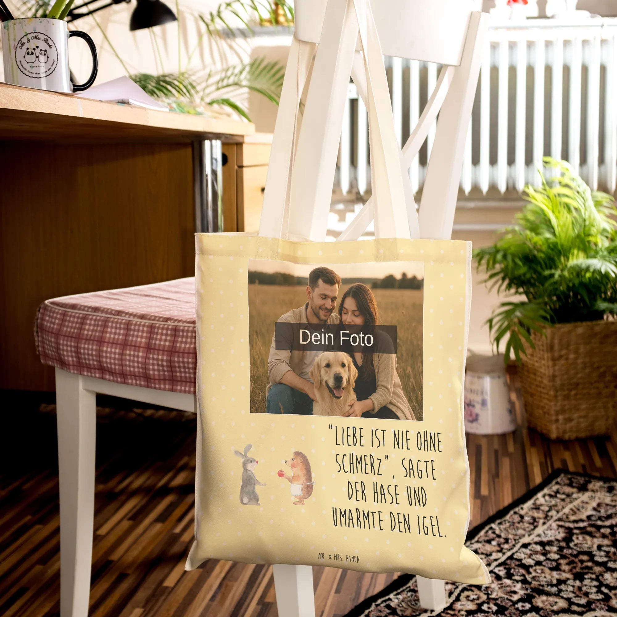 Mach deinen Einkauf zu einem besonderen Erlebnis mit der personalisierten Foto Einkaufstasche von Mr. & Mrs. Panda! Diese stilvolle Tasche misst 420 mm x 400 mm und ist aus langlebiger Kunstfaser gefertigt. Sie bringt süße Motive und Sprüche in dein Leben und bietet die Möglichkeit, dein Lieblingsfoto hochzuladen. So wird dein Einkauf einzigartig! Achte darauf, dass dein Bild in einer hohen Auflösung vorliegt, damit alles klar und deutlich dargestellt wird. Diese Tasche ist nicht nur besonders praktisch, sie ist auch robust, schmutzabweisend und einfach zu reinigen. Wir empfehlen eine sanfte Handwäsche, um die Langlebigkeit der Tasche zu garantieren. Perfekt für deine täglichen Einkäufe oder als Geschenk für deine Liebsten – hol dir deine individuelle Tasche von Mr. & Mrs. Panda!